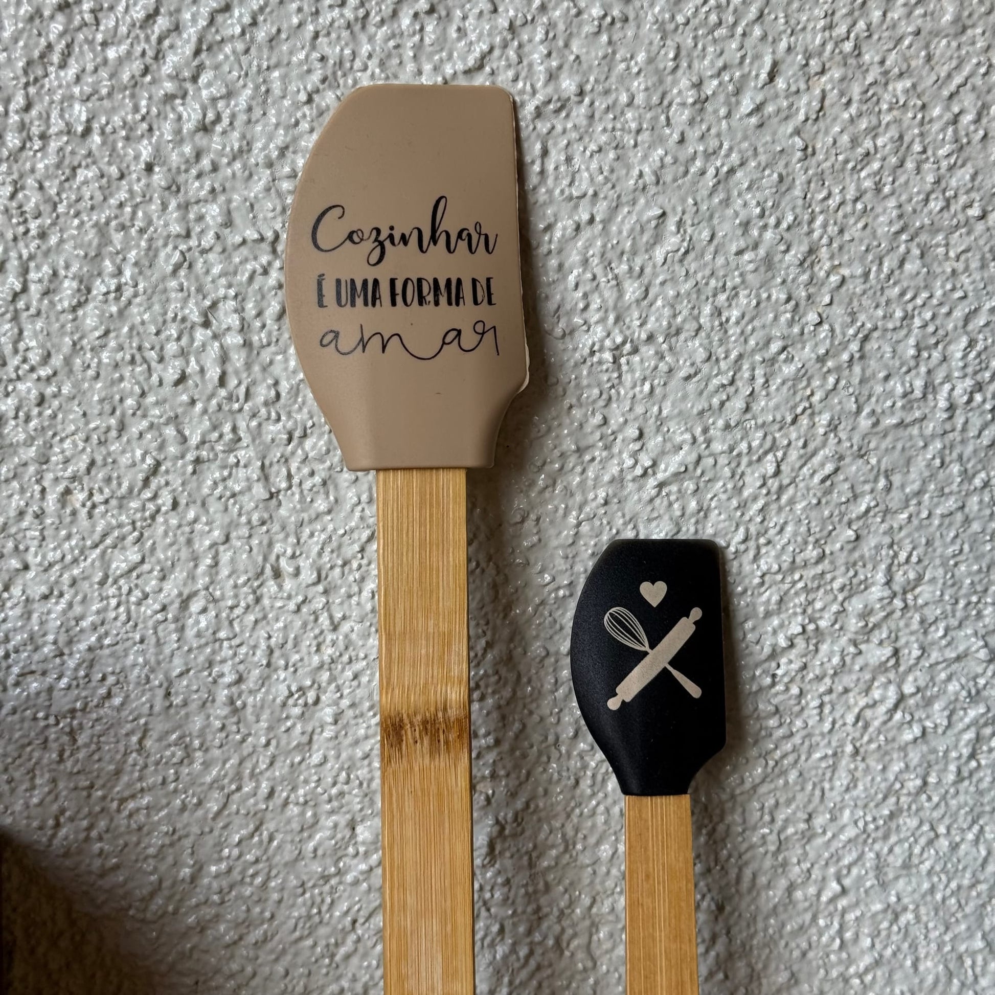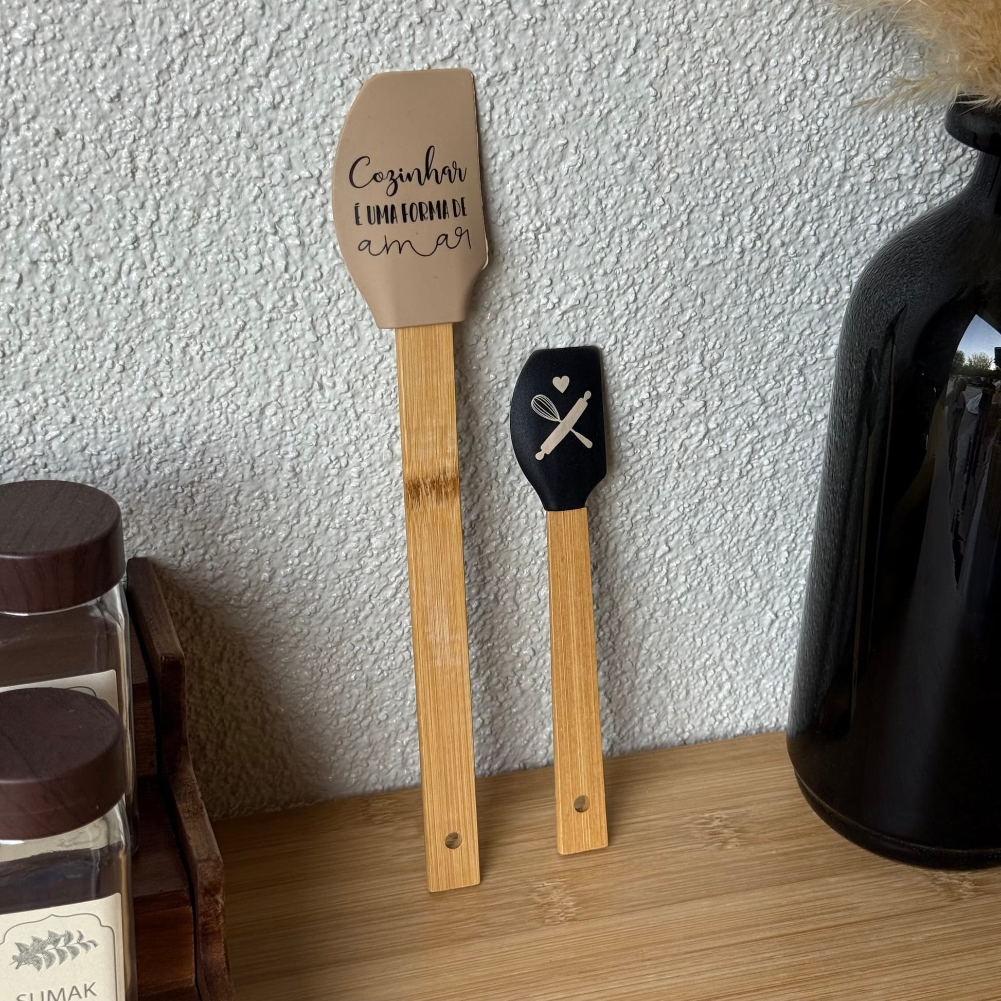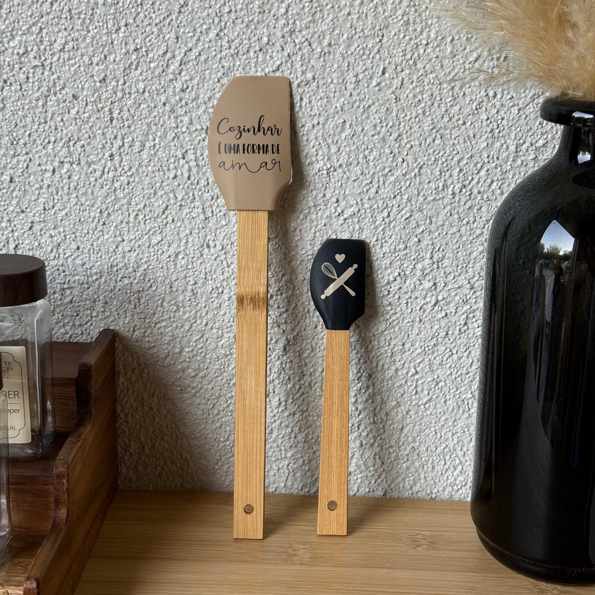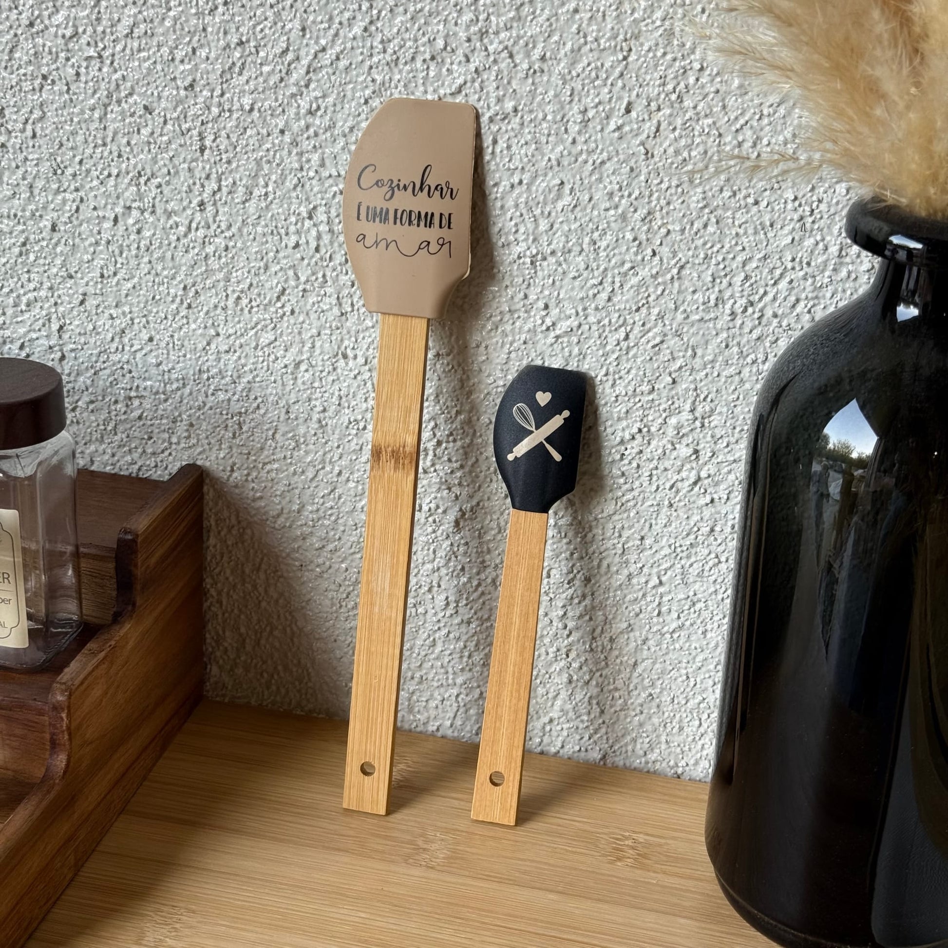 Medusa İki Boy Bambu Saplı Silikon Spatula Seti 27 cm ,18 cm Krem-Siyah