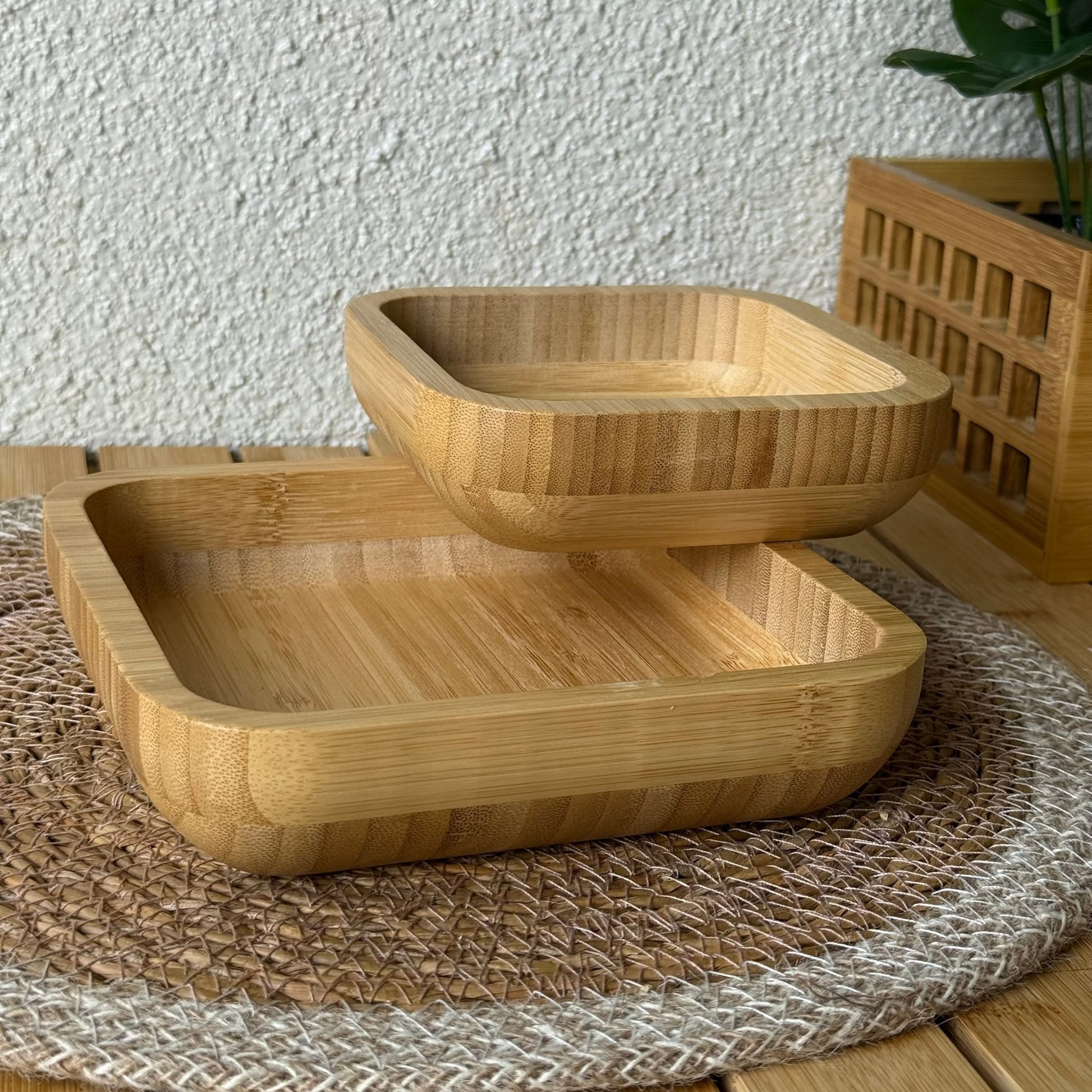 Mery Kare İki Boy Bambu Kase 18x18 cm-14x14 cm