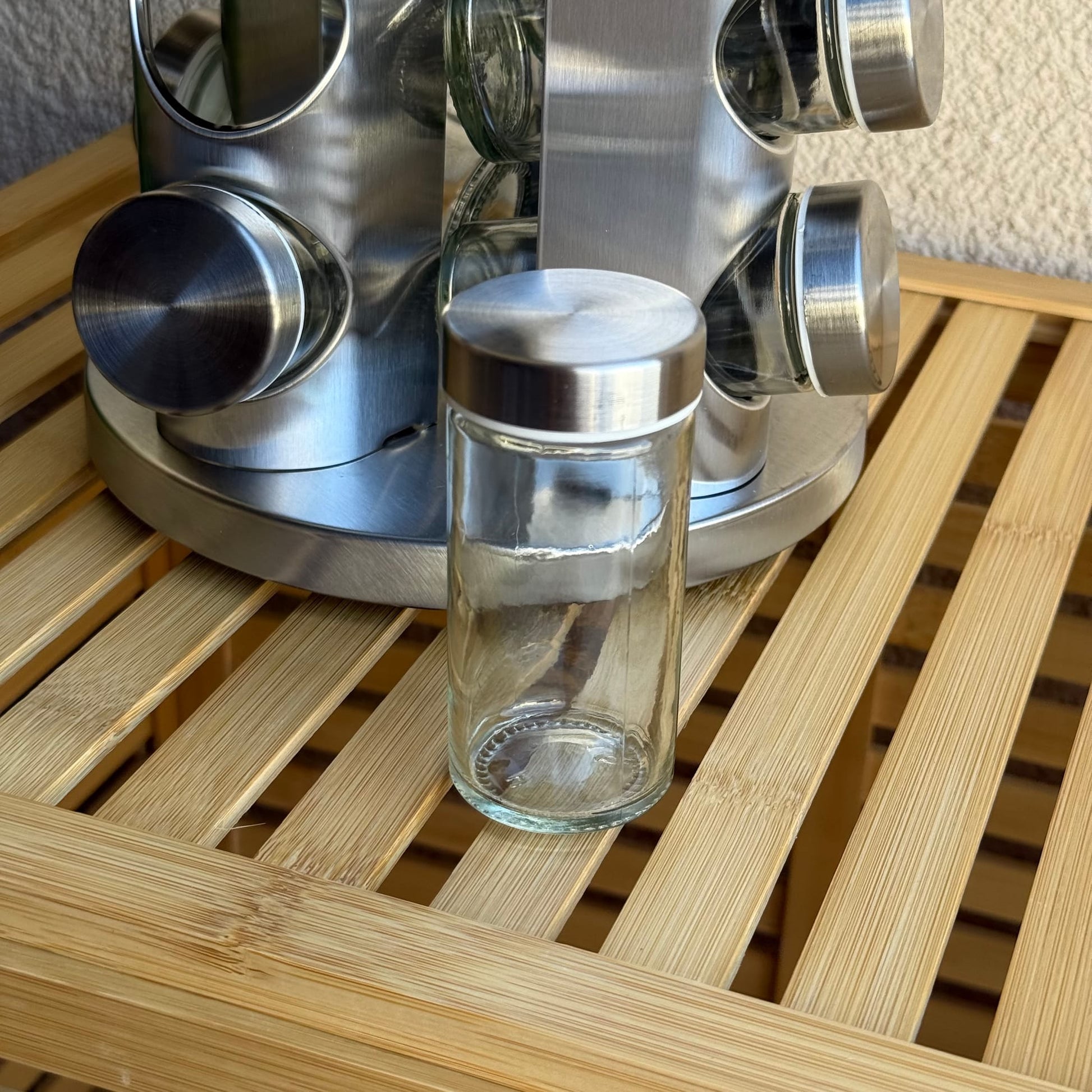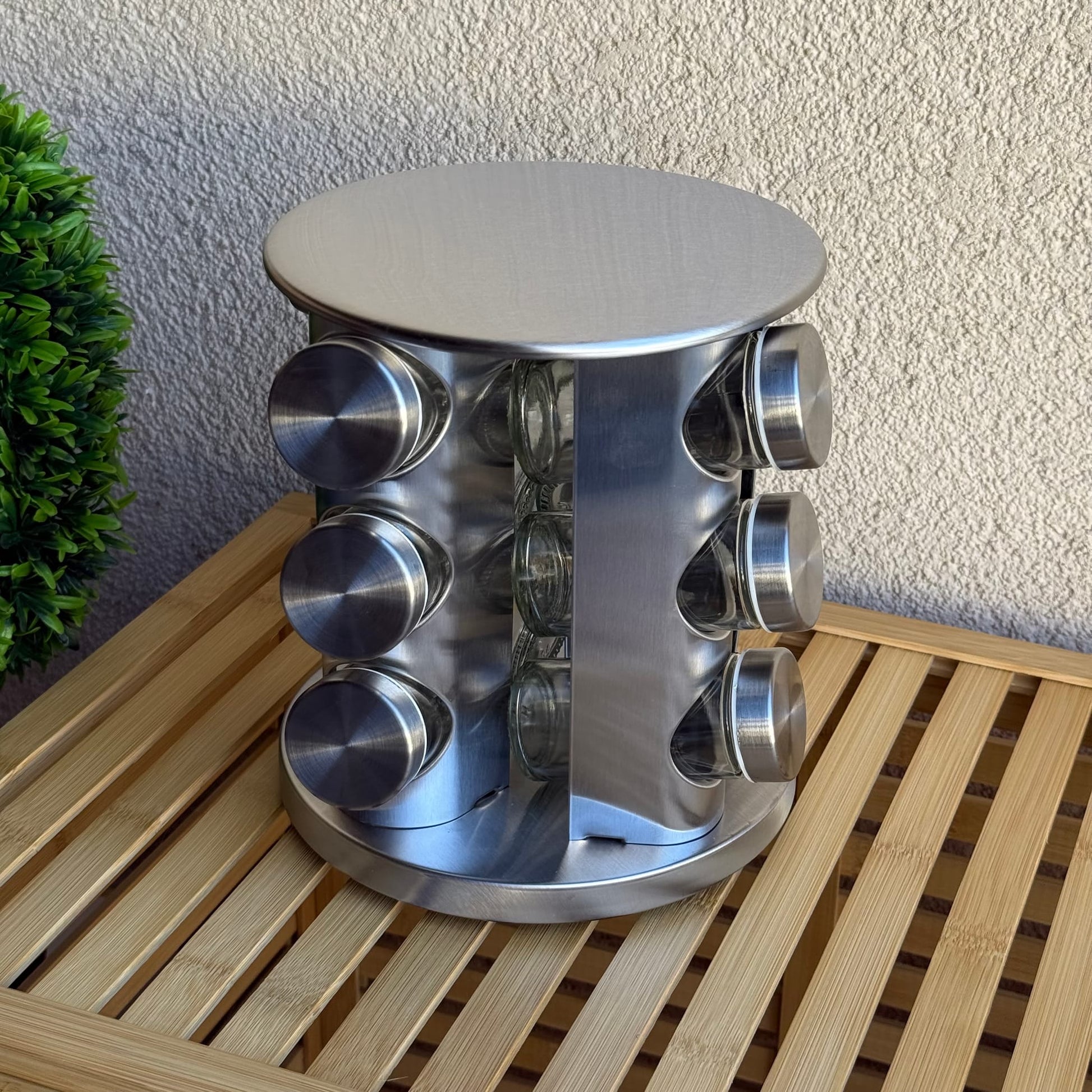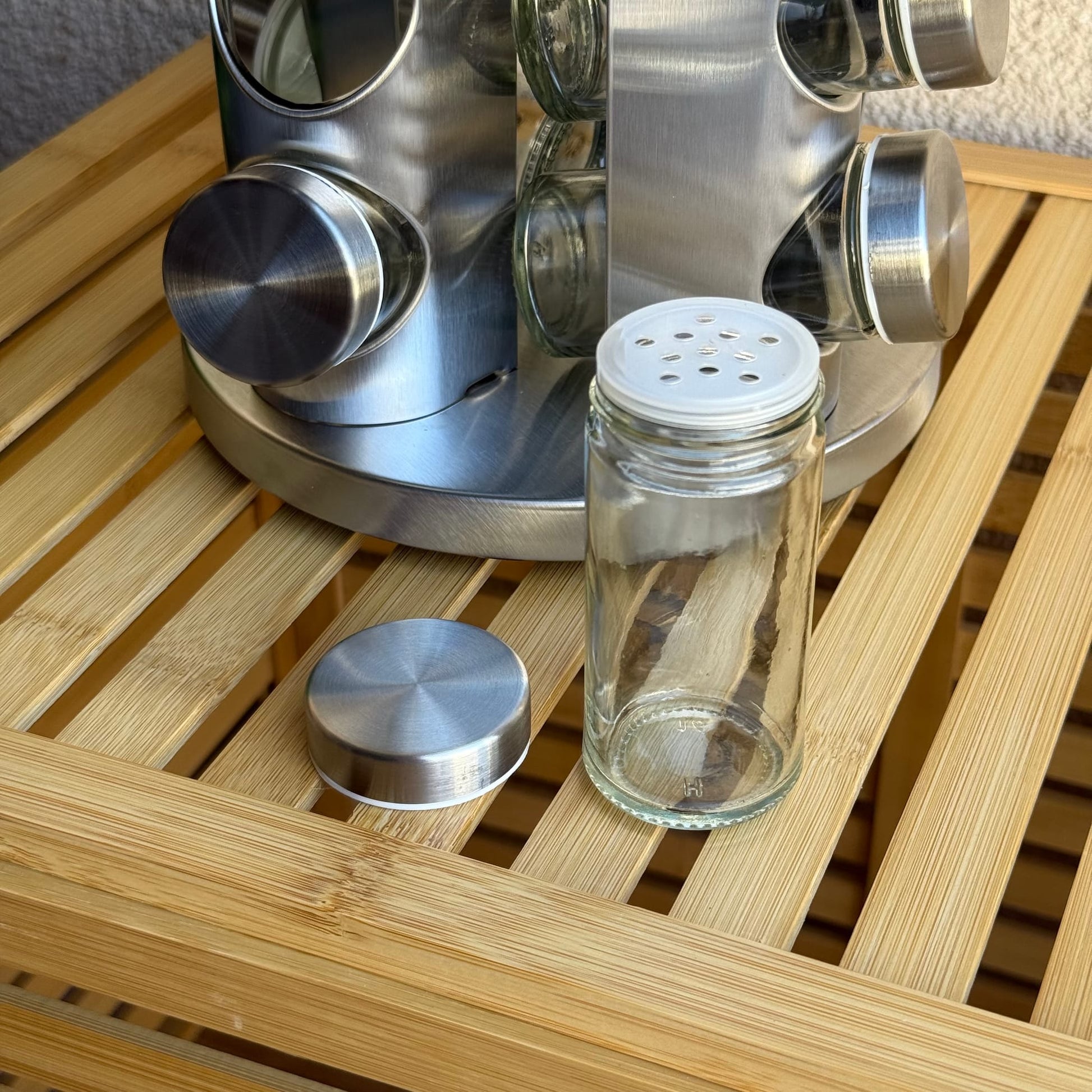 Metal Dönen Standlı Cam Baharatlık Seti Gümüş (KOD:4730)