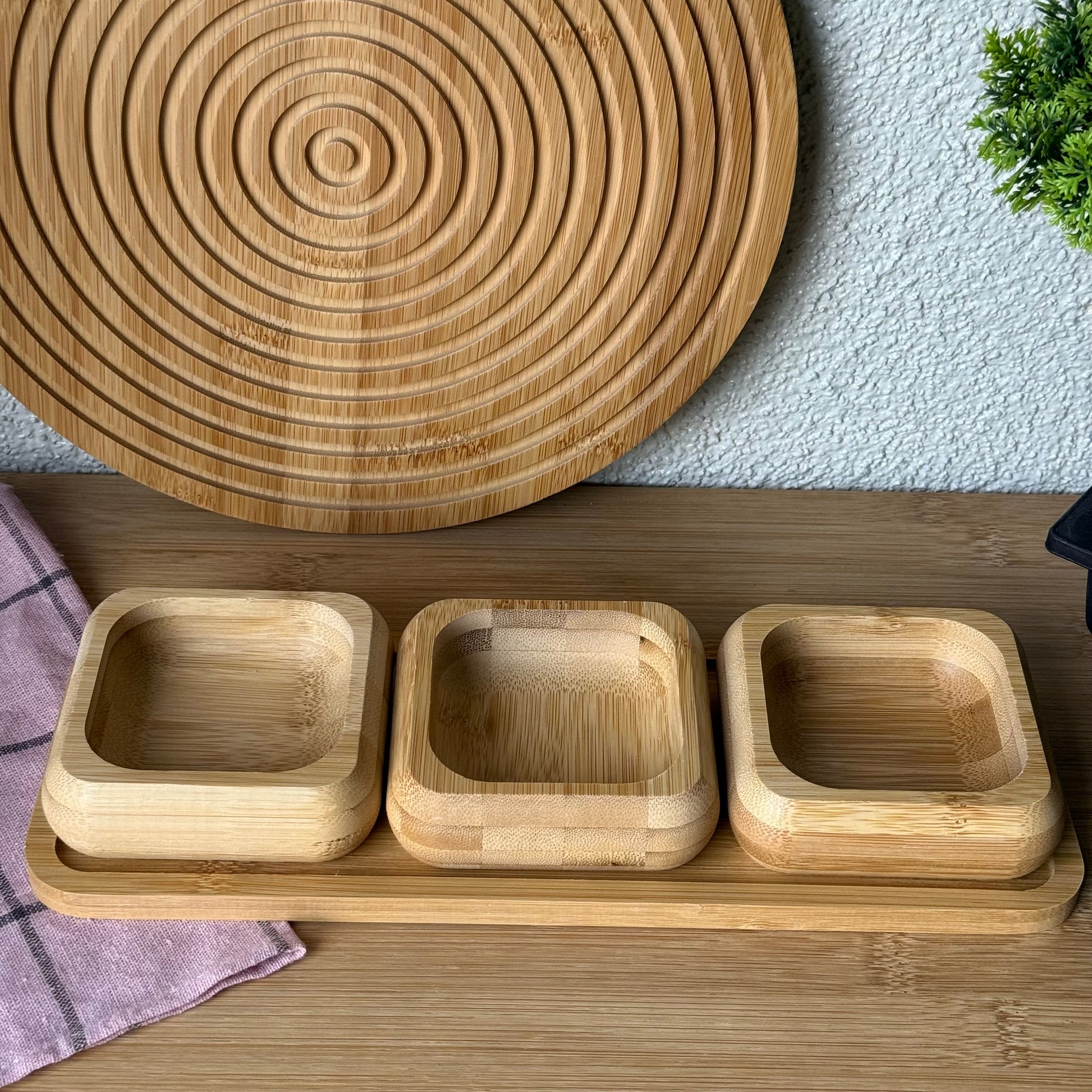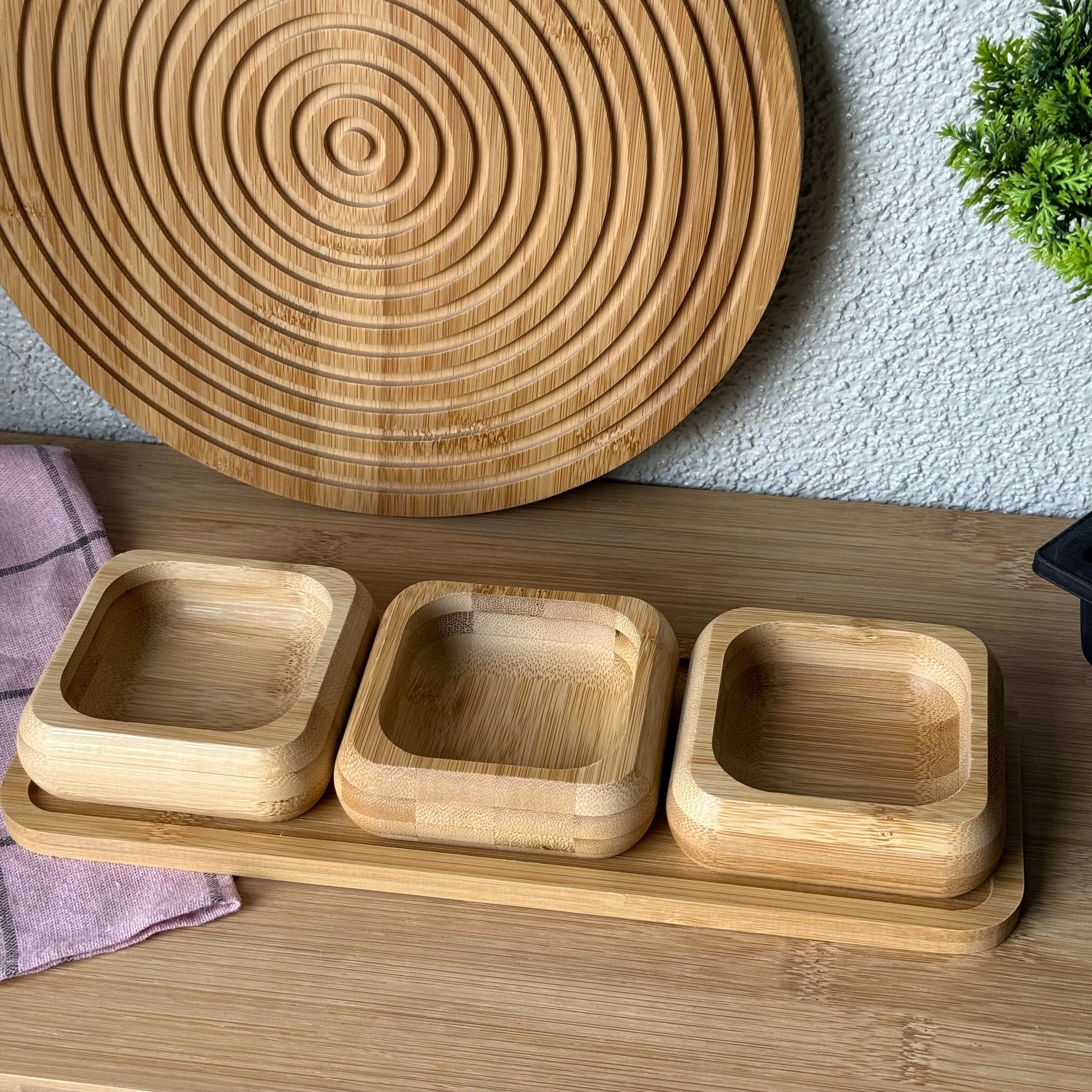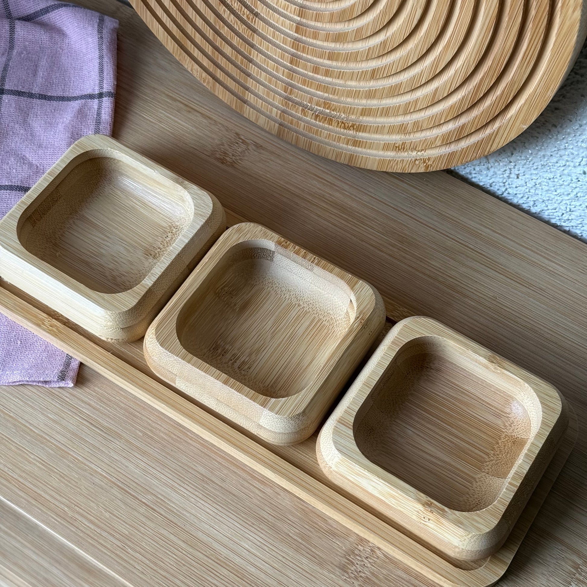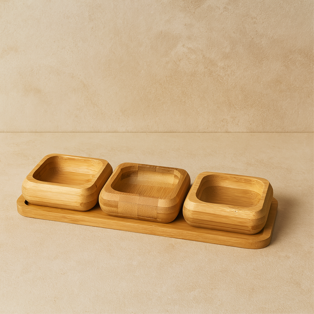 Miev Bambu Standlı 3Lü Kare Çerezlik Sosluk Seti KOD.398