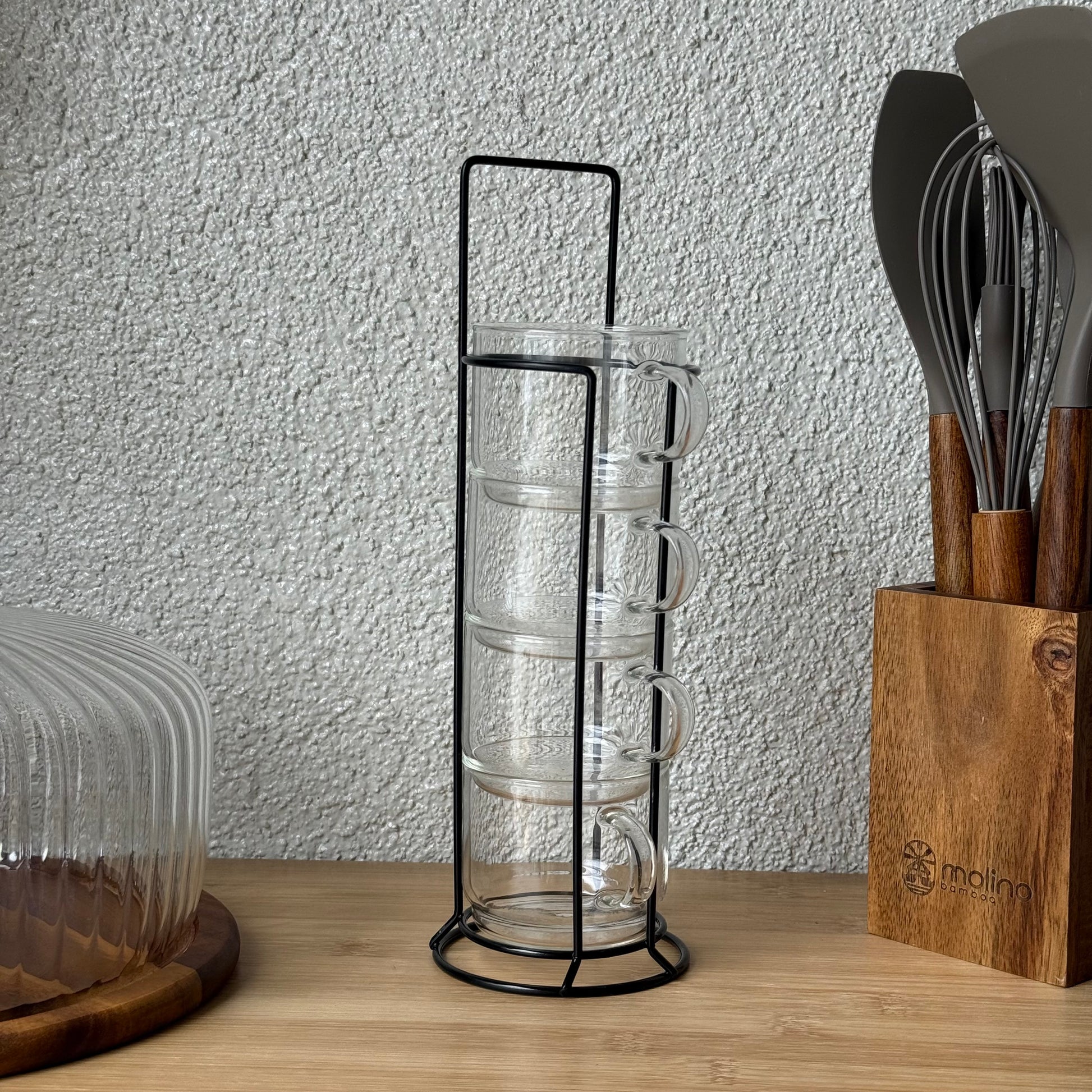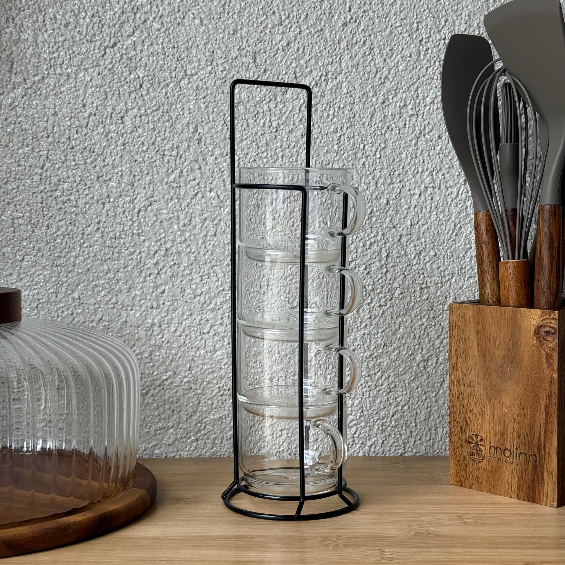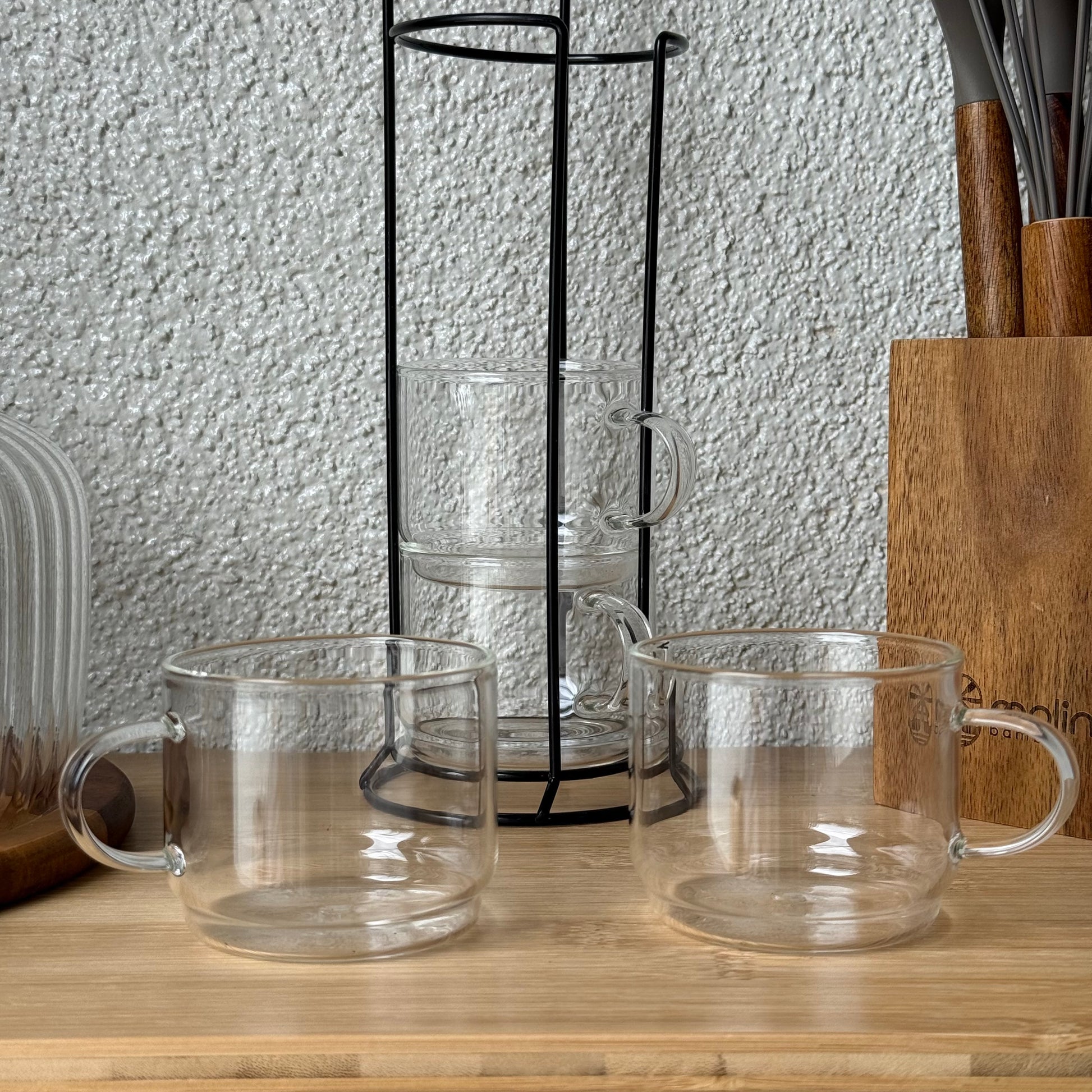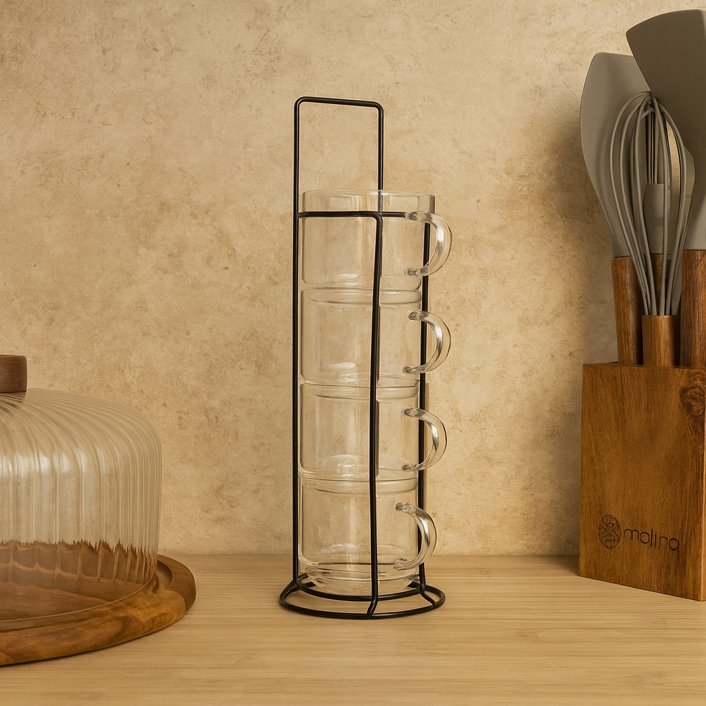 Milay Metal Standlı Nescafe Cam Kupa Seti