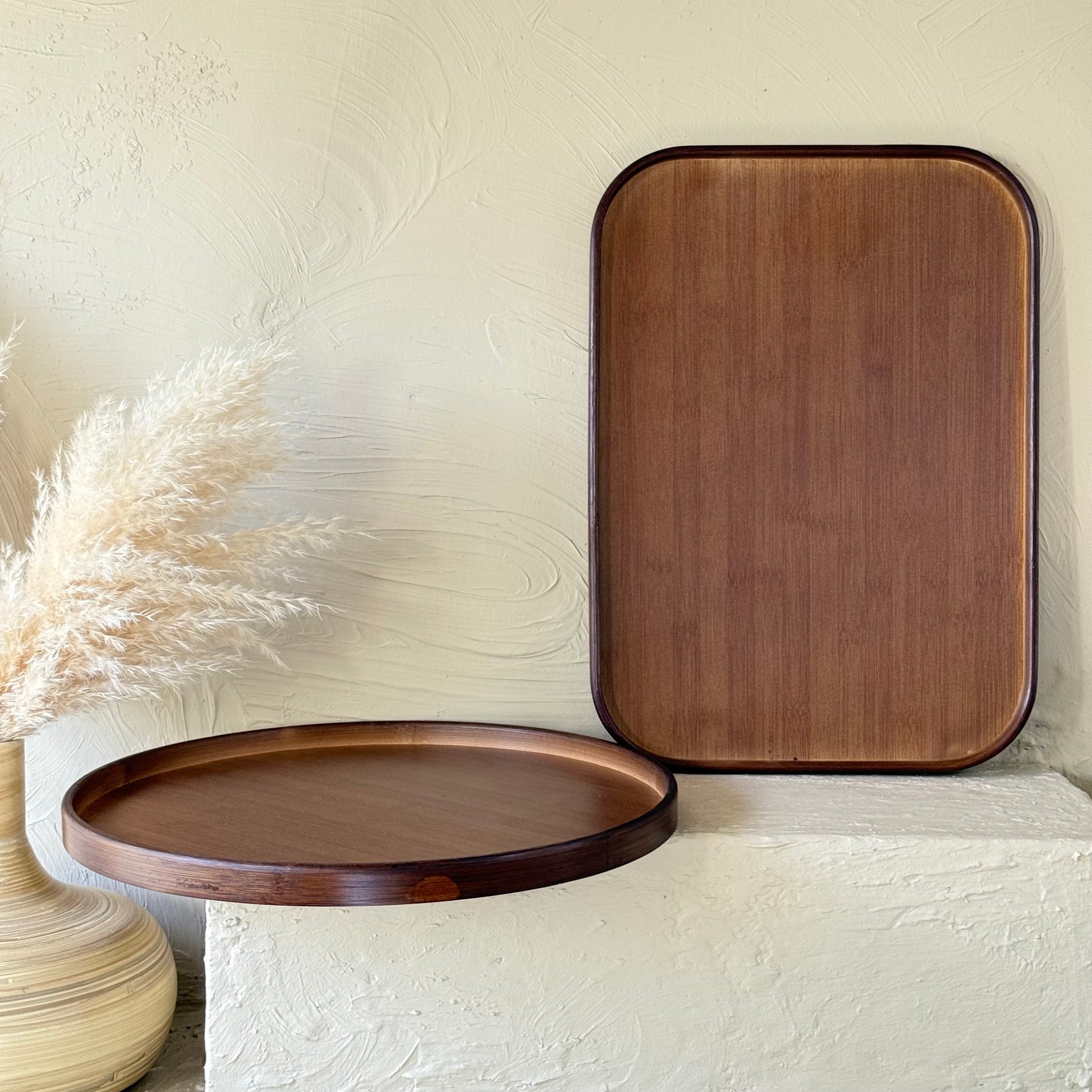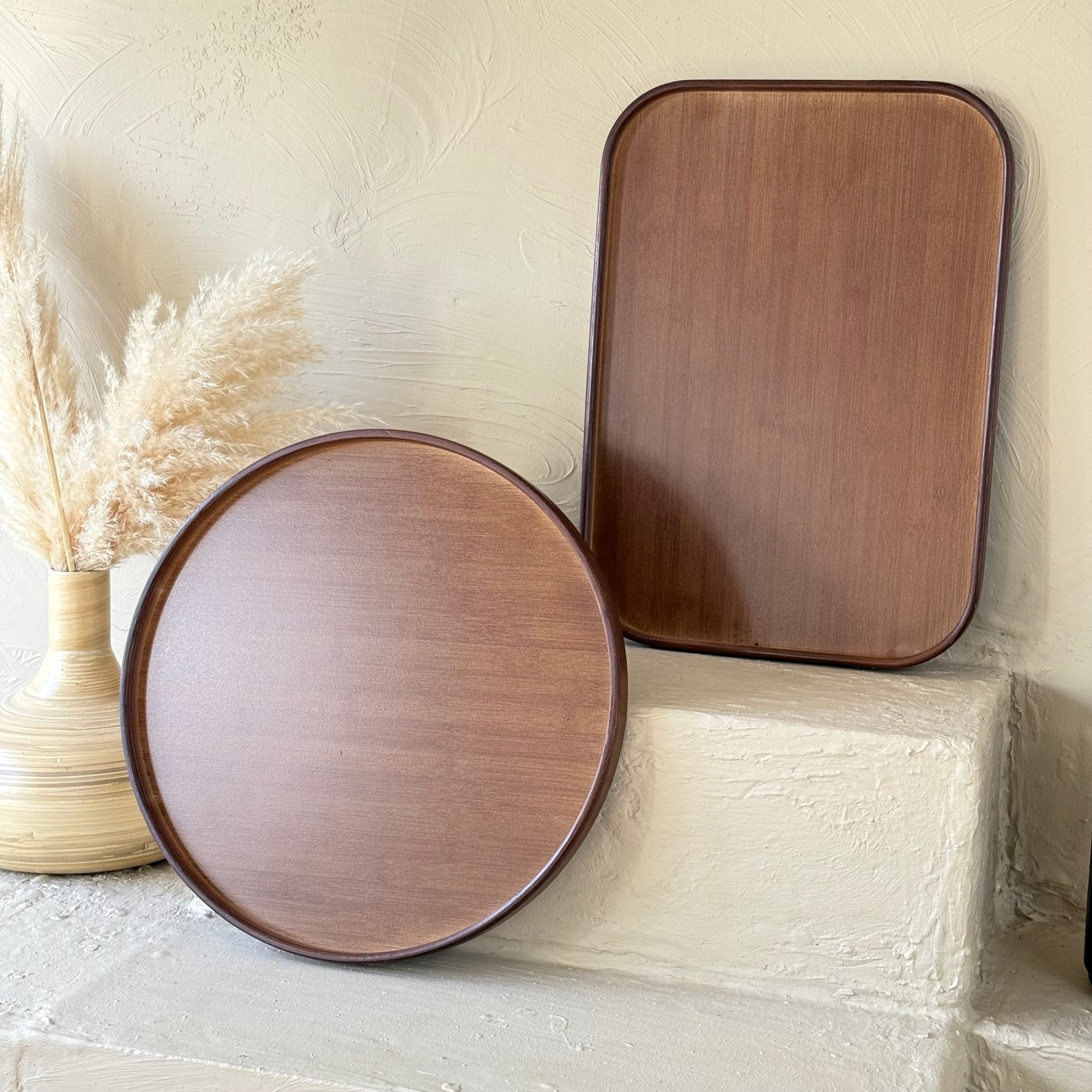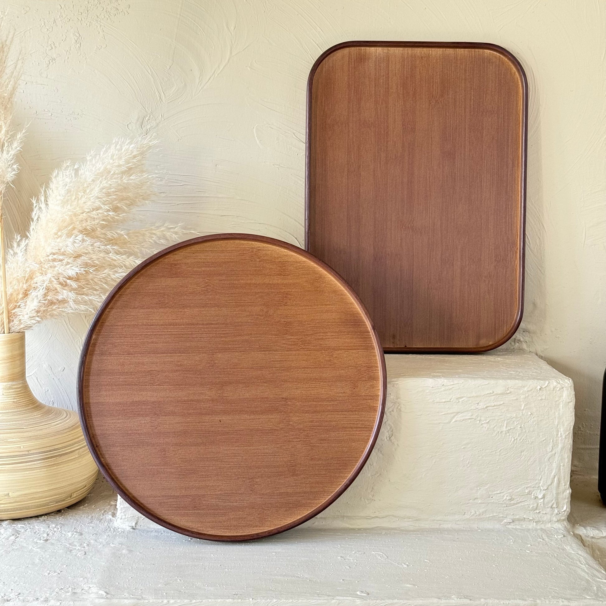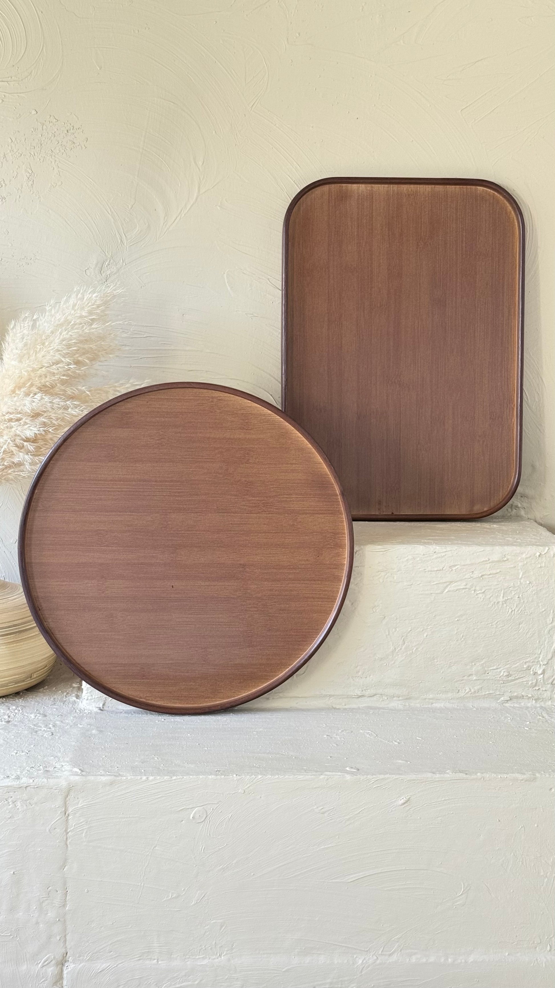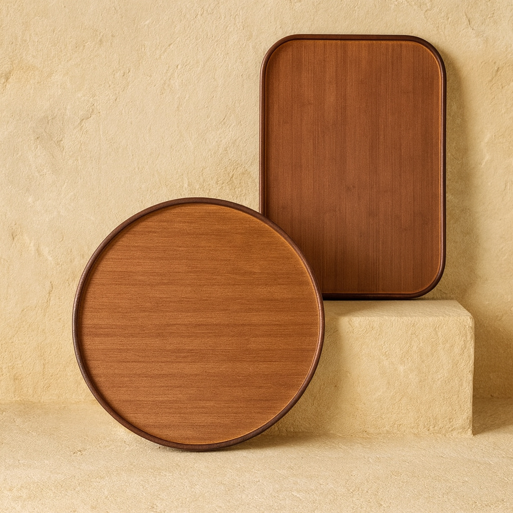 Milay Yuvarlak ve Dikdörtgen Akasya Ağacı Tepsi Seti