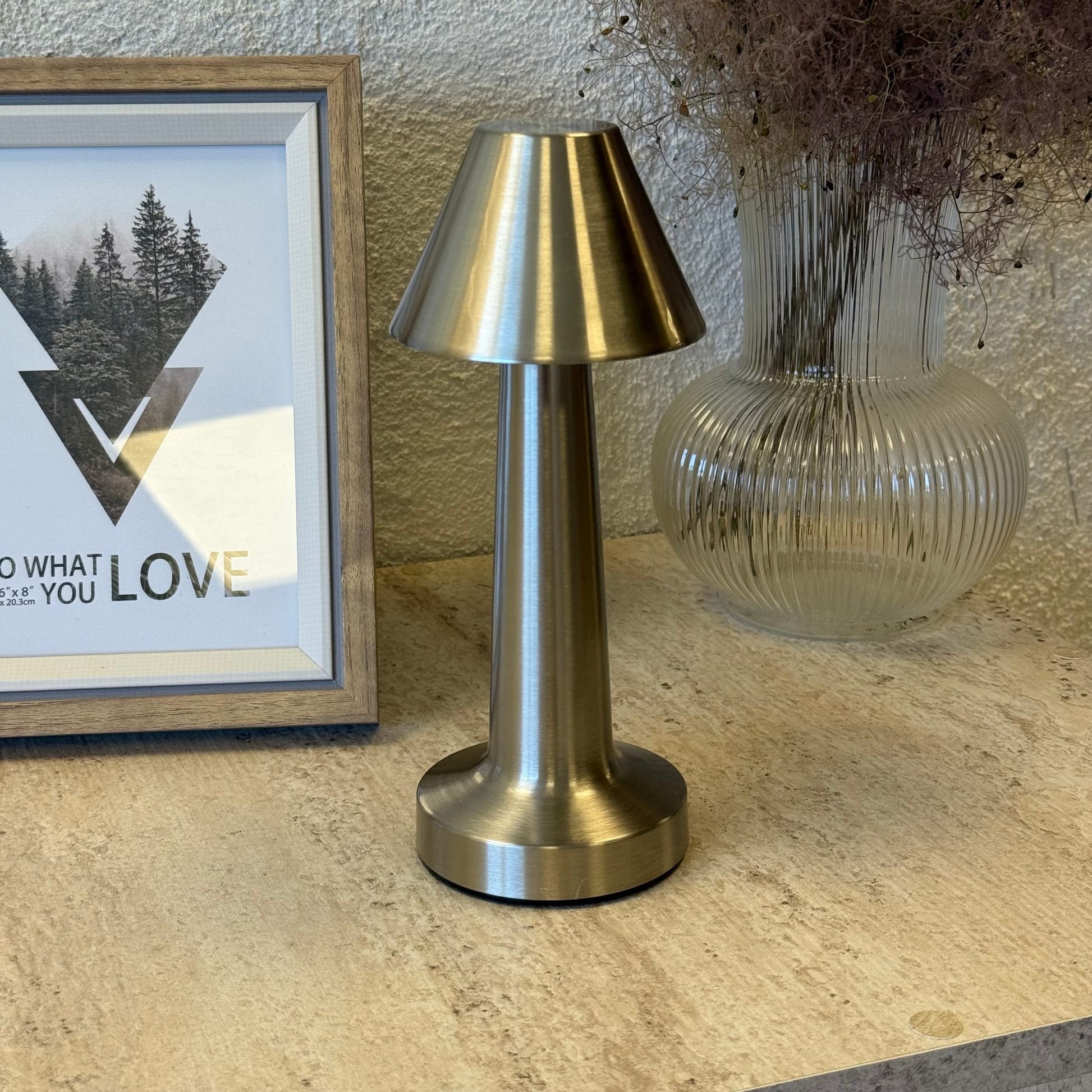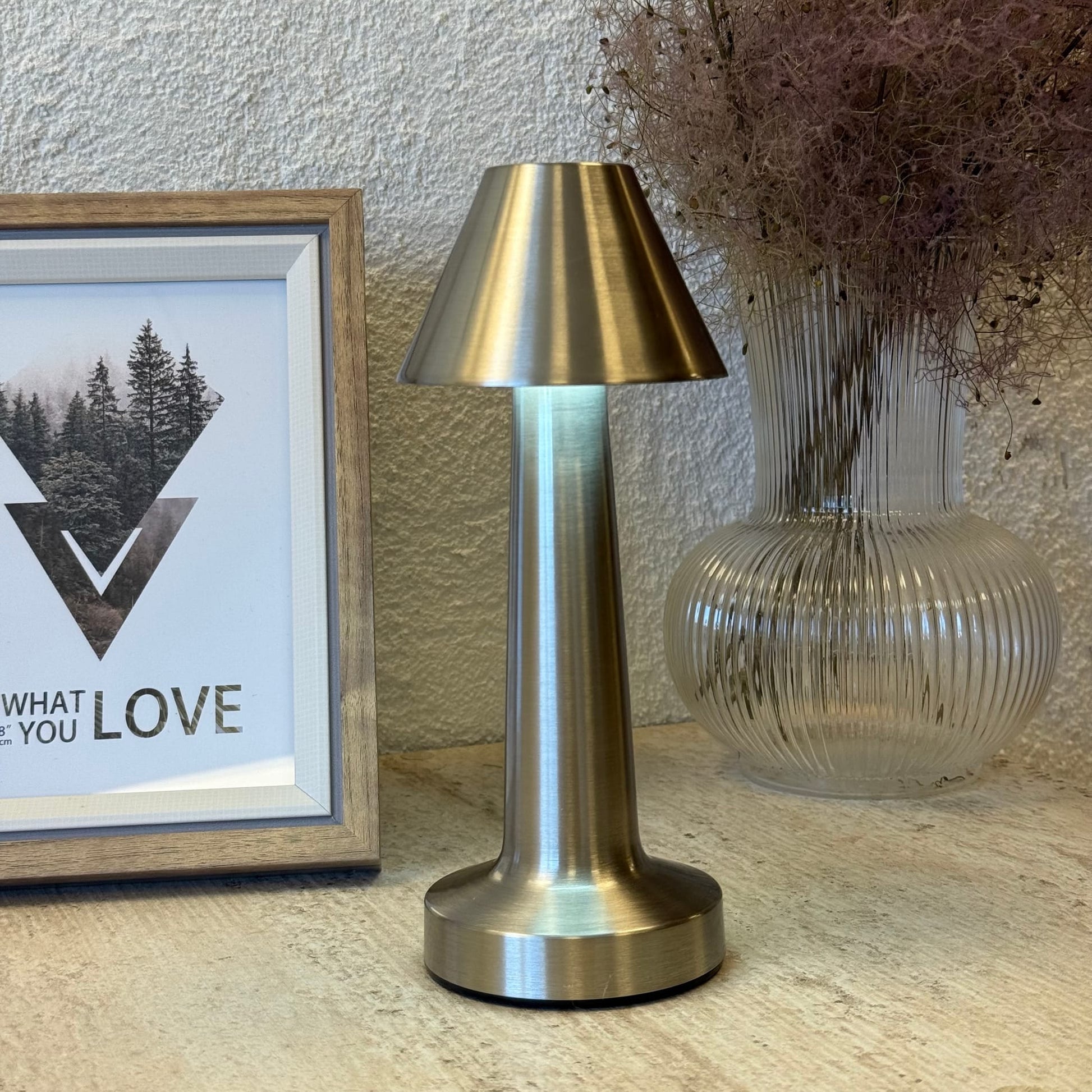 Mira Konik Masaüstü, 3 Fonksiyonlu Led Lamba Şarjlı 23 cm Gümüş