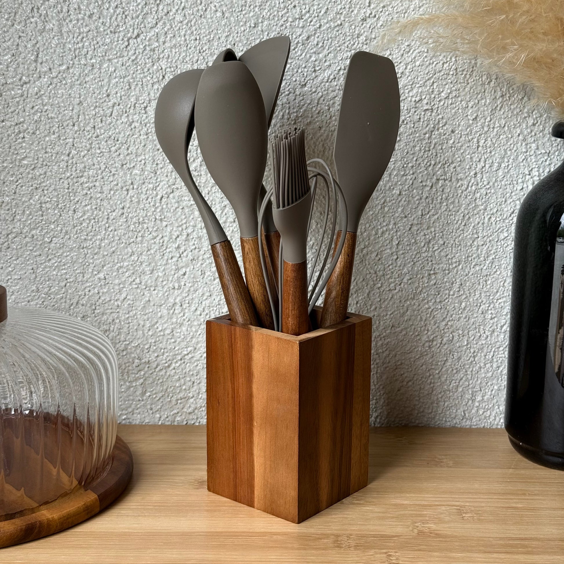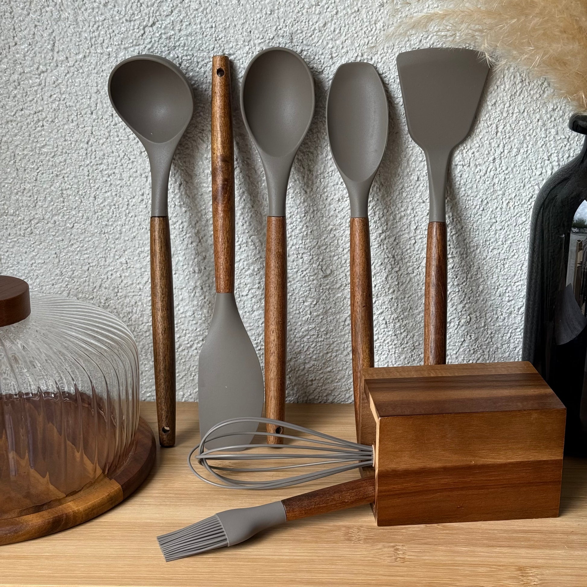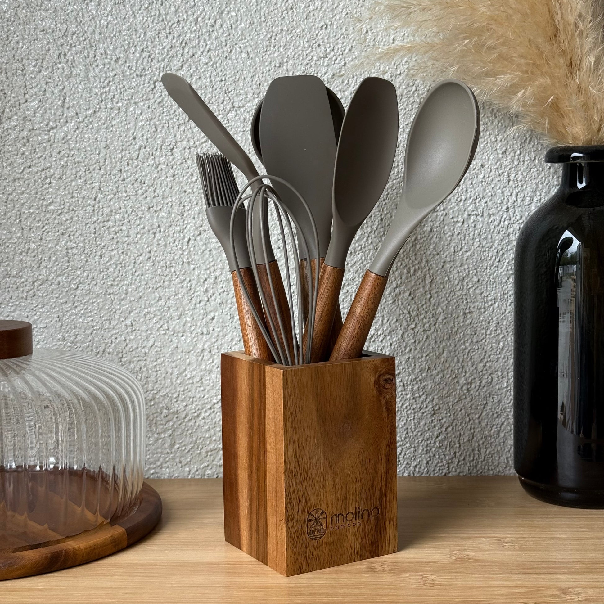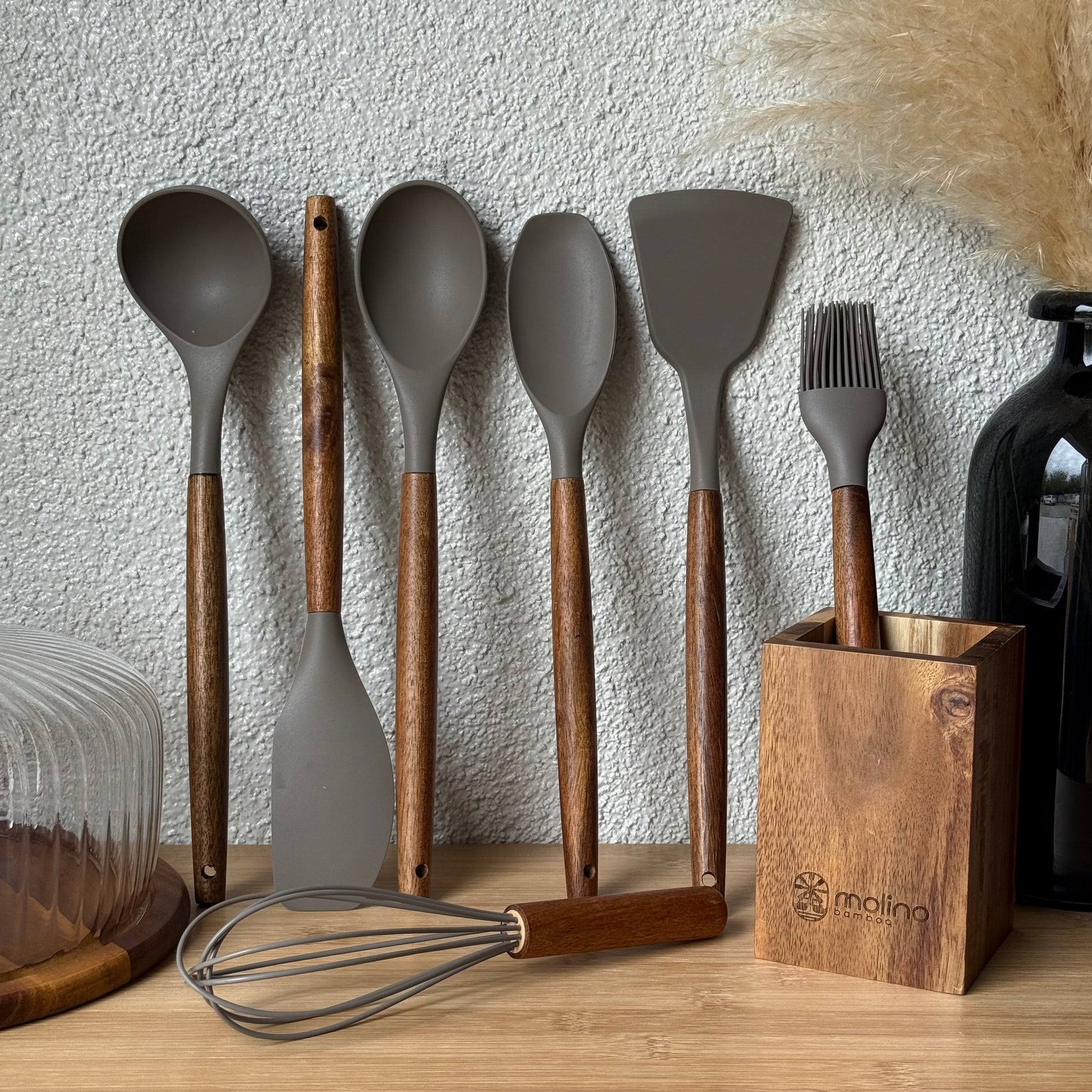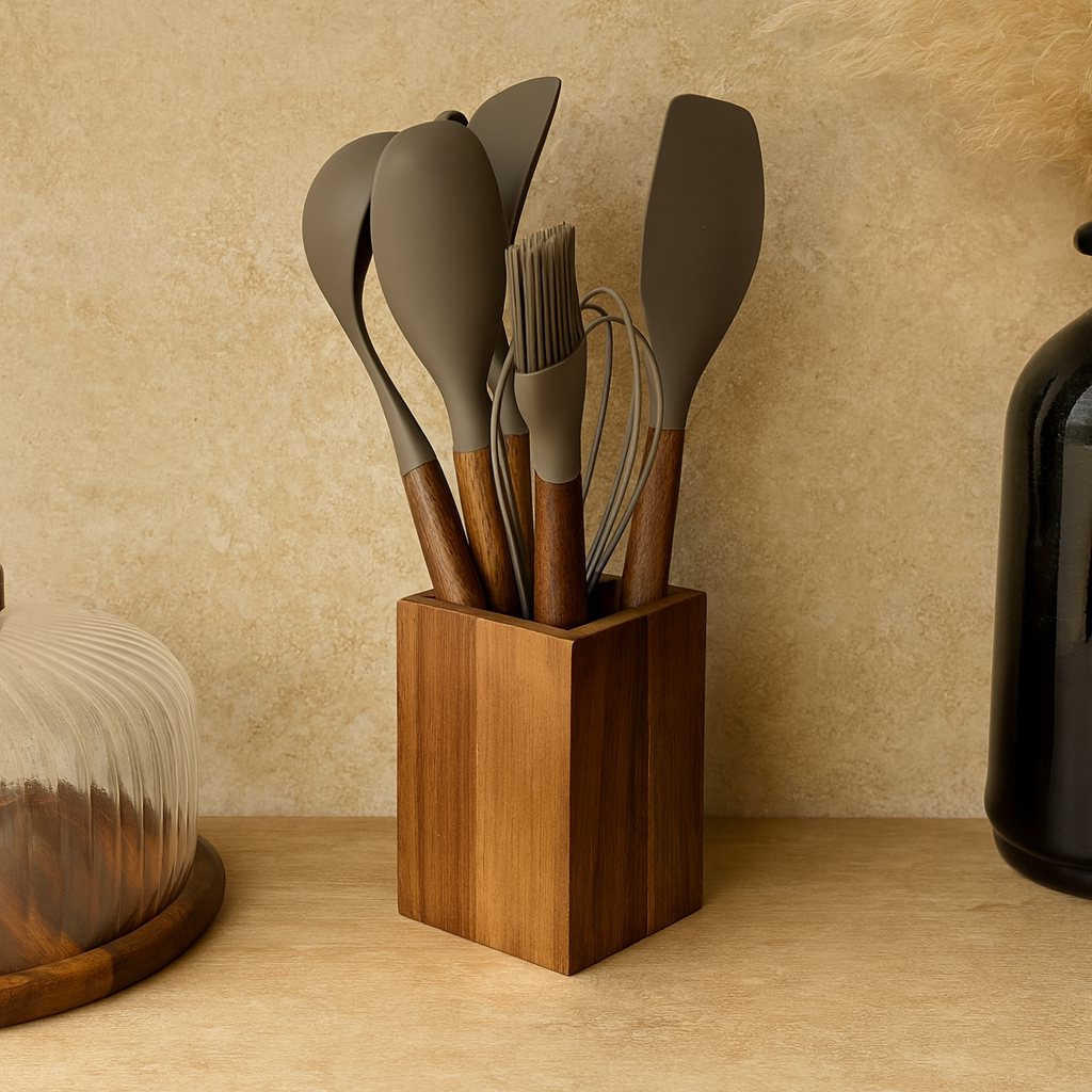 Molino Akasya Ağacı Standlı Silikon Mutfak Seti 8 Parça Bej