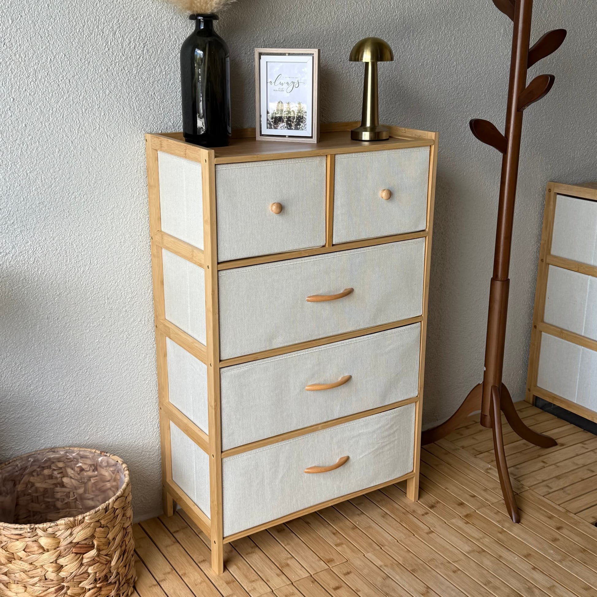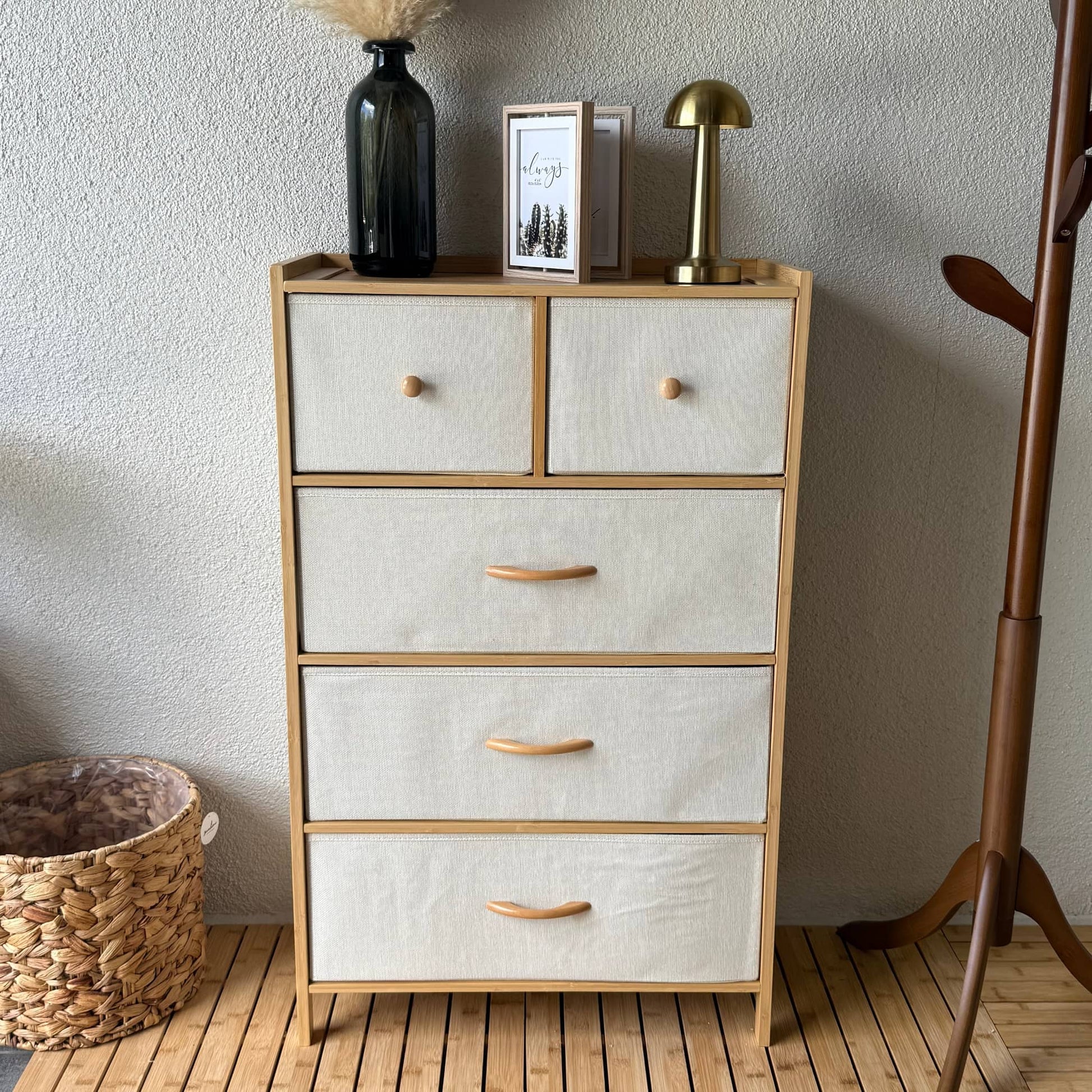 Morena 5 Lİ Bez Çekmeceli Bambu Raf KOD:9198