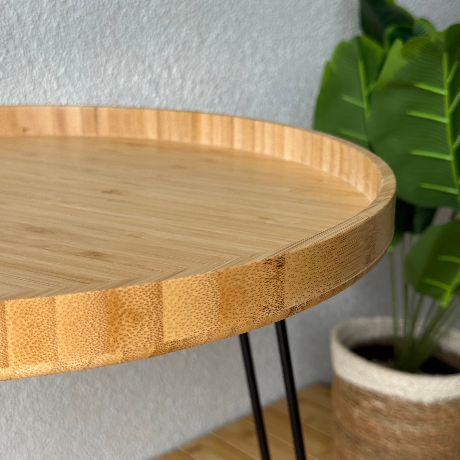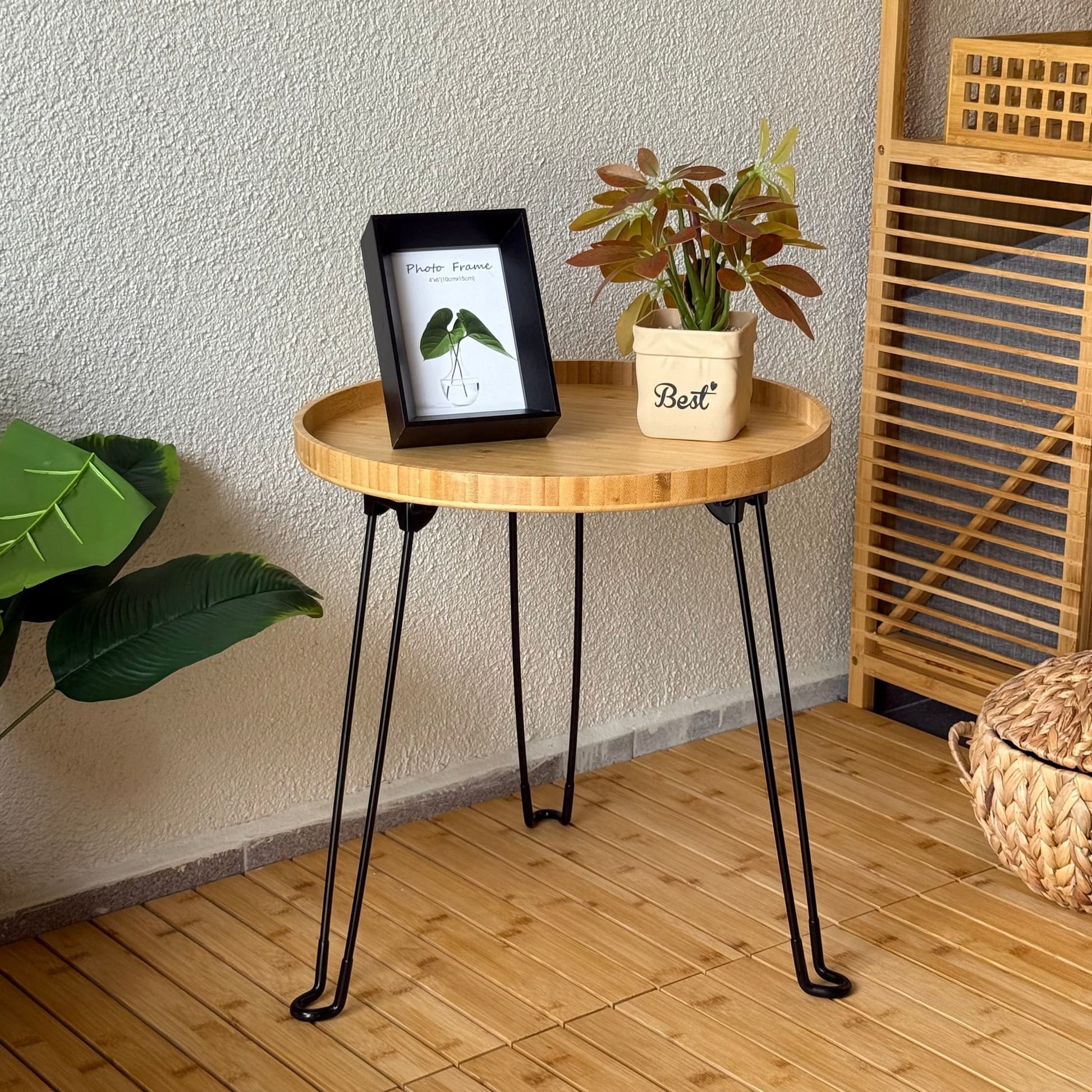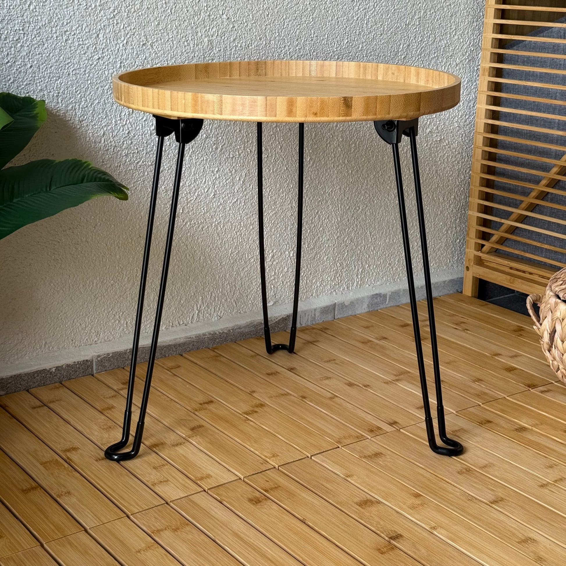 Morena Yuvarlak Metal Ayaklı Katlanır Bambu Sehpa 45x45x46 CM