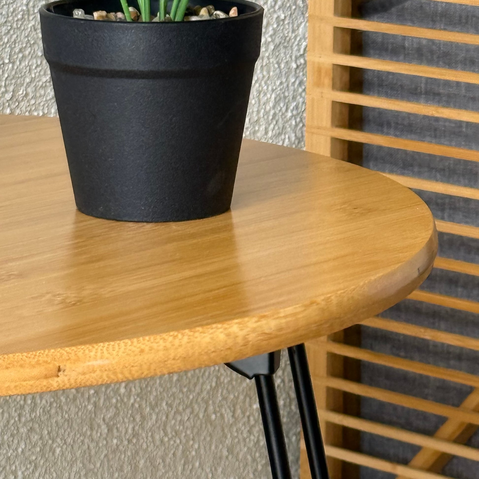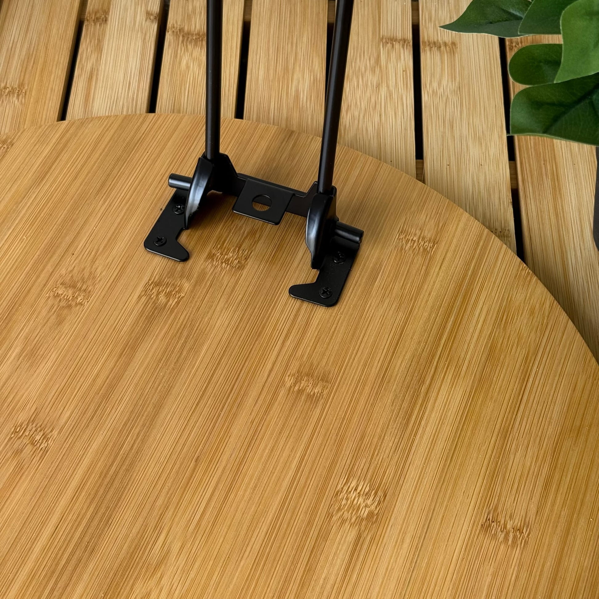 Morena Yuvarlak Metal Ayaklı Katlanır Bambu Sehpa 45x45x46 CM