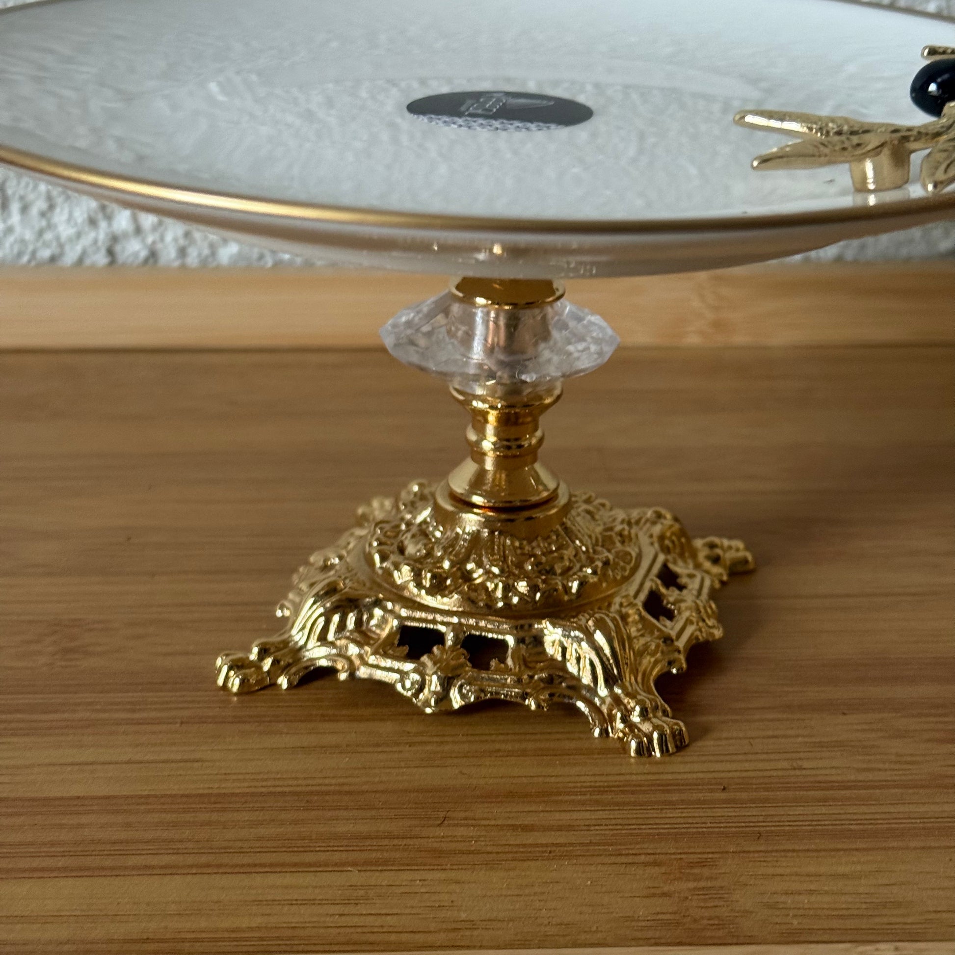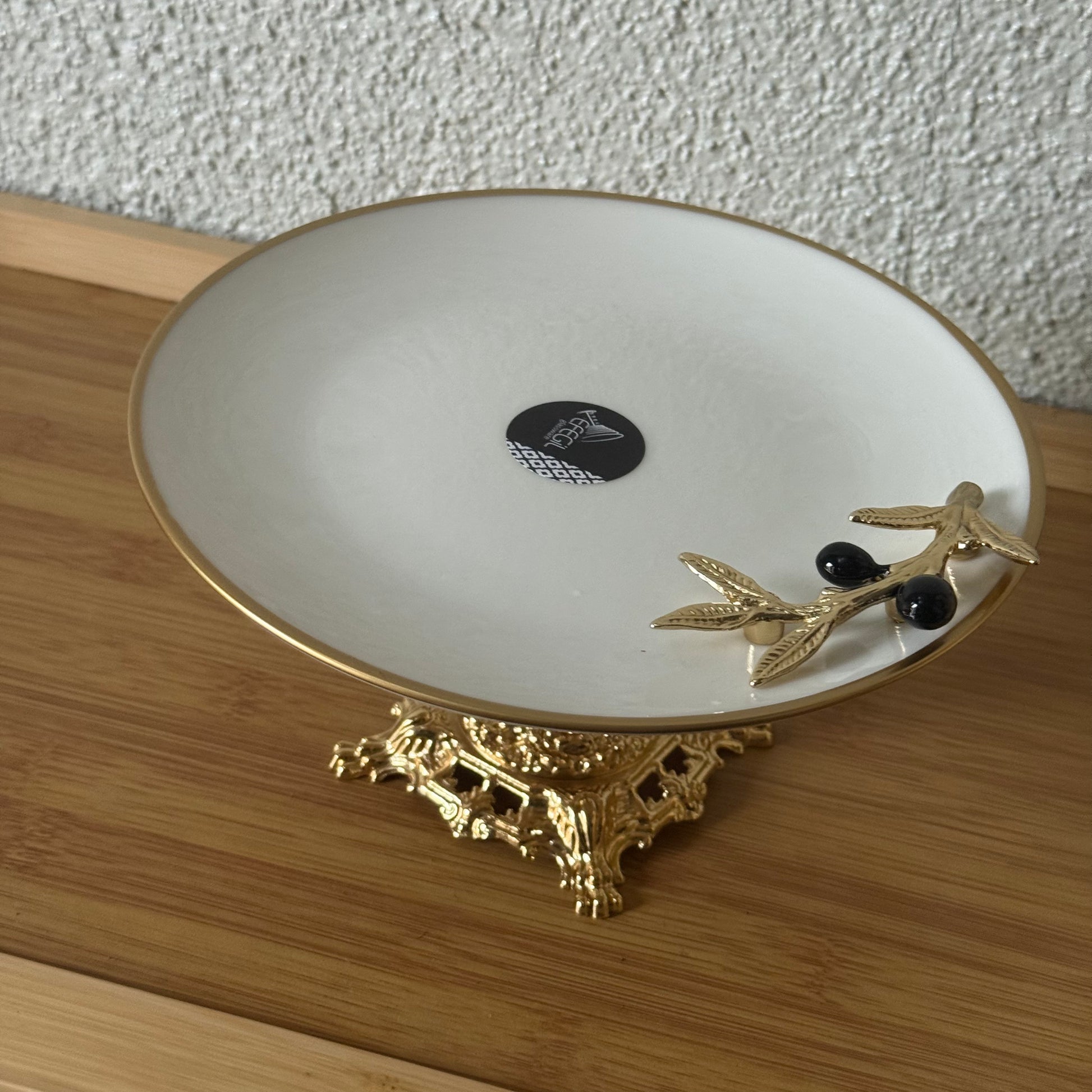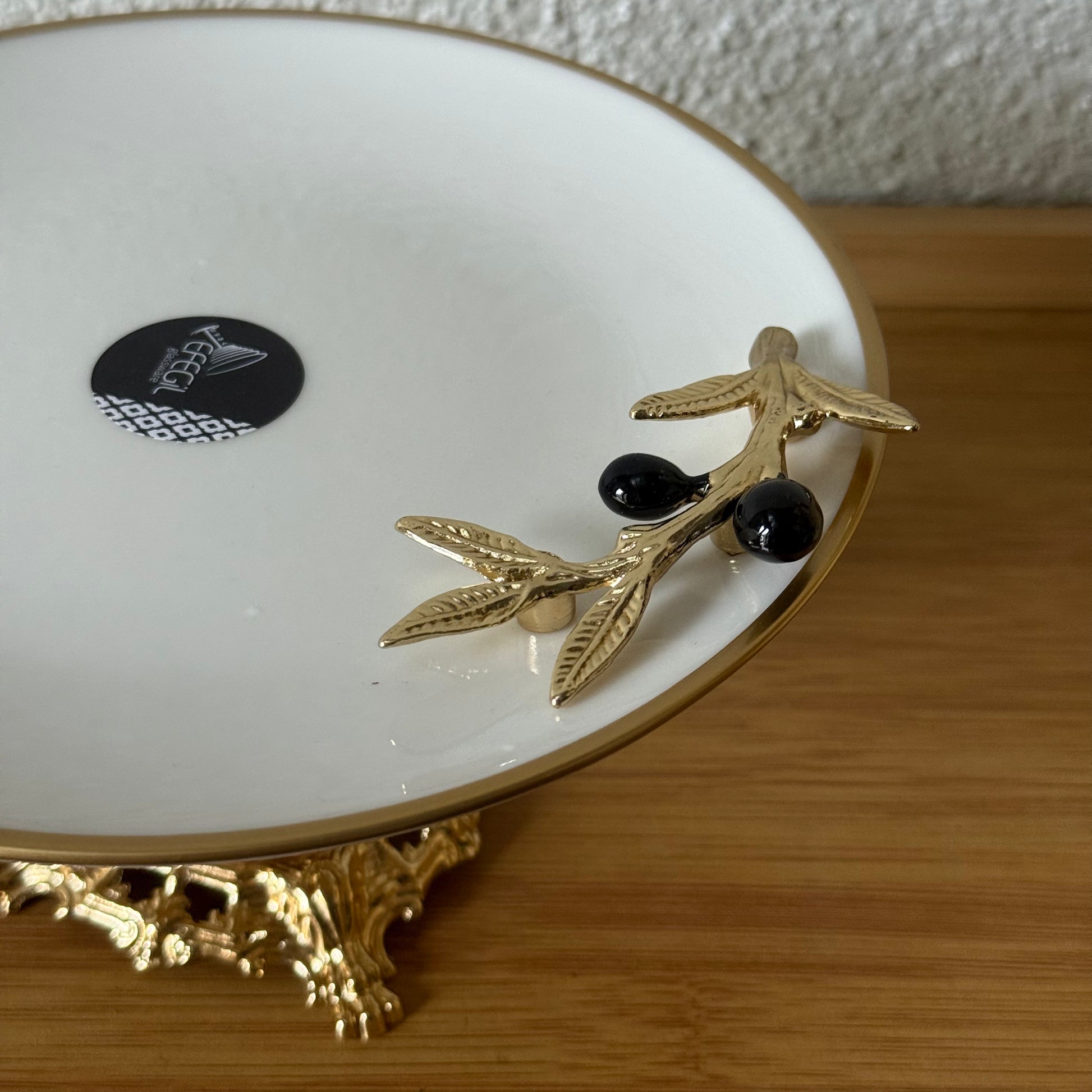Oliva Siyah-Gold Yaldızlı Porselen Ayaklı Sunumluk Kod:3099