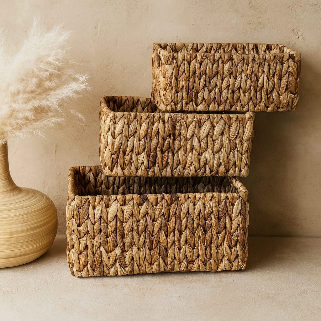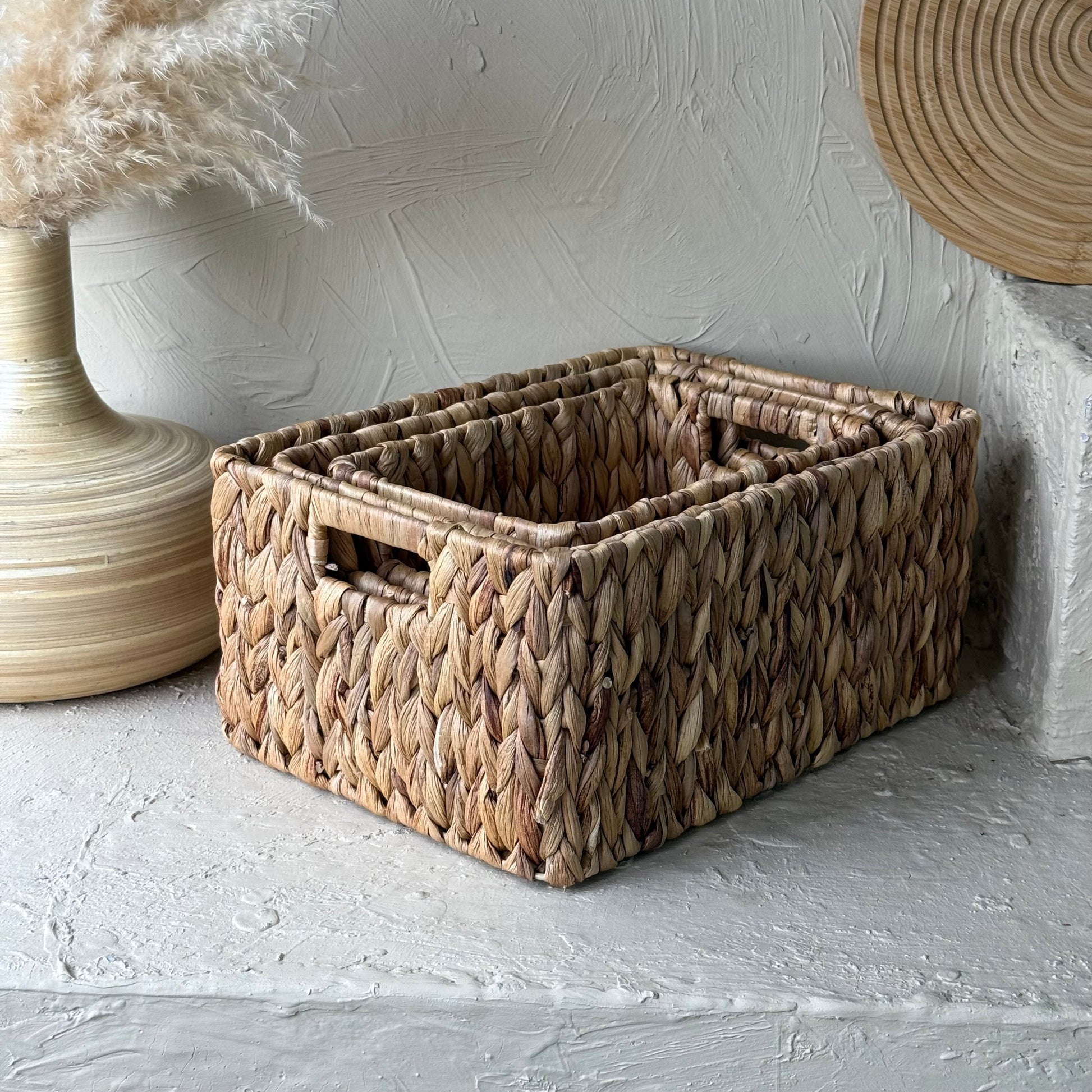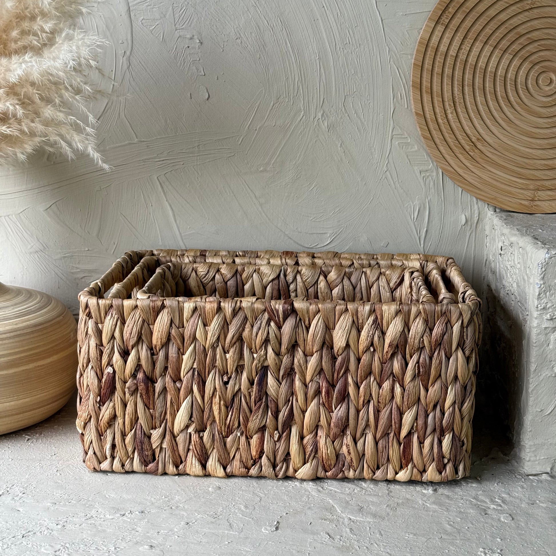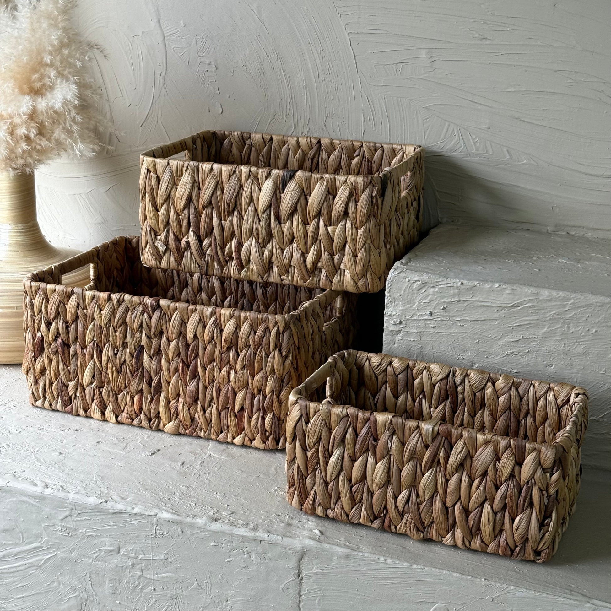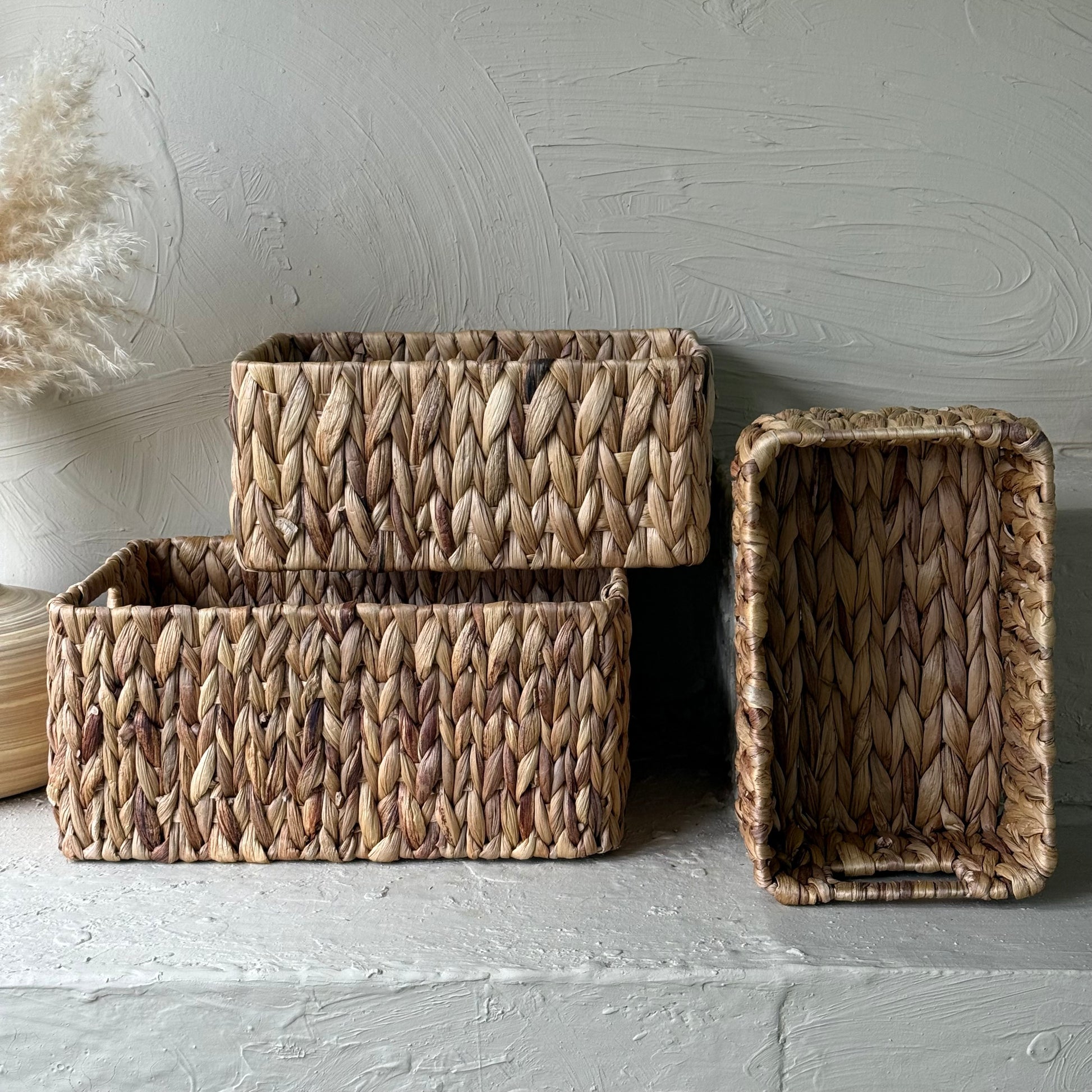 Panalı Kalın Örgü Hasır 3 Boy Organizer Sepet Seti Dikdörtgen KOD:23128