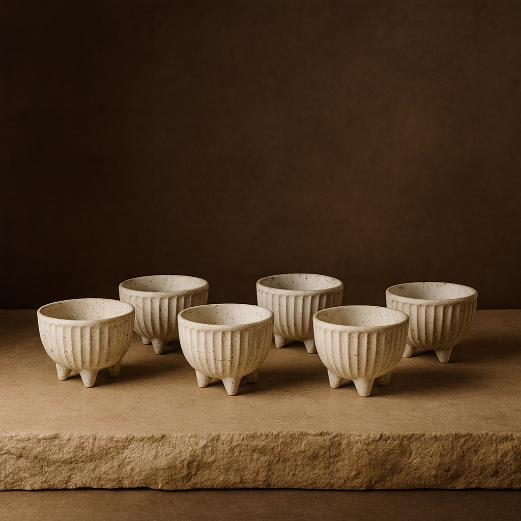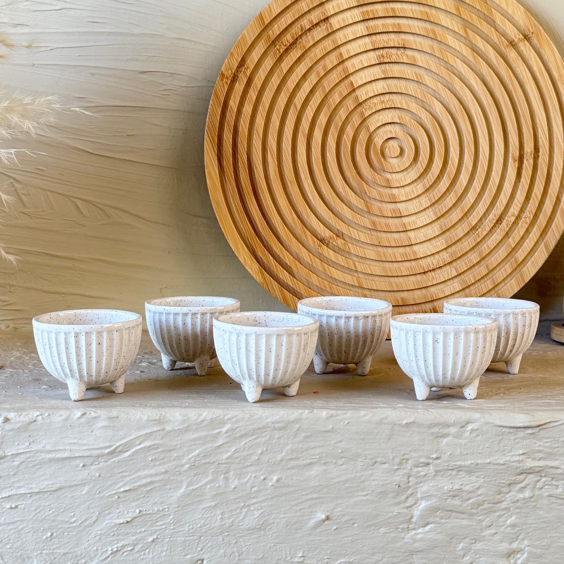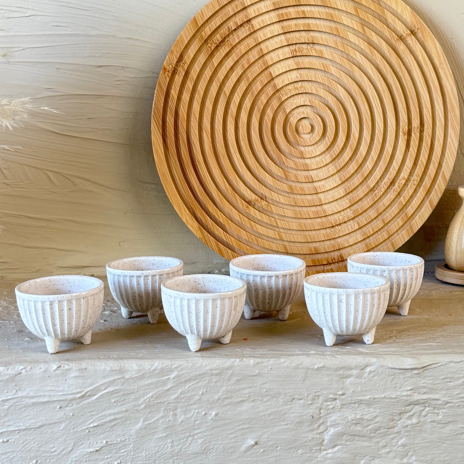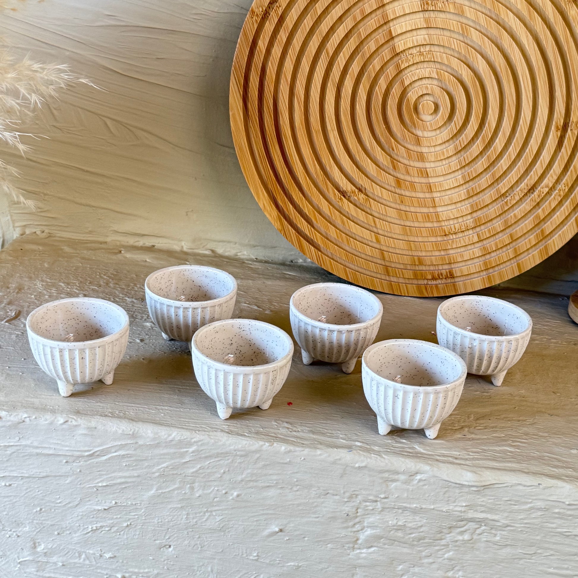 Porline Ayaklı Porselen Lokumluk Sosluk Seti 6 Kişilik Krem
