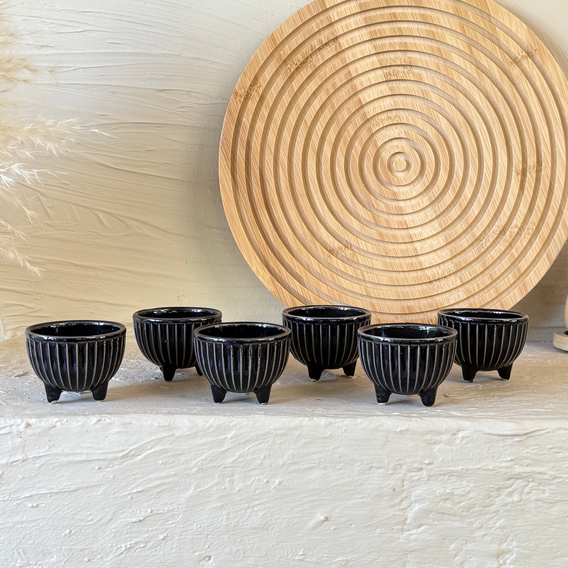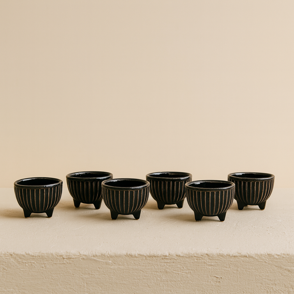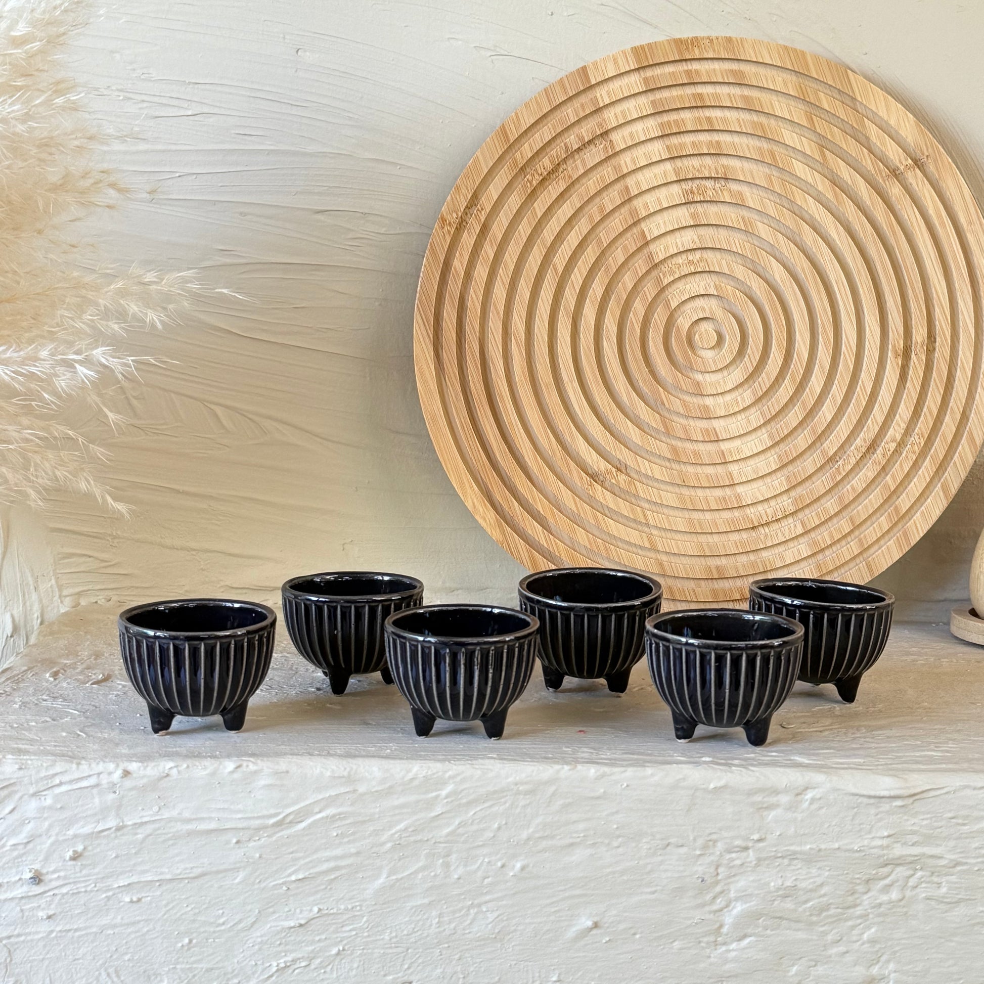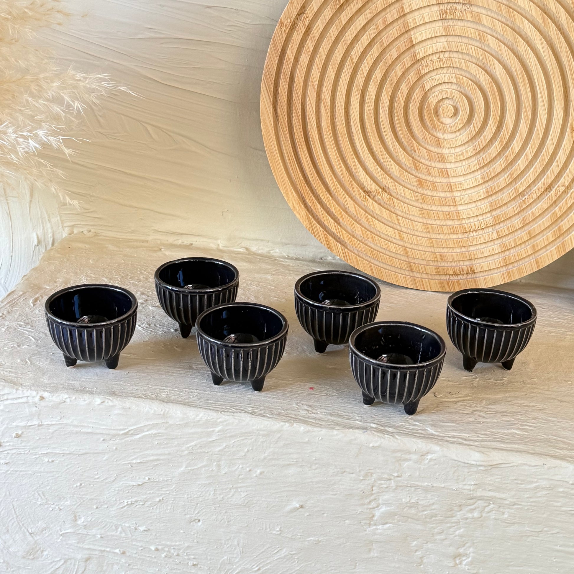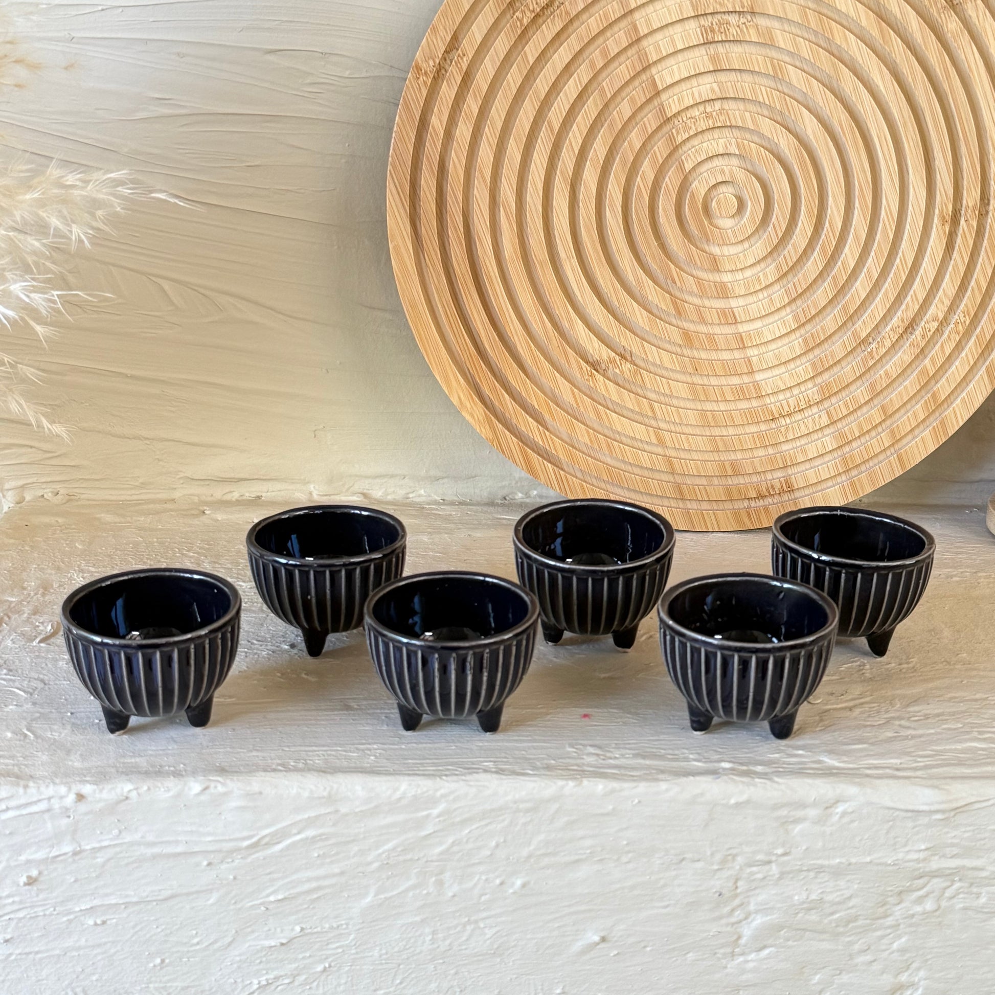 Porline Ayaklı Porselen Lokumluk Sosluk Seti 6 Kişilik Siyah