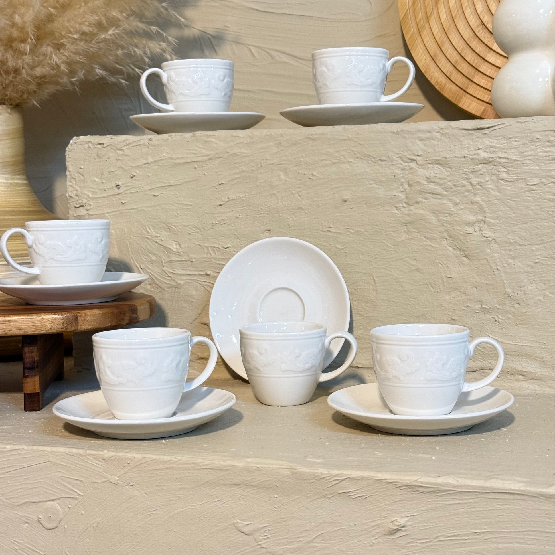 Porline Helena Porselen Kahve Fincan Seti 6 Kişilik Beyaz