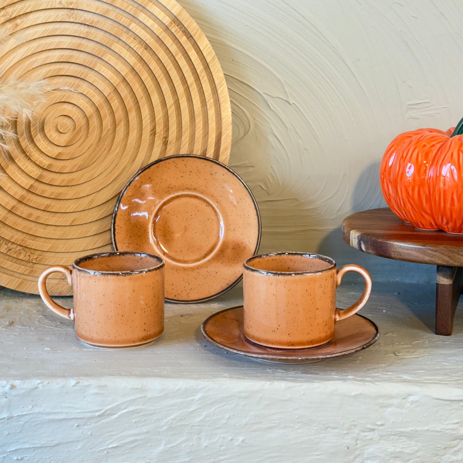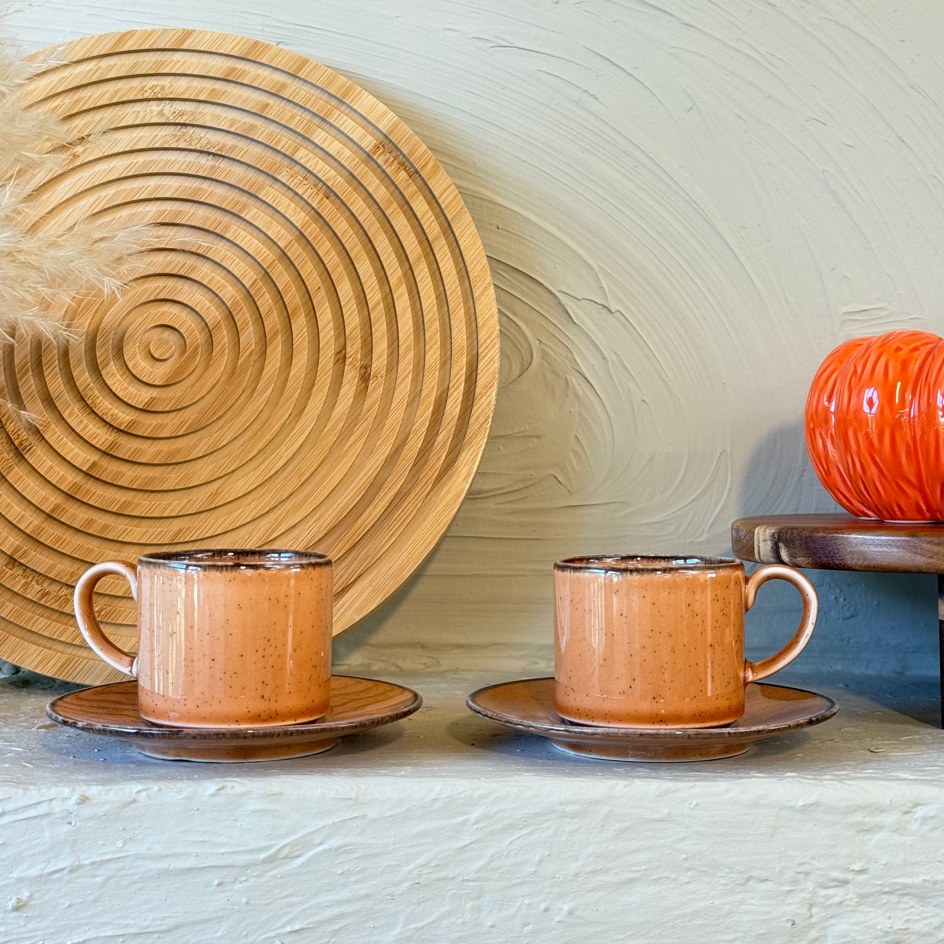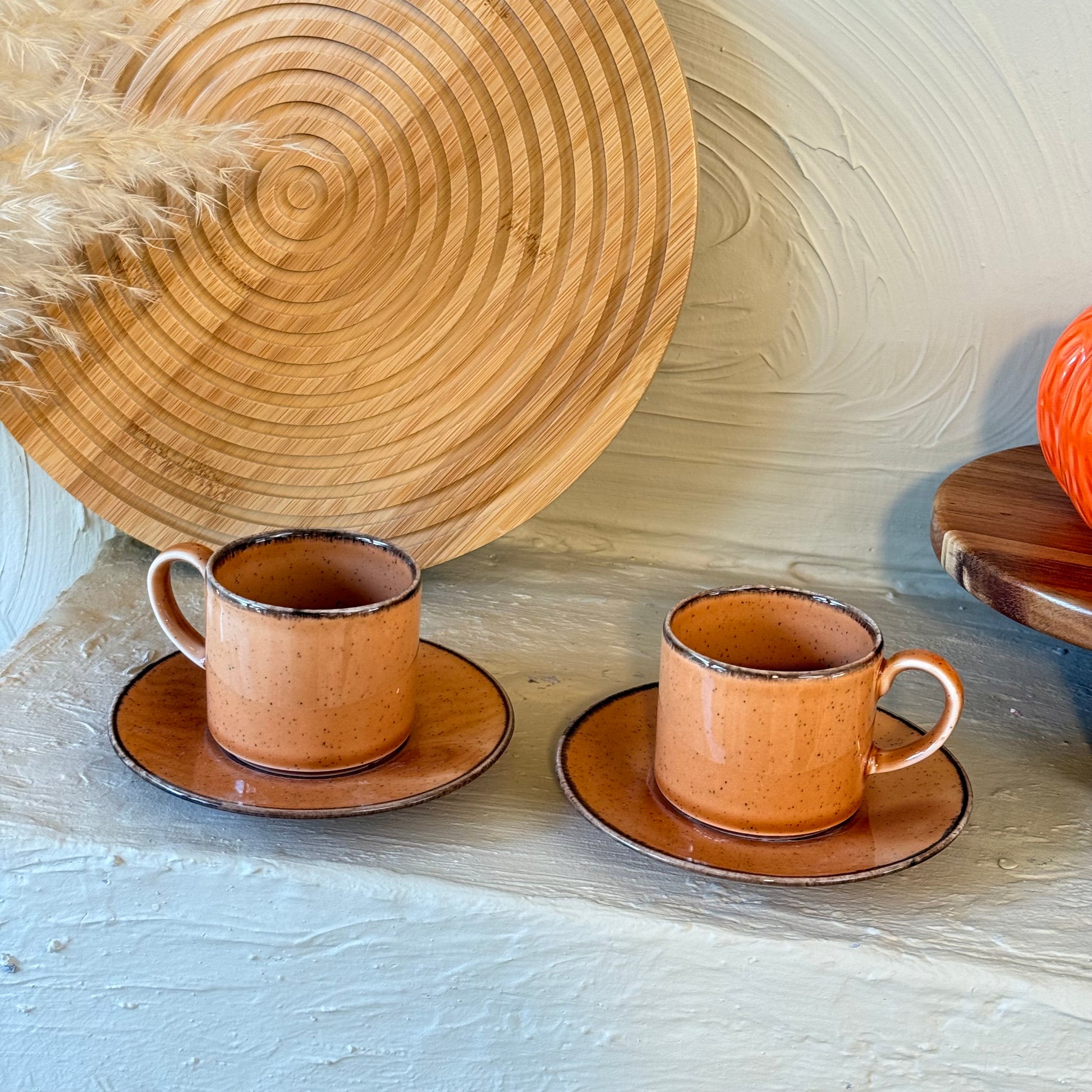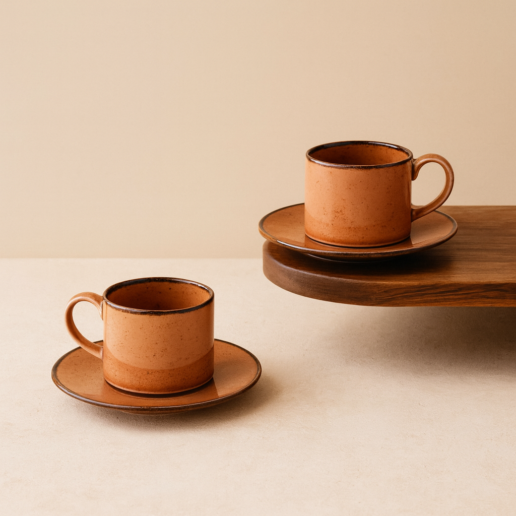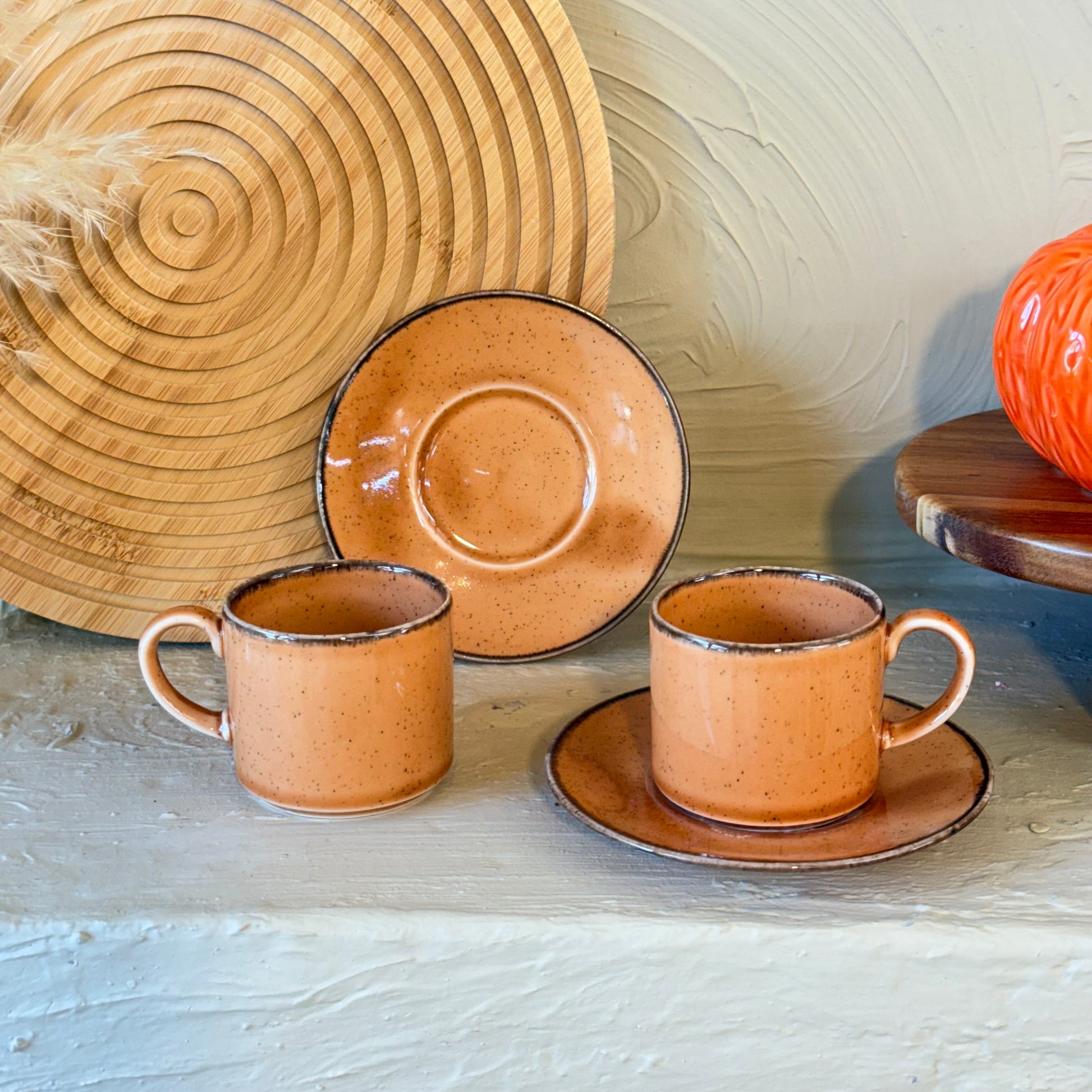 Porline İkili Porselen Kahve Fincan Seti Kiremit
