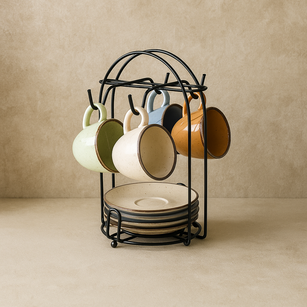 Porline Metal Standlı Renkli Kupa Seti 4 Kişilik KOD:0527