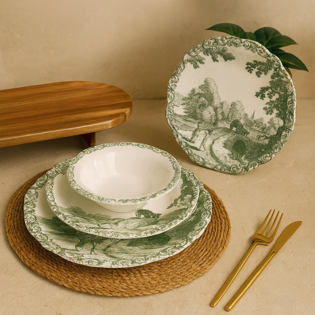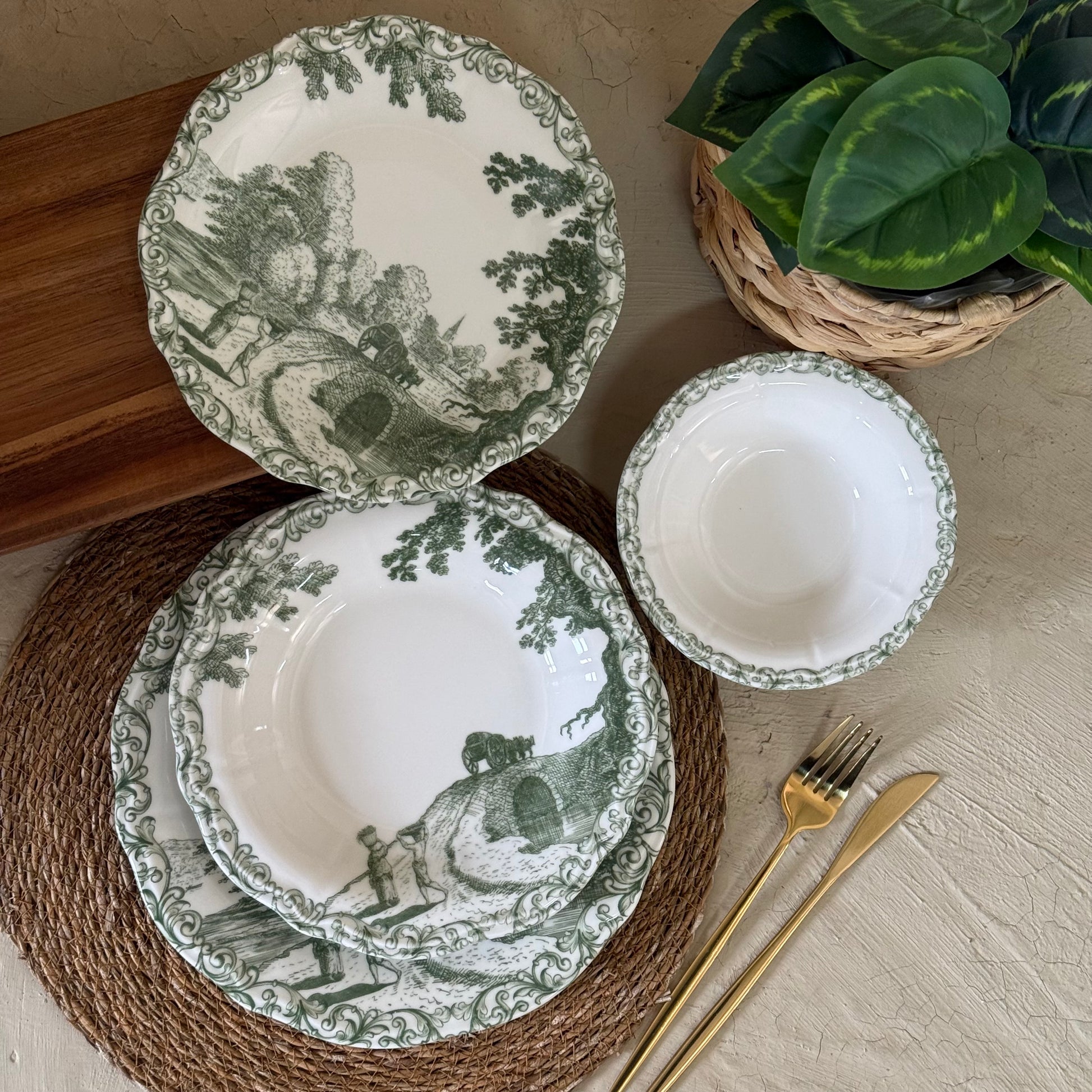 Porser Porselen 24 Parça Yemek Takımı 6 Kişilik Yeşil KOD:ARVENNA-30402-3