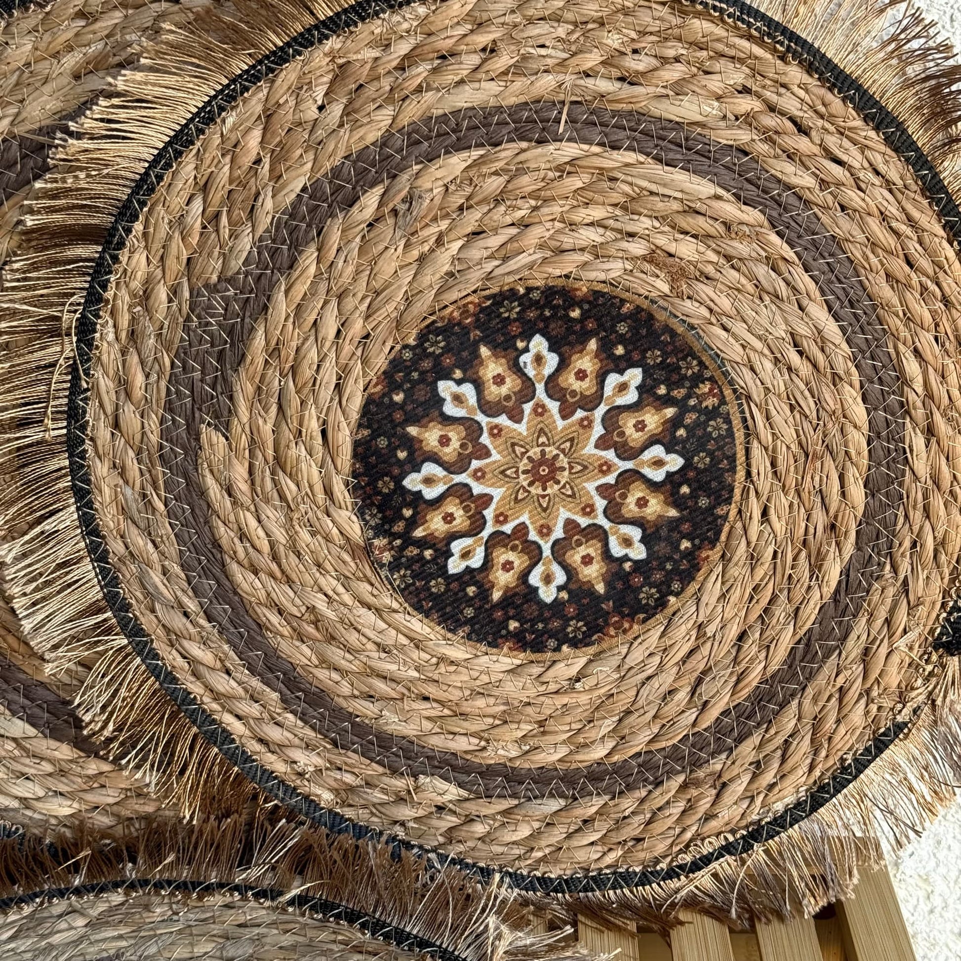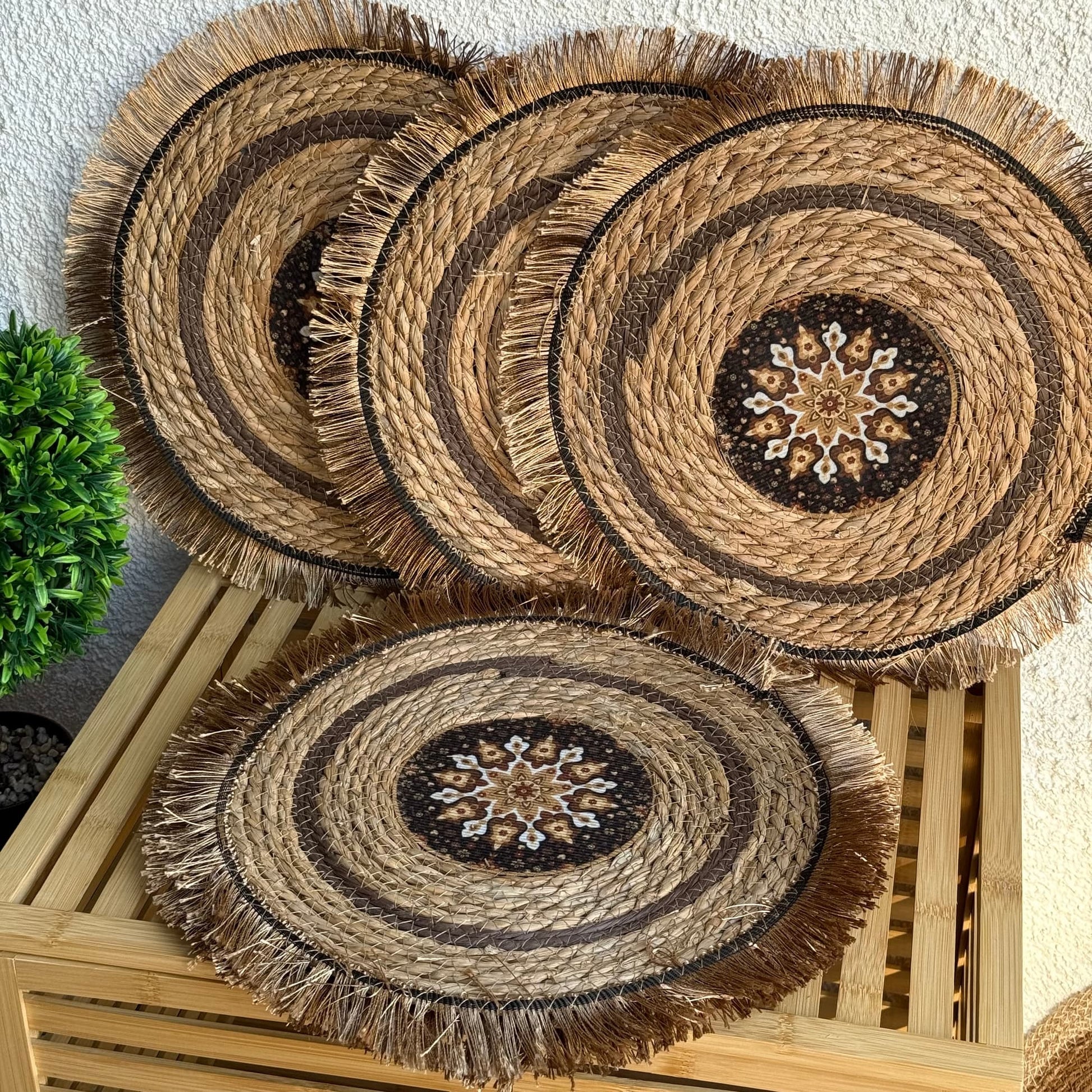 Püskülü Desenli Yuvarlak Hasır Amerikan Servisi 6 Adet