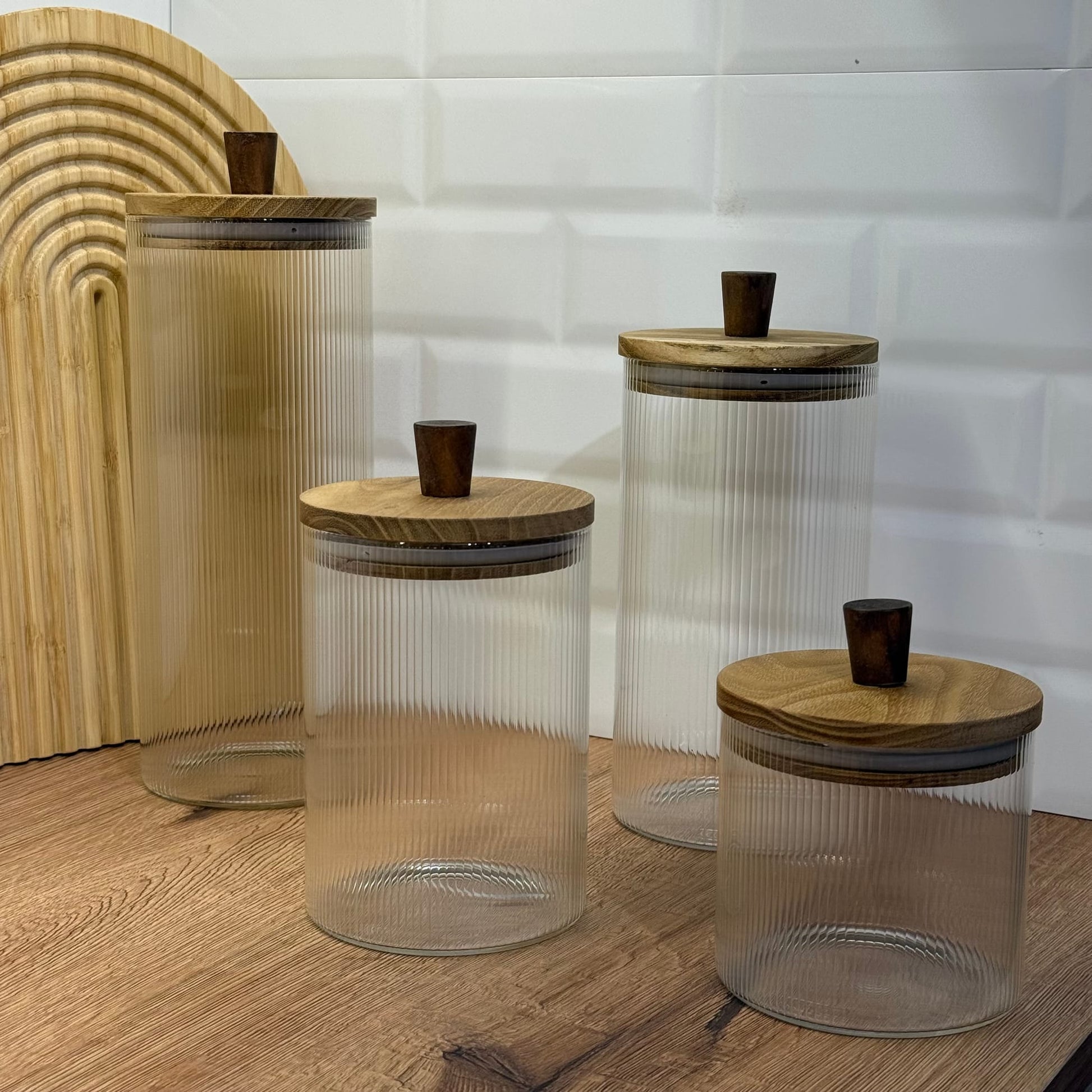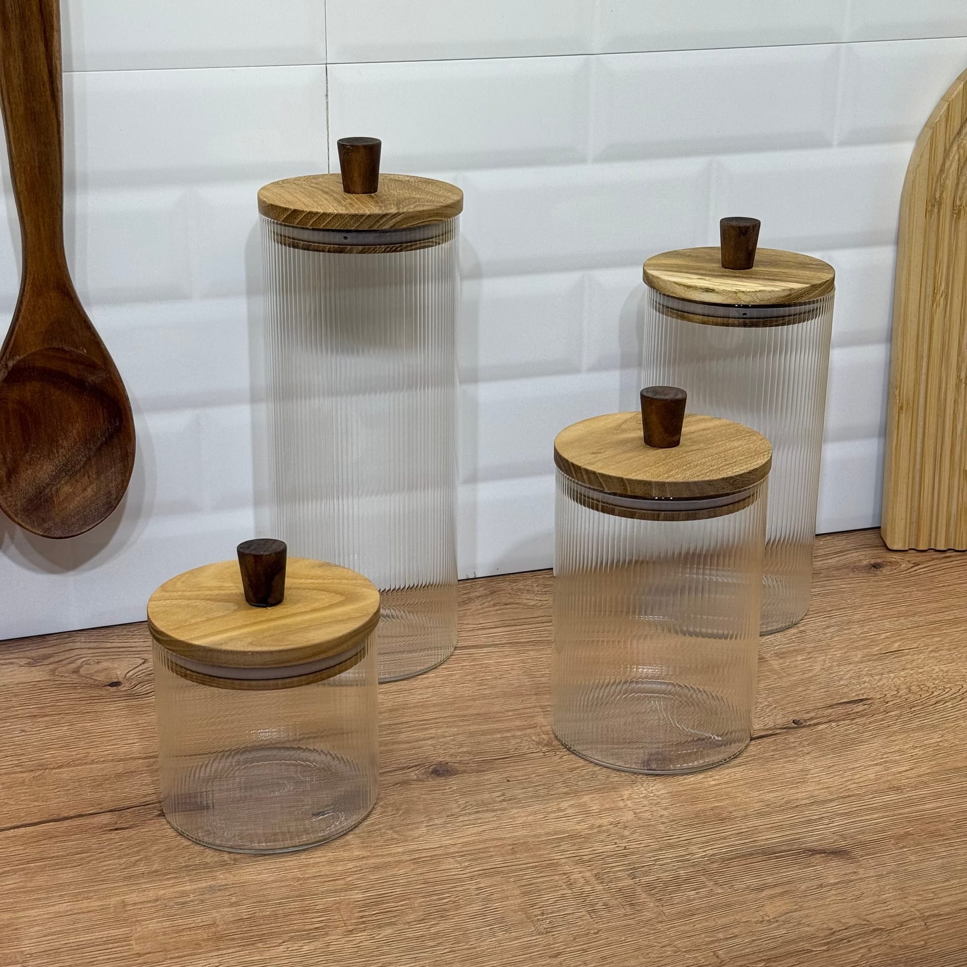 Regina 4 Lü Çizgili Kavanoz Seti Akasya Ağacı Kapaklı