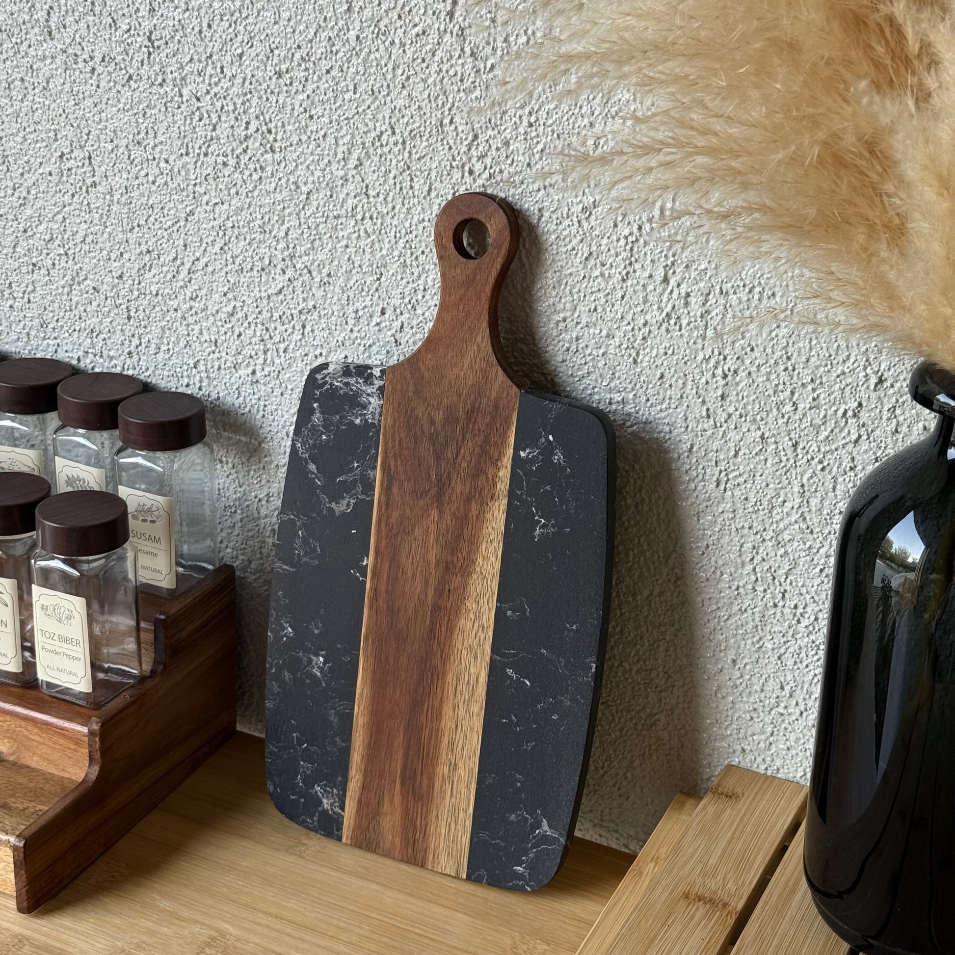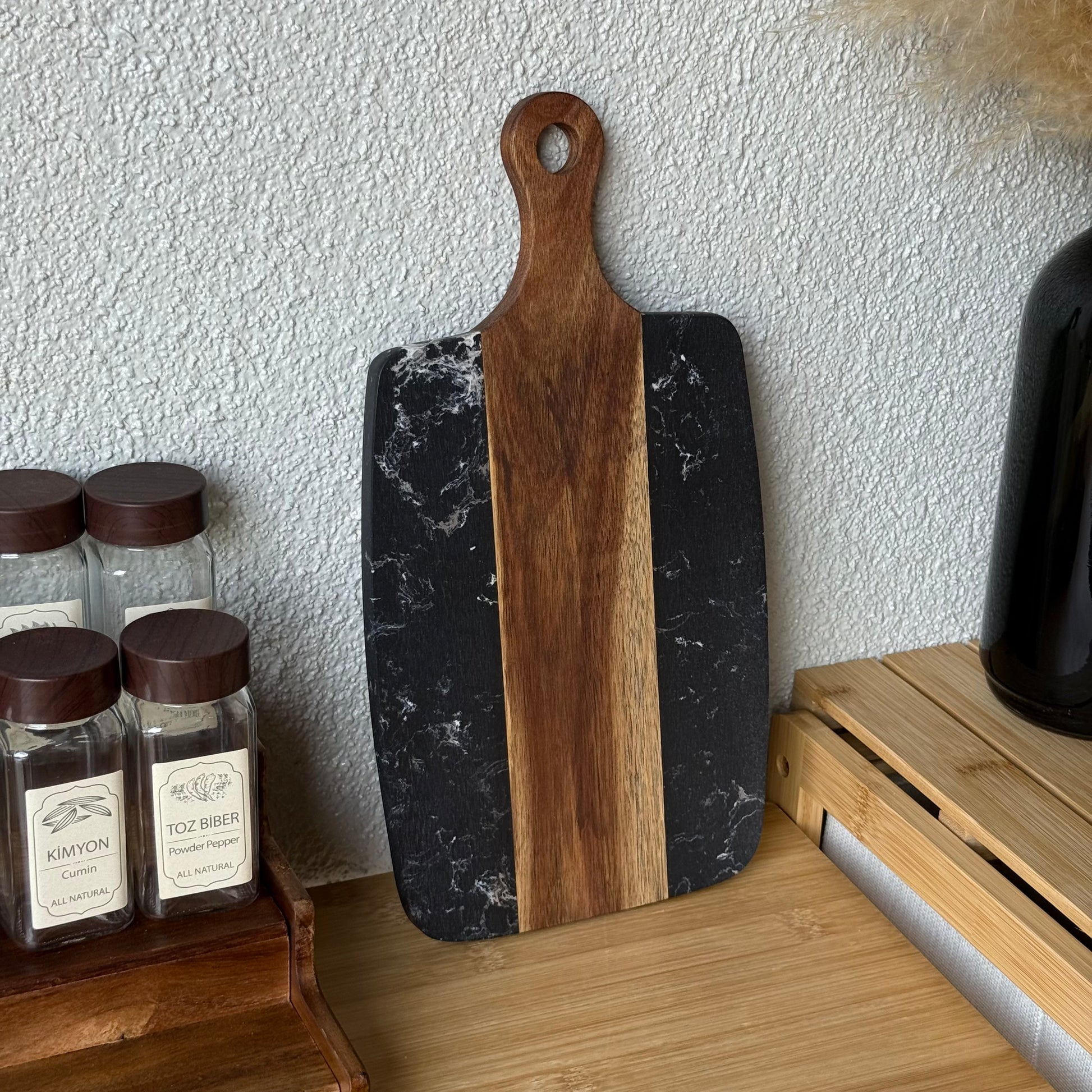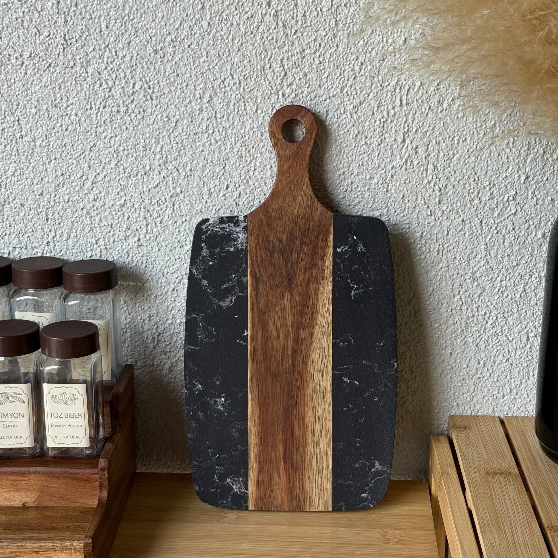 Saf Mermer Saplı Sunumluk Siyah Küçük Boy