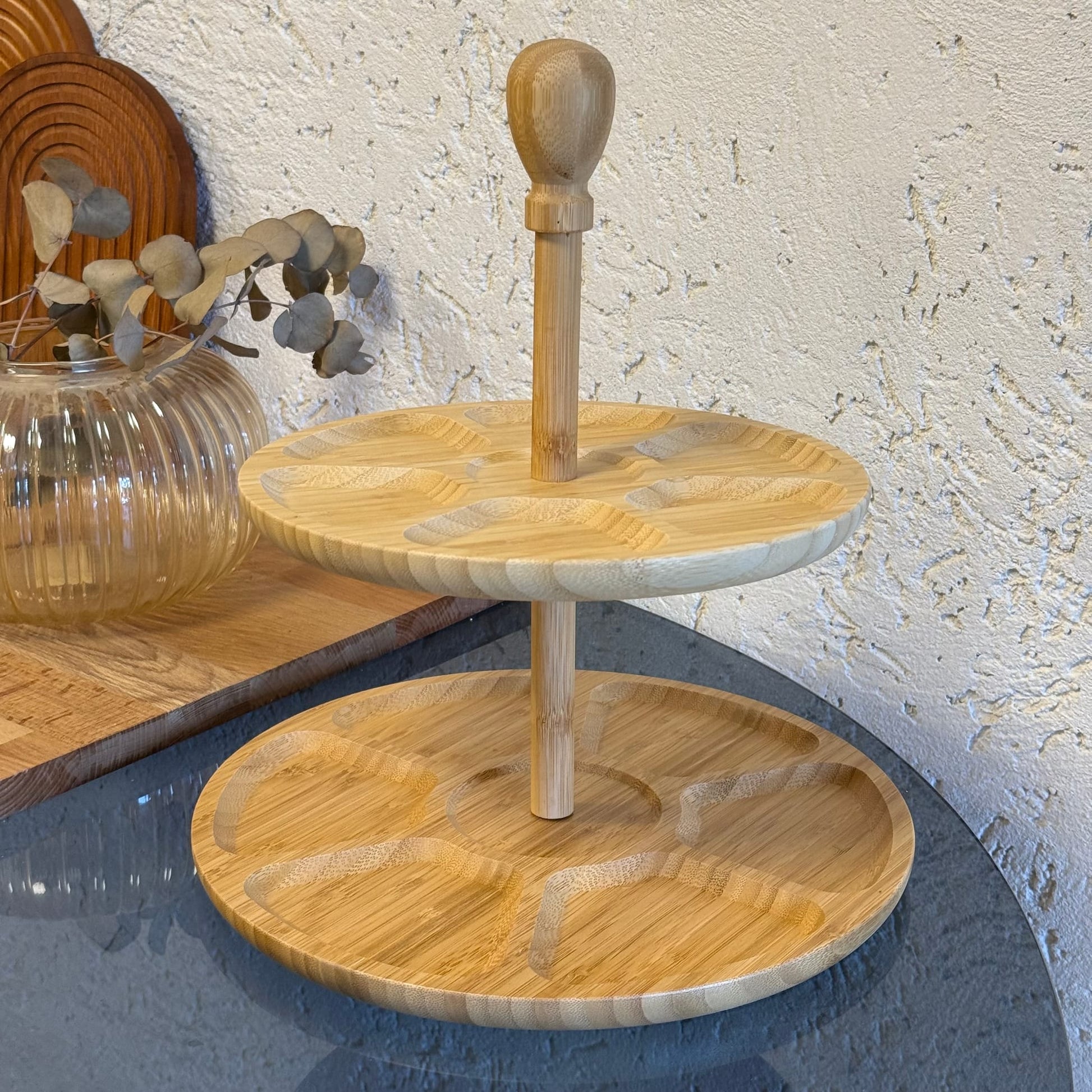 Selena 2 Katlı Yuvarlak Bölmeli Bambu Sunumluk 33 CM