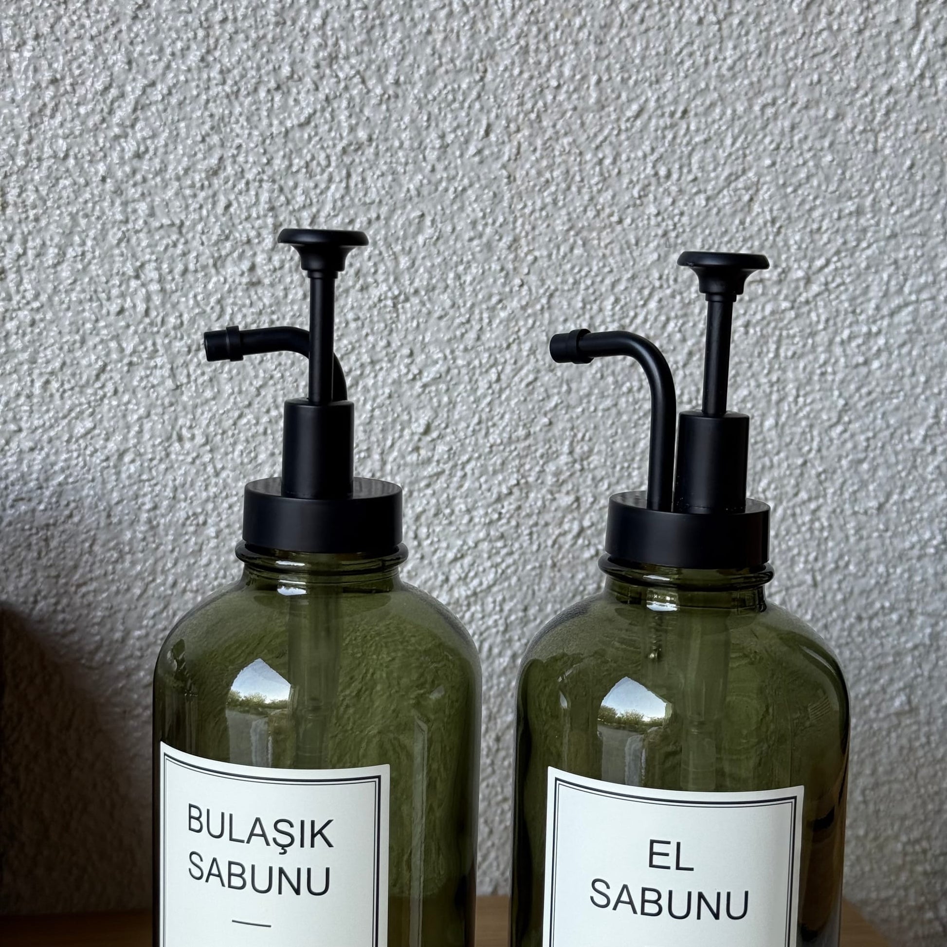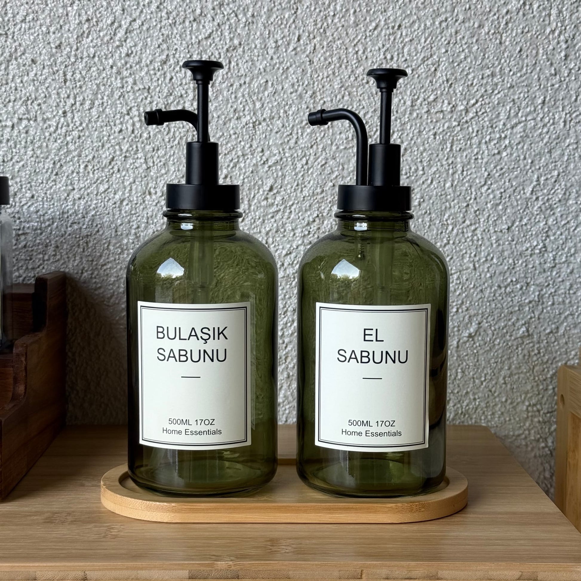 Selena Bambu Standlı İkili Cam Yuvarlak Sıvı Sabunluk Seti Yeşil 500 ml