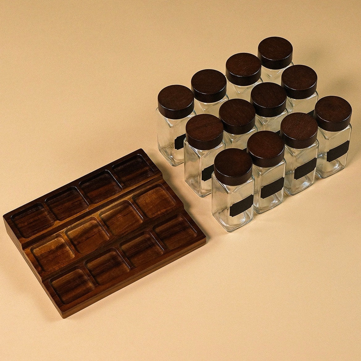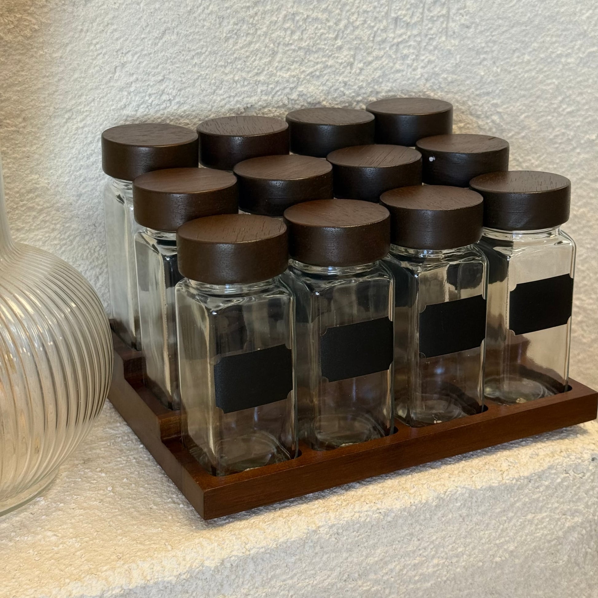 Spice Ahşap Standlı 12 li Cam Baharatlık Seti 120 ml