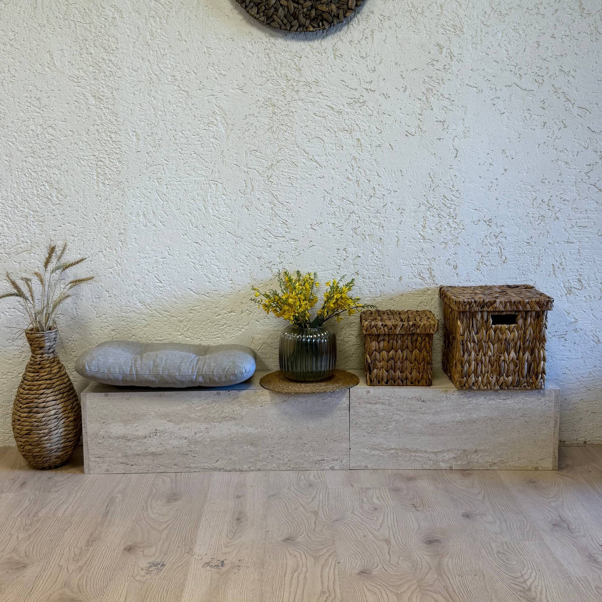 Stella İki Boy, Dekoratif Dresuar Sütun, Traverten Desen, B.Boy 90x28x28 cm, K.Boy 70x28x28 cm