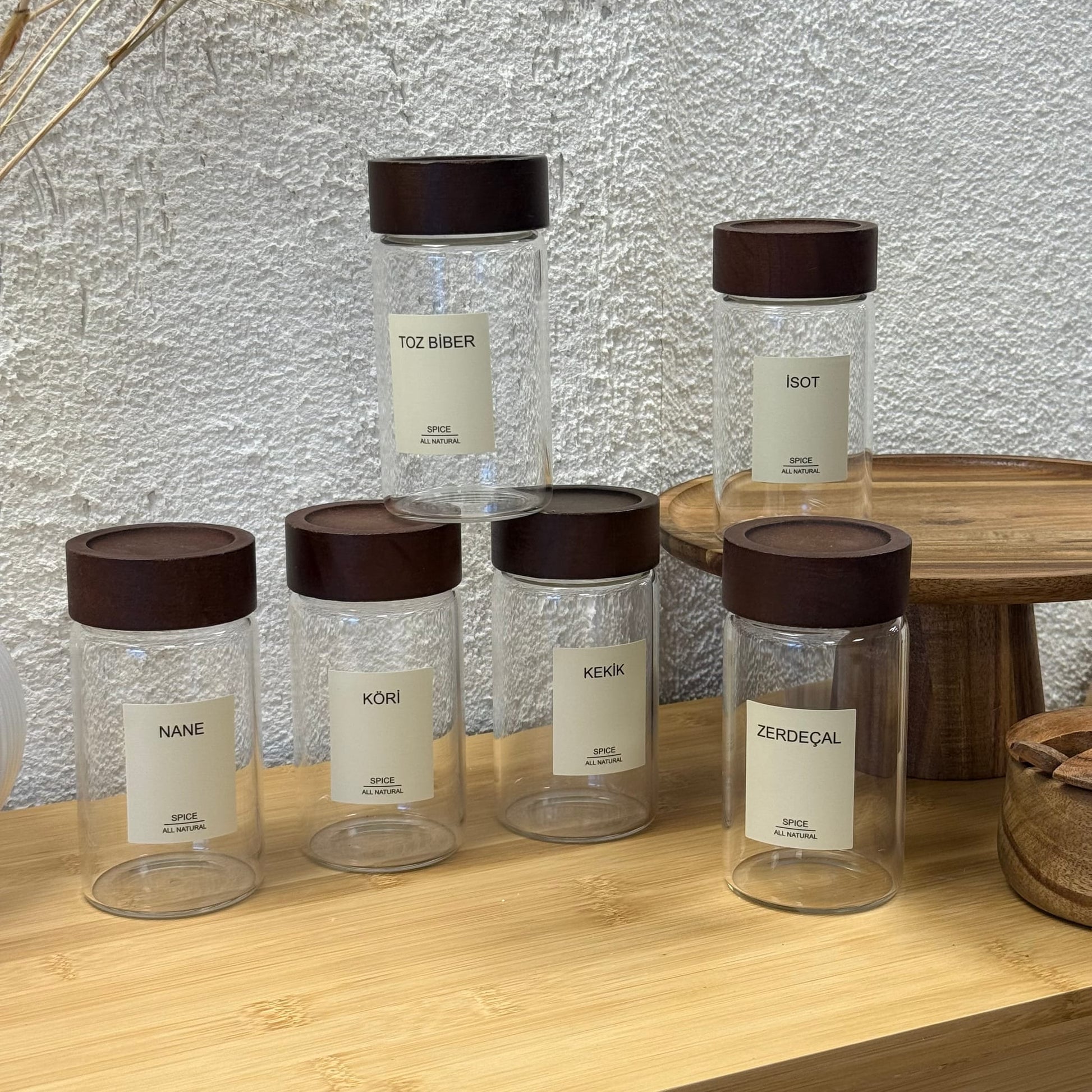 Strokka Akasya Kapaklı Silindir Kavanoz Seti 6 Adet 300 ml