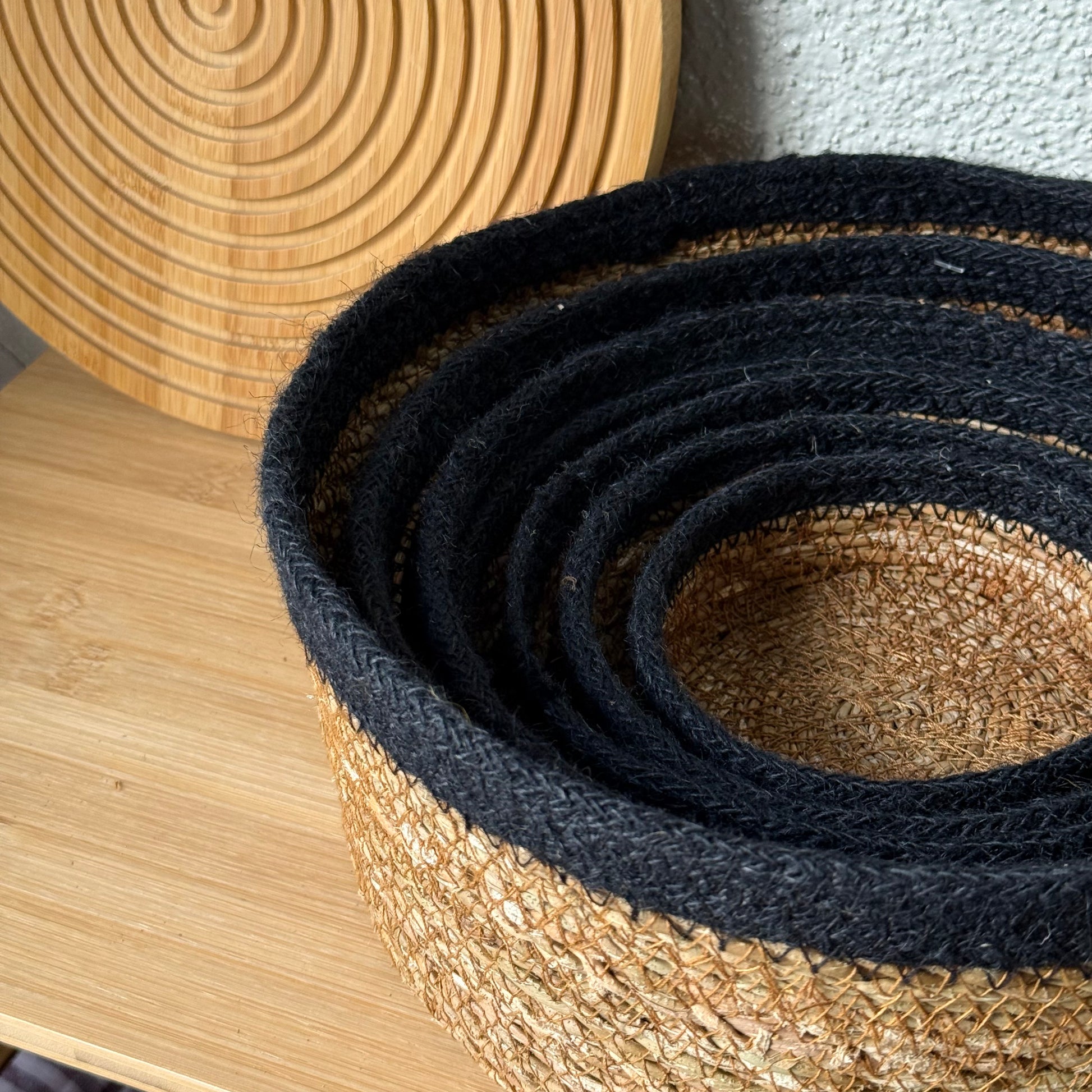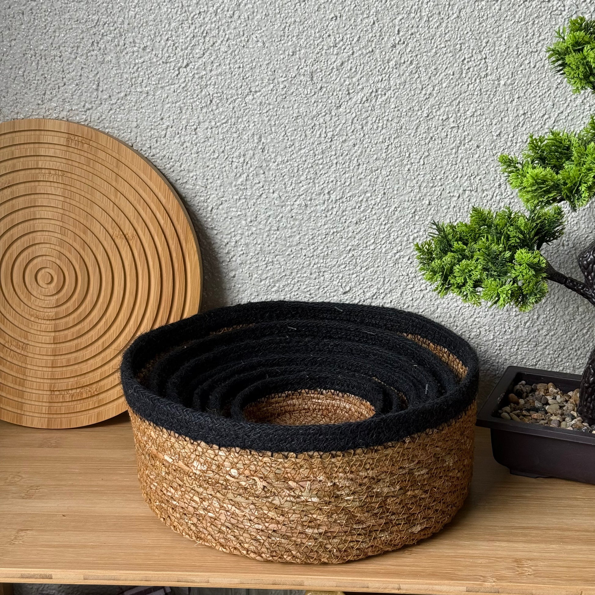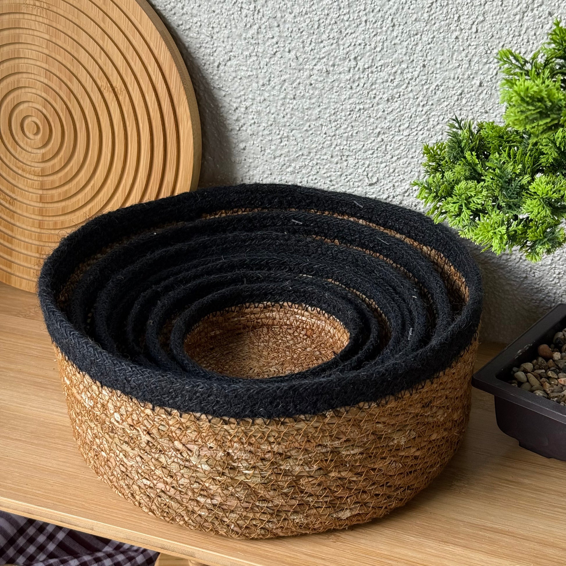Svr 7 Parça Yuvarlak Hasır Sepet Seti Siyah