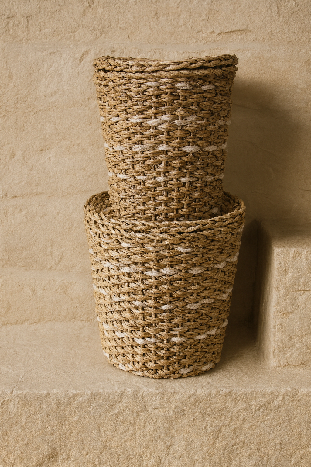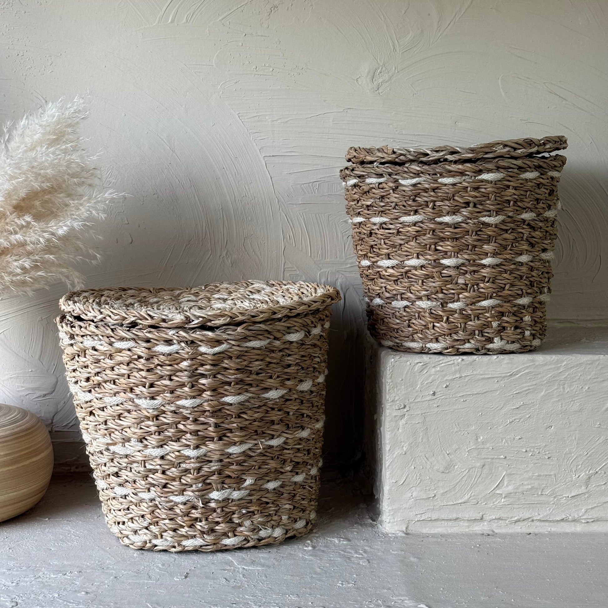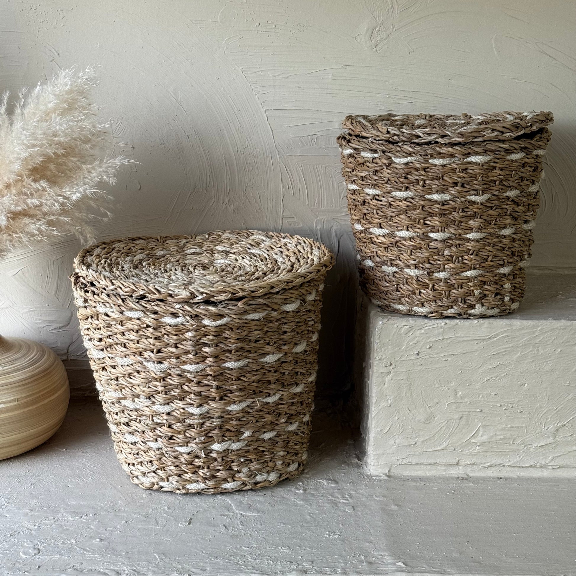 SVR Kapaklı İki Boy Yuvarlak Hasır Patates Soğanlık Krem KOD:15841