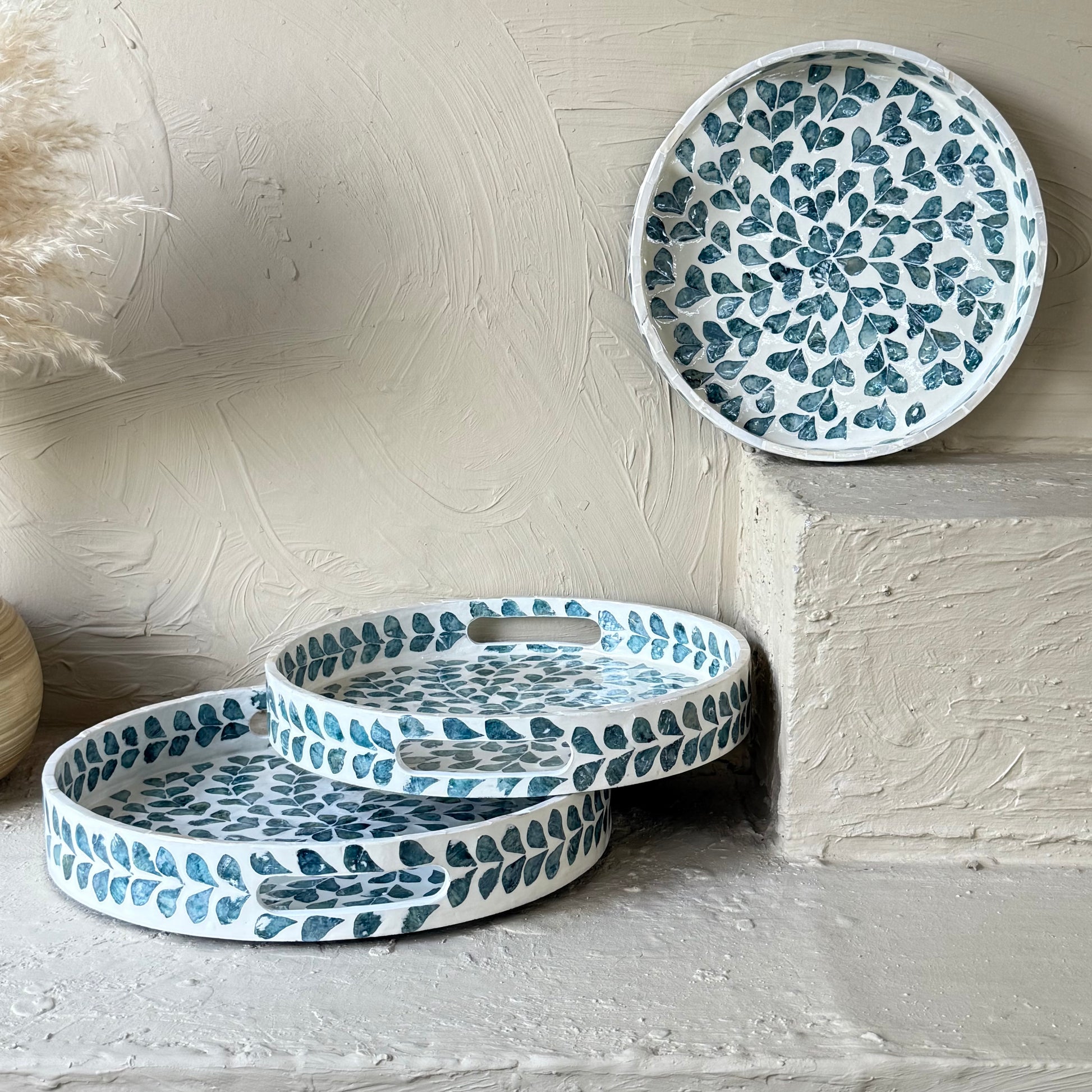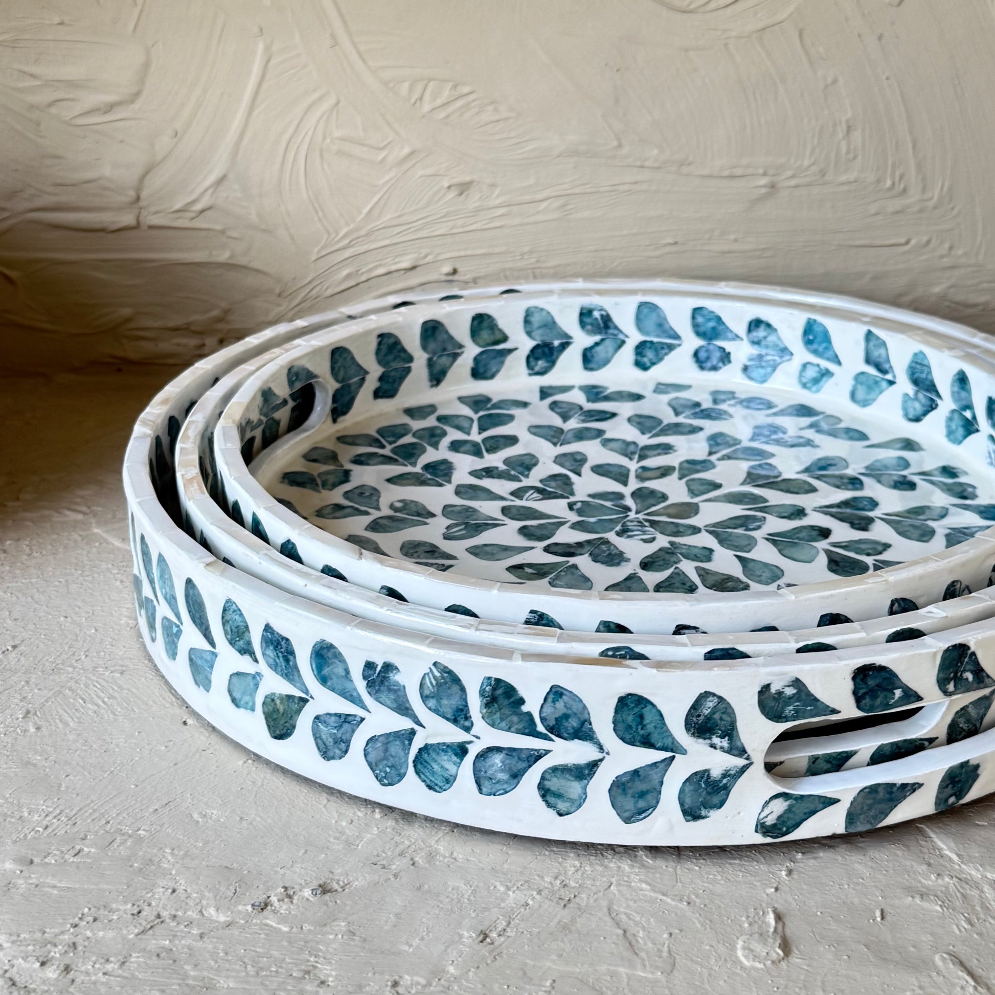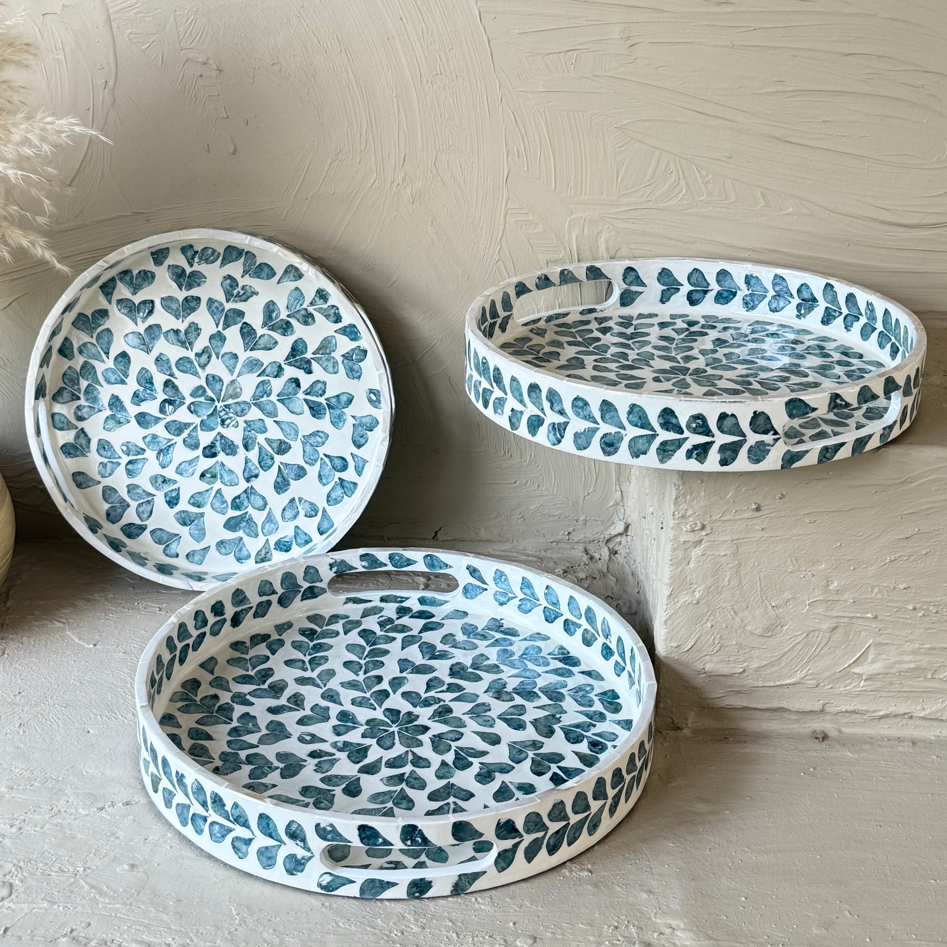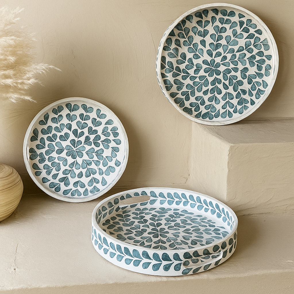 SVR Sedef 3 Lü Yuvarlak Tepsi Seti KOD:61874 Mavi