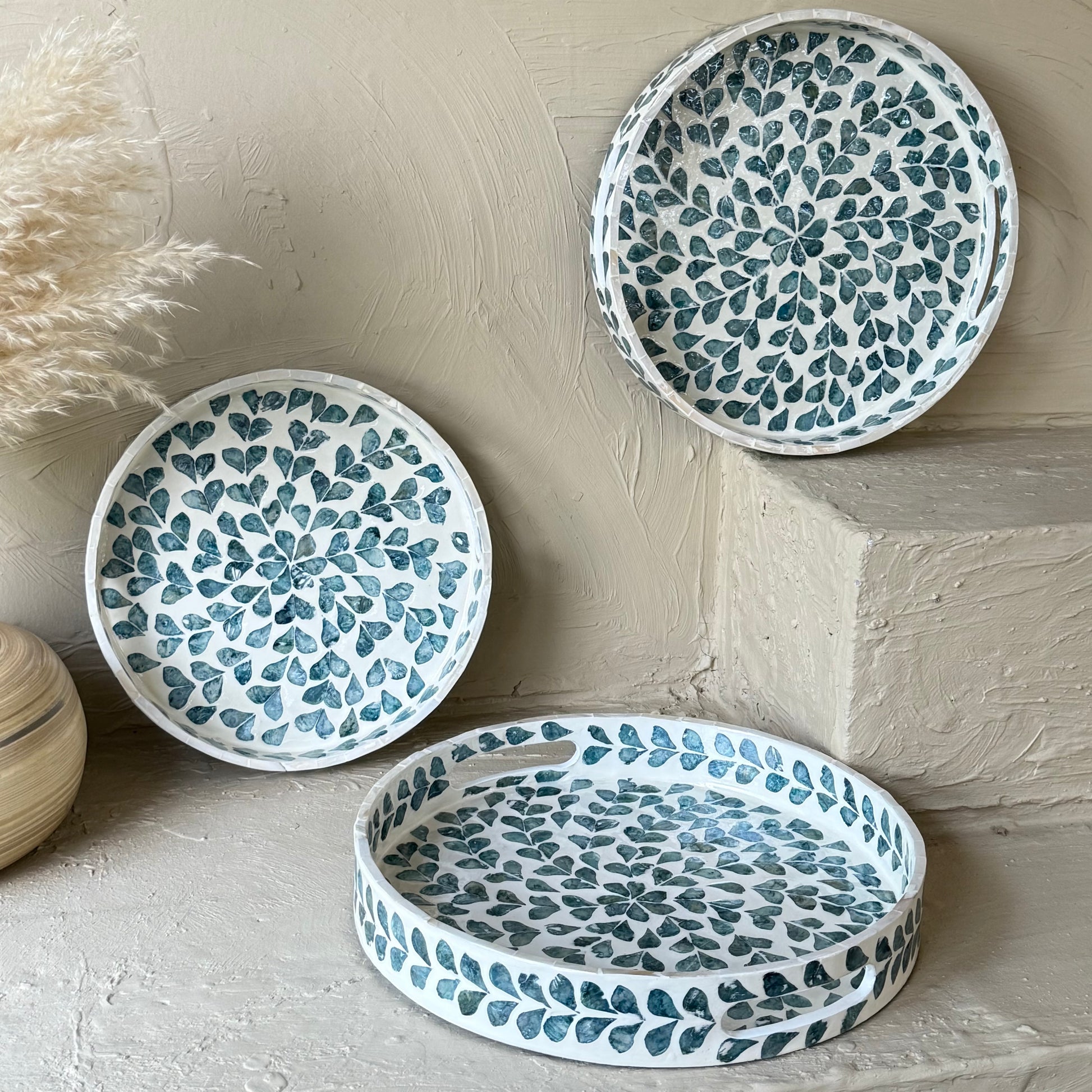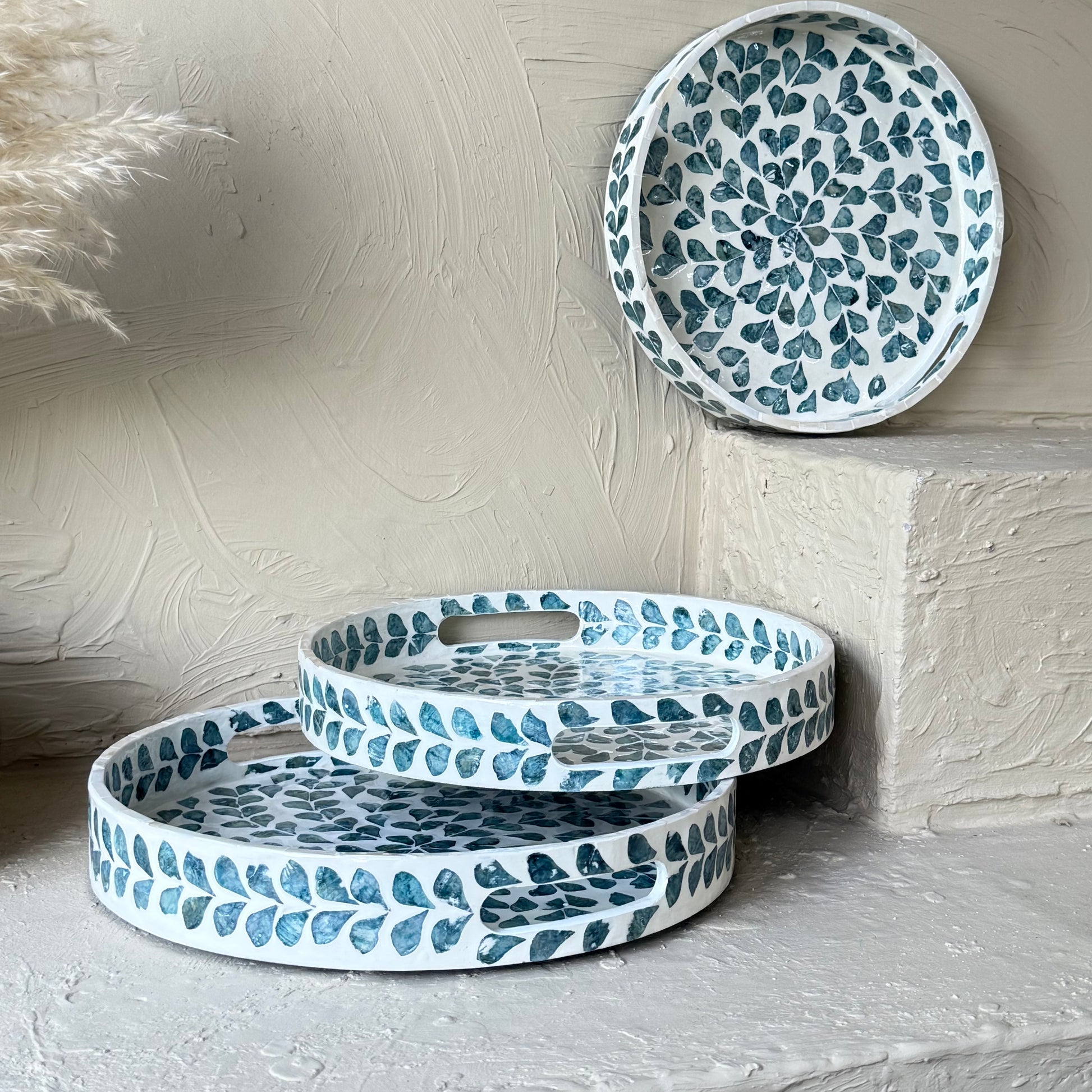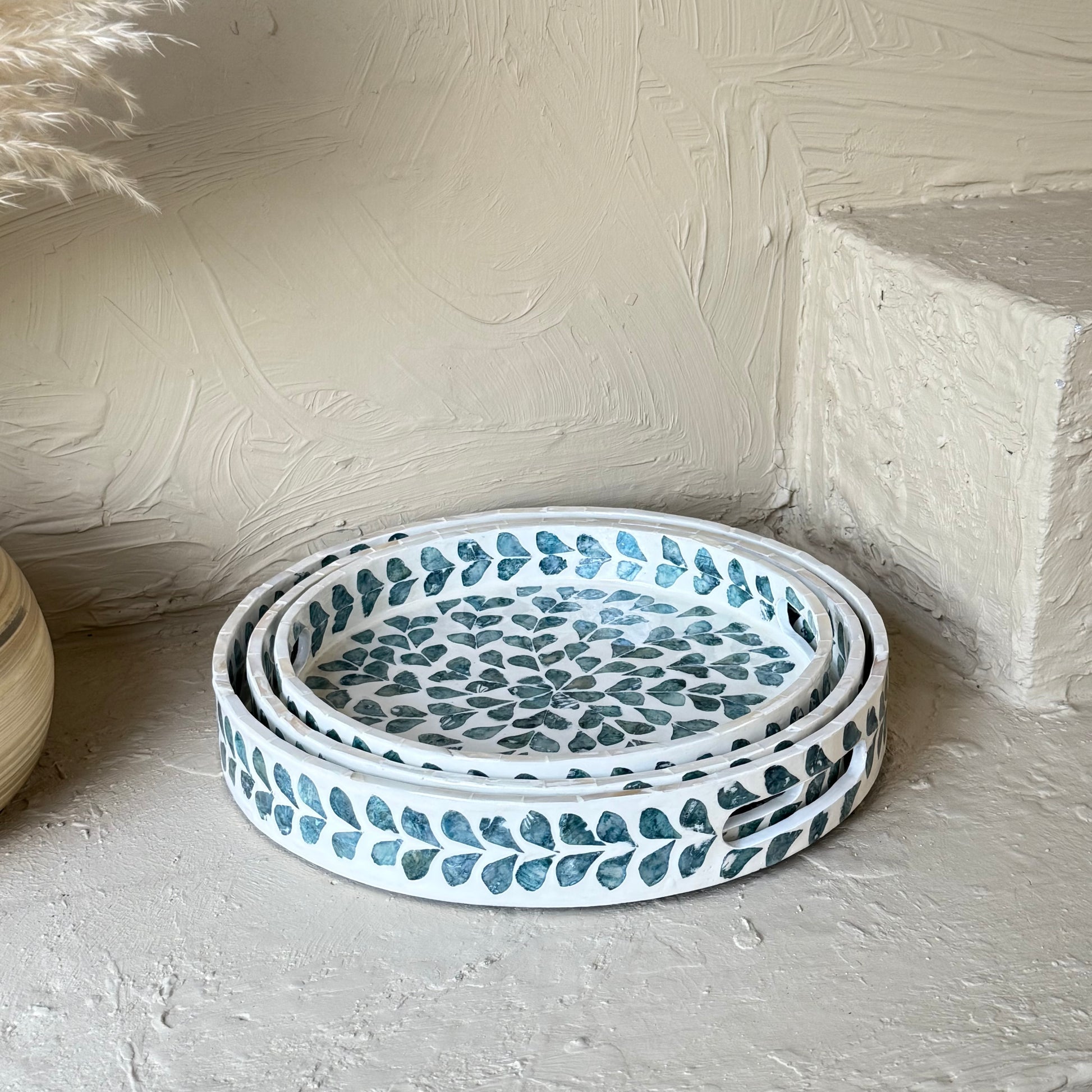 SVR Sedef 3 Lü Yuvarlak Tepsi Seti KOD:61874 Mavi
