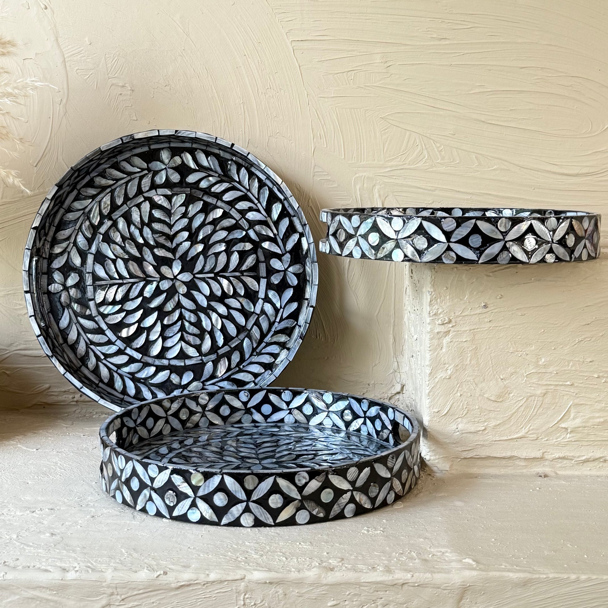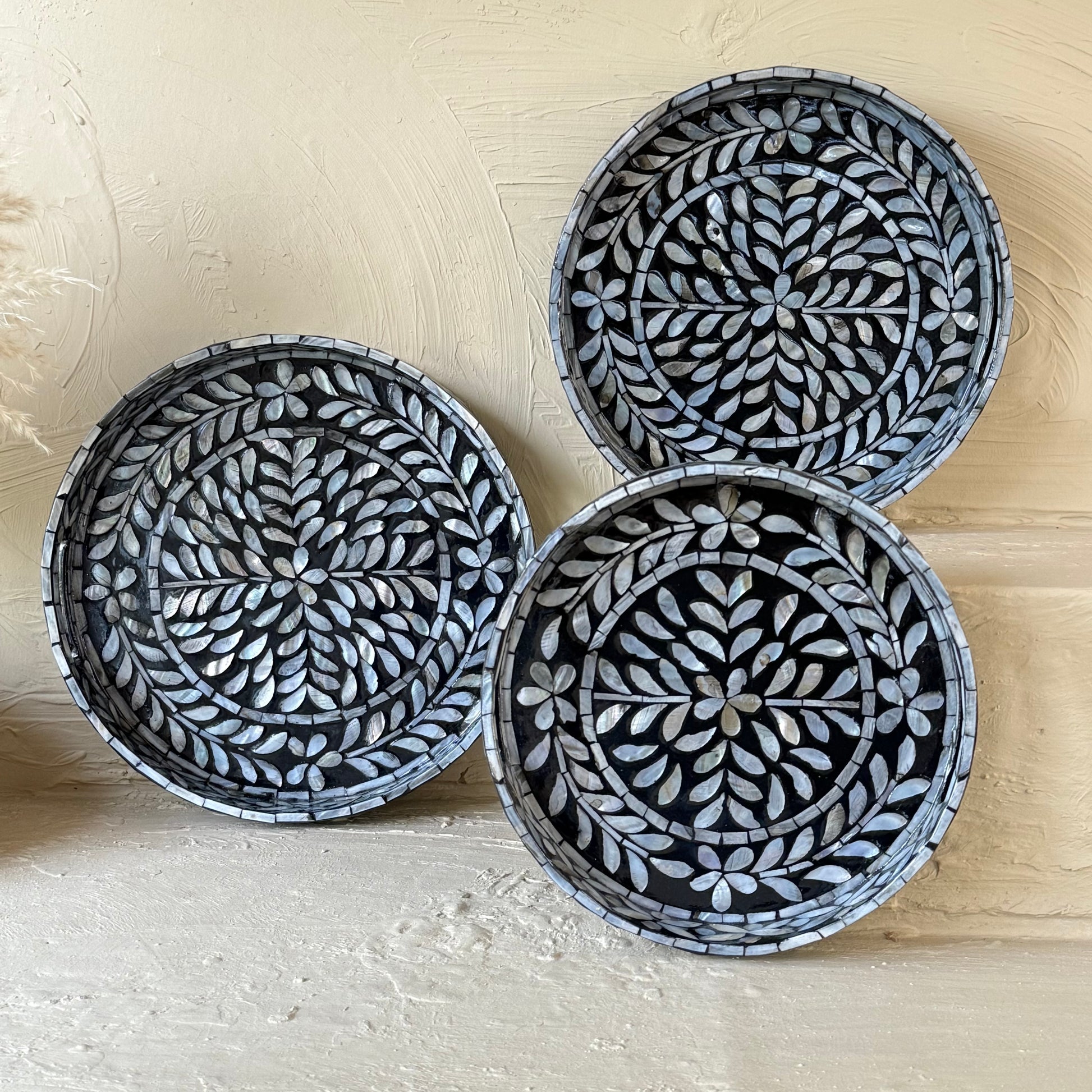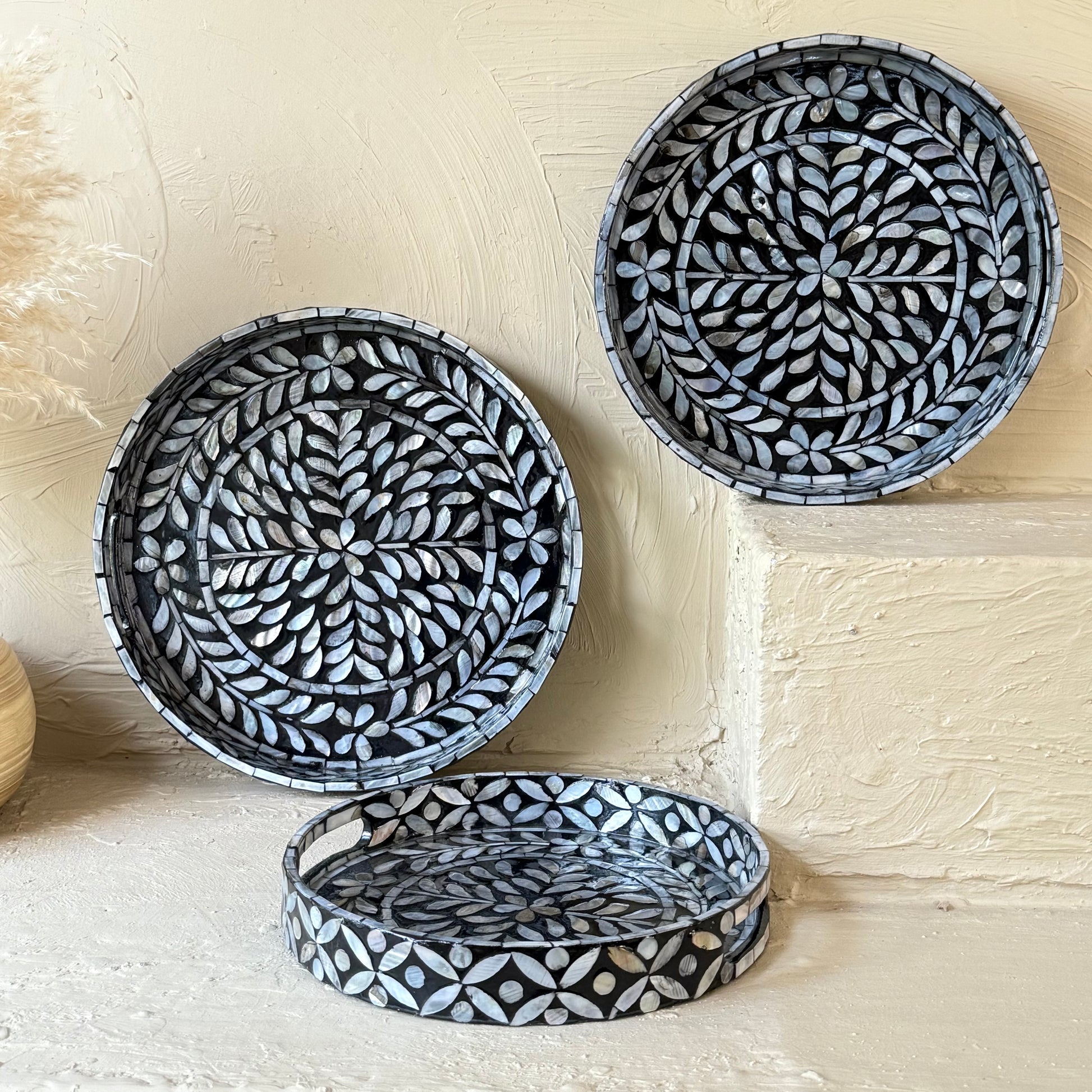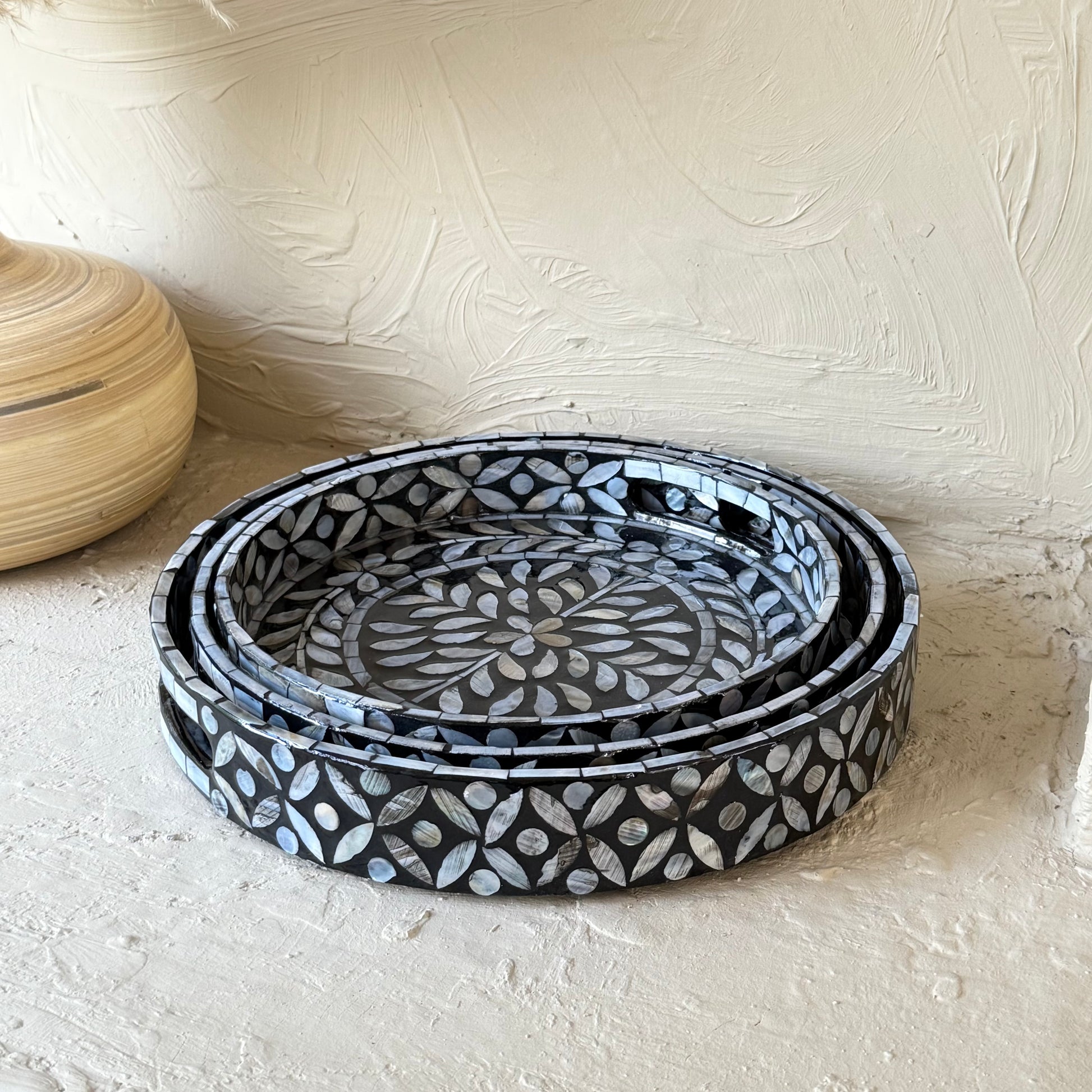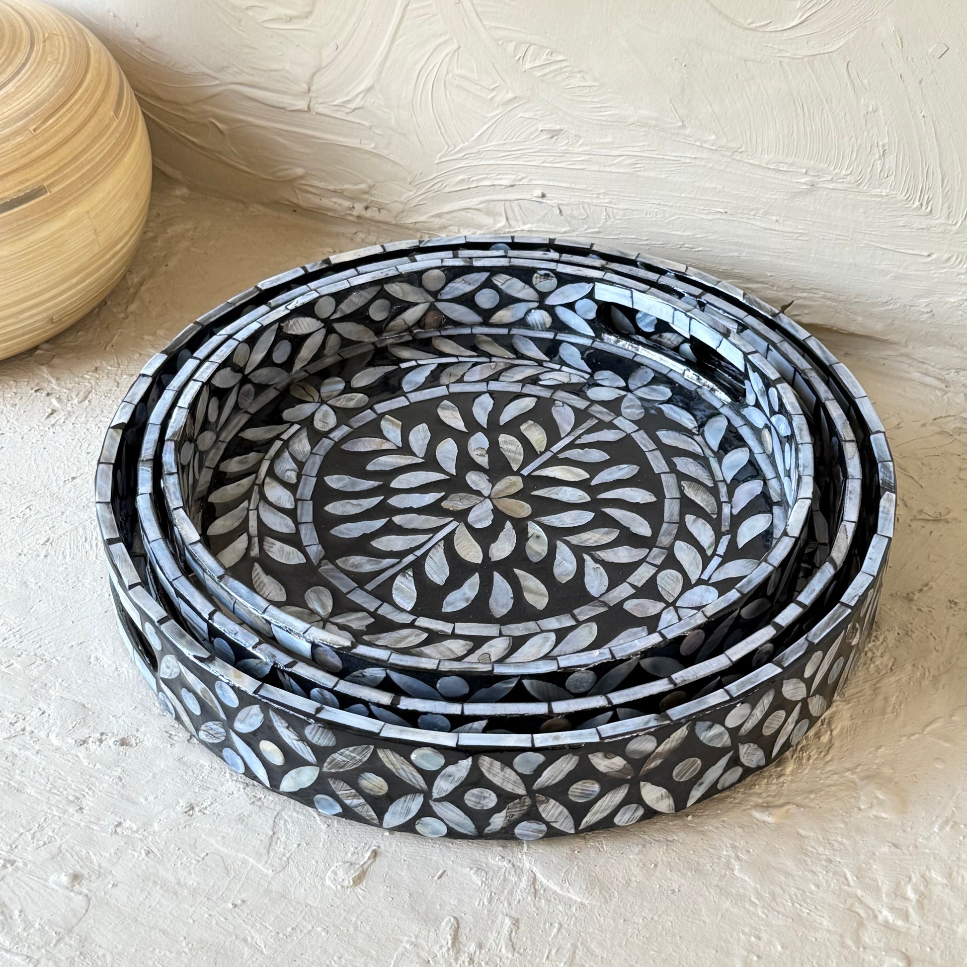 SVR Sedef 3 Lü Yuvarlak Tepsi Seti KOD:61874 Siyah