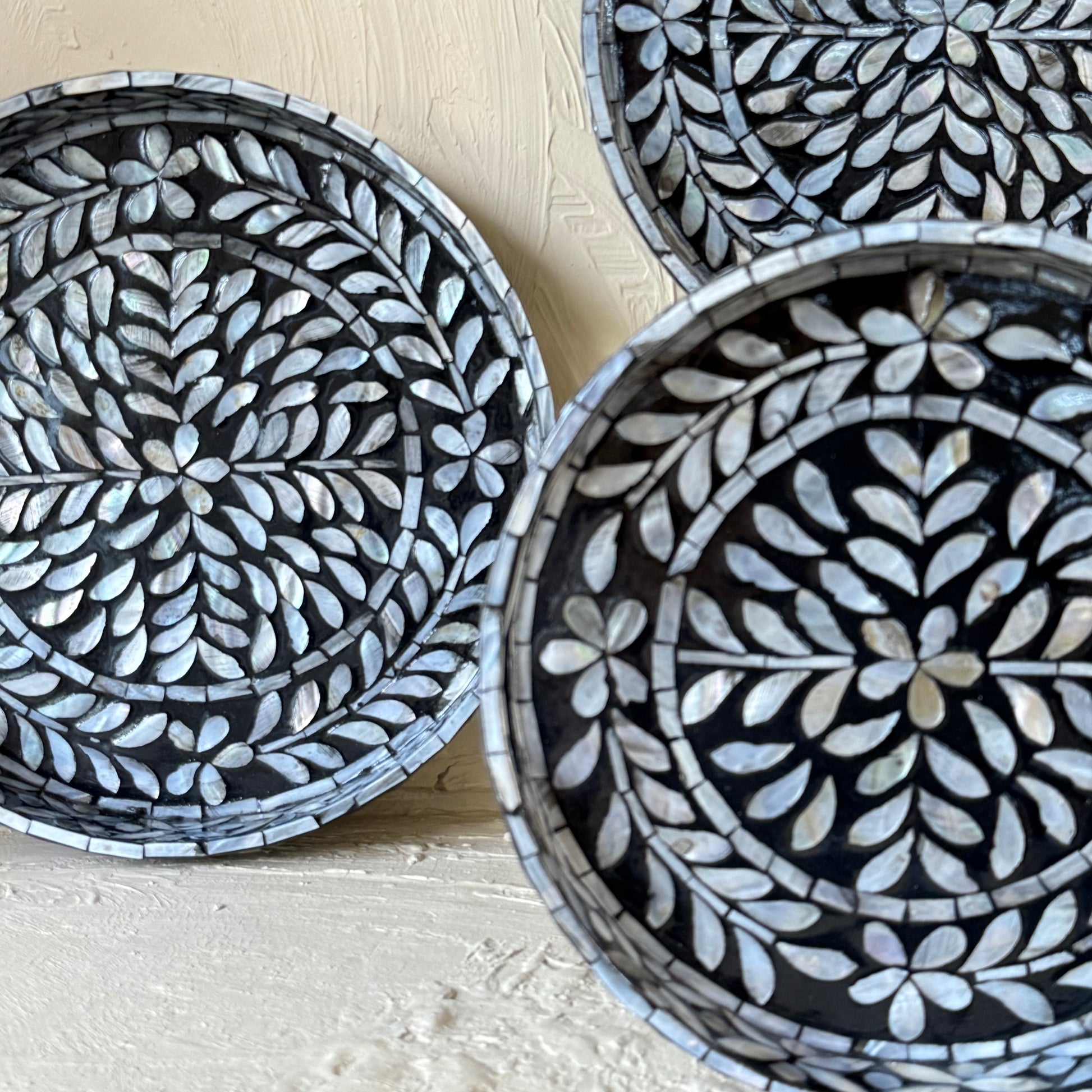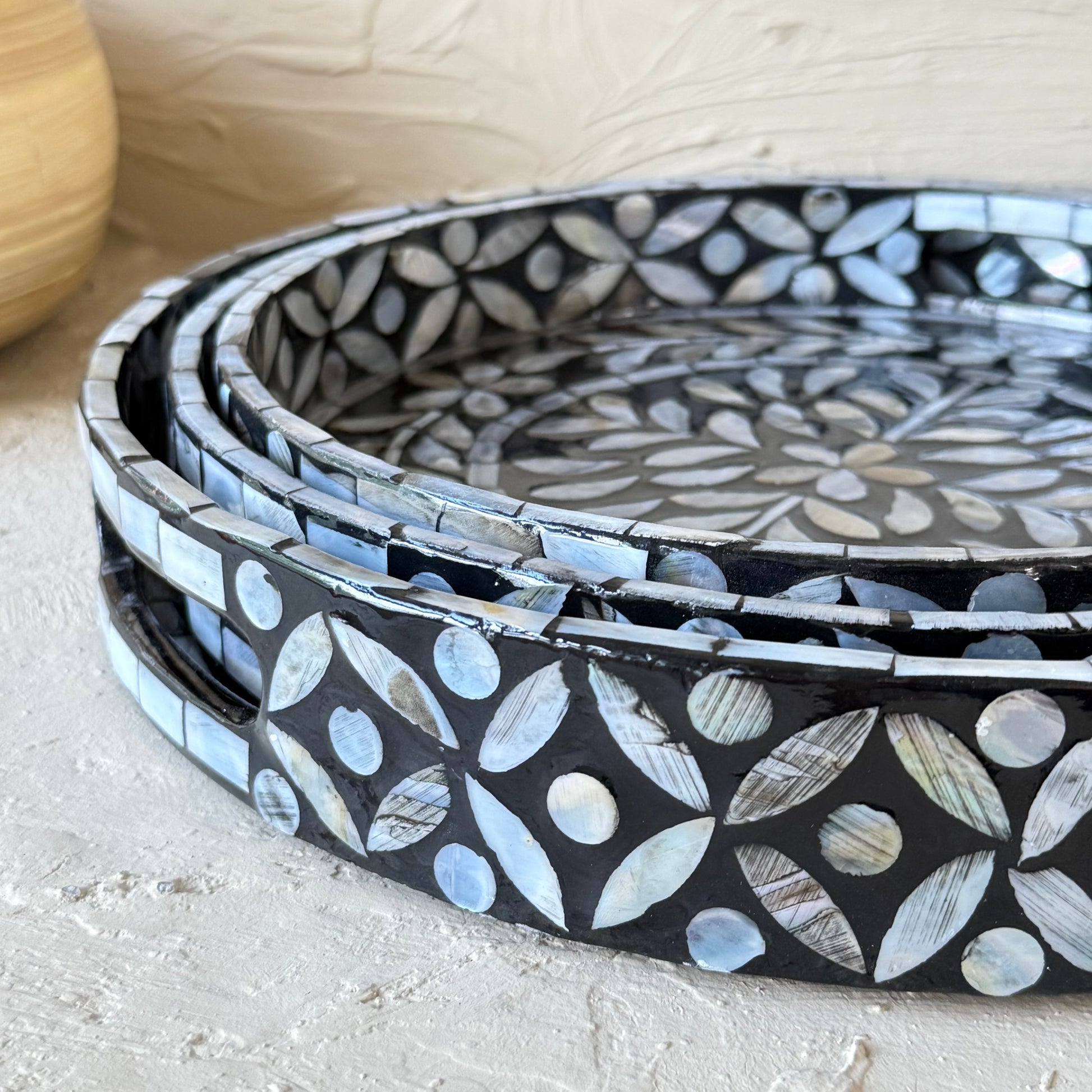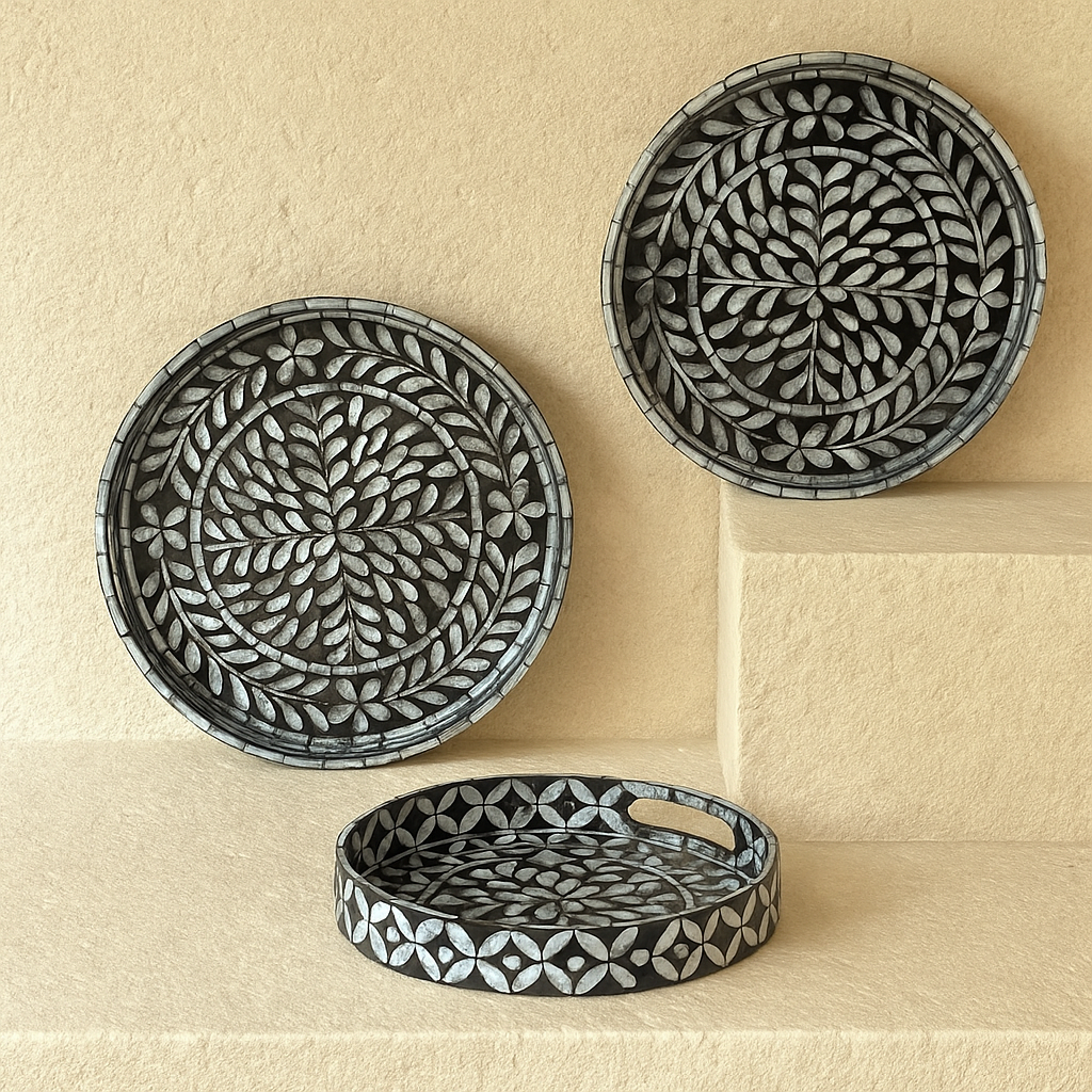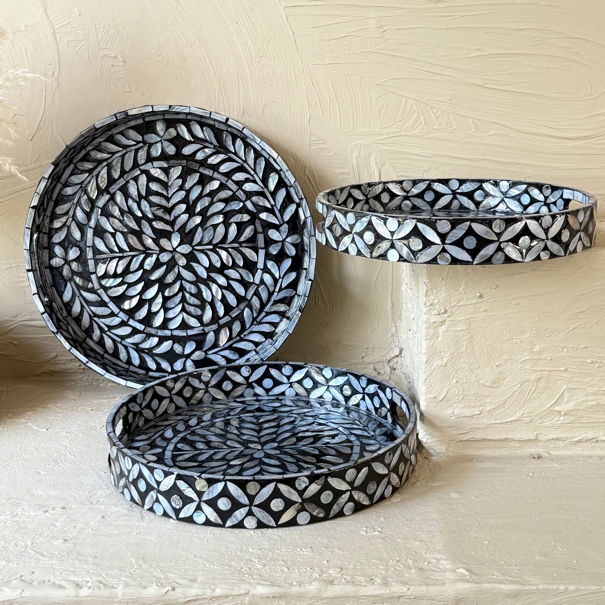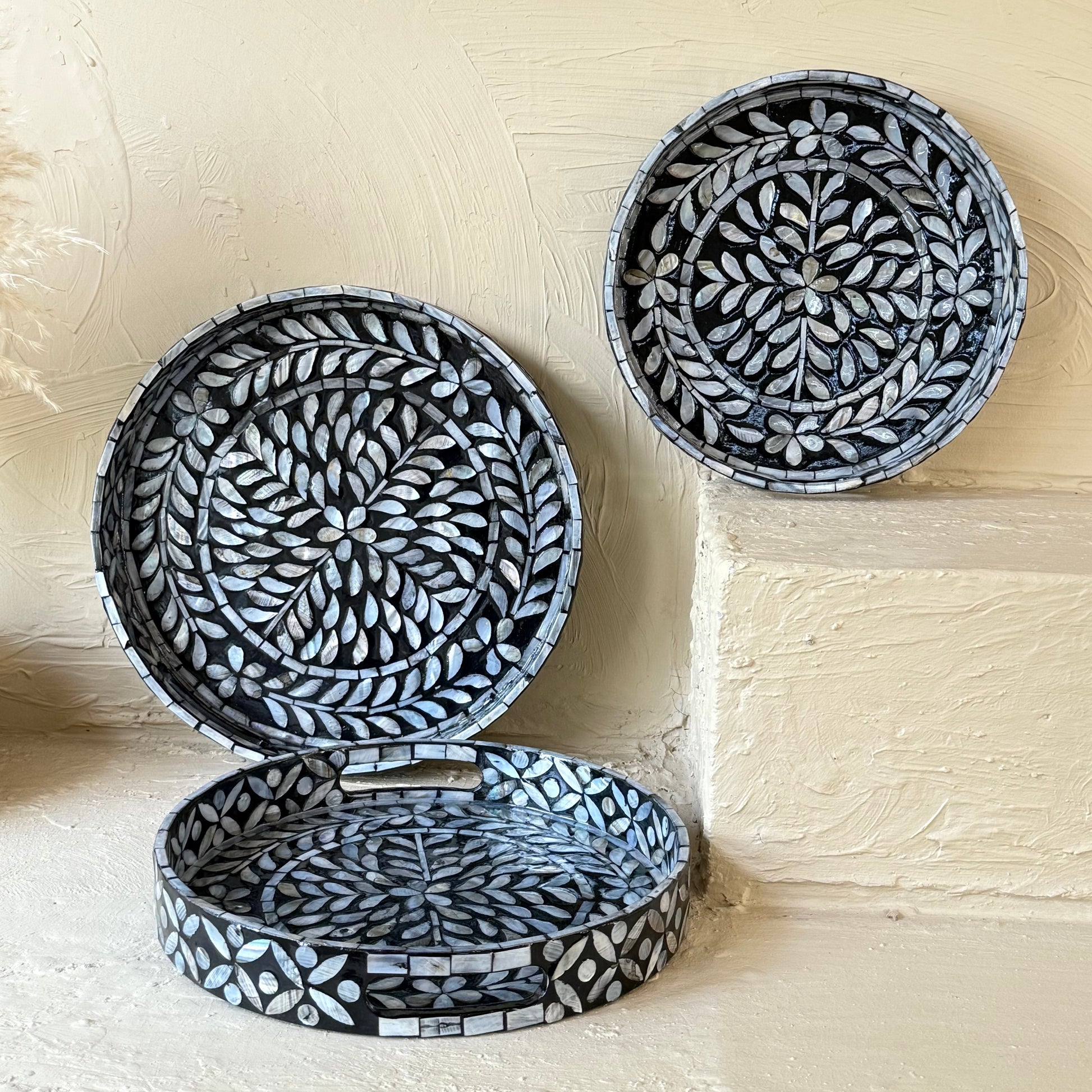 SVR Sedef 3 Lü Yuvarlak Tepsi Seti KOD:61874 Siyah