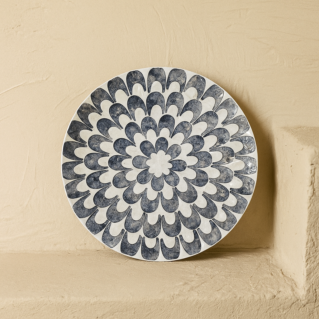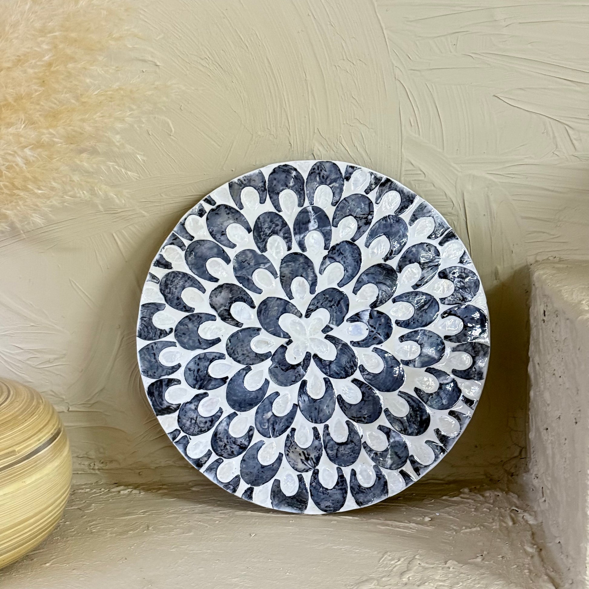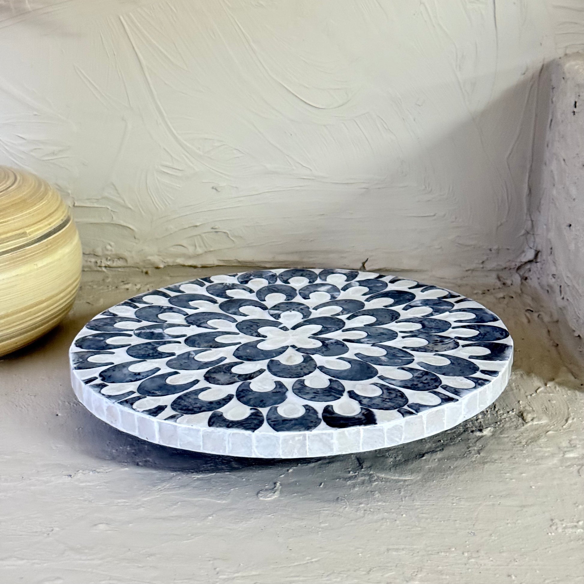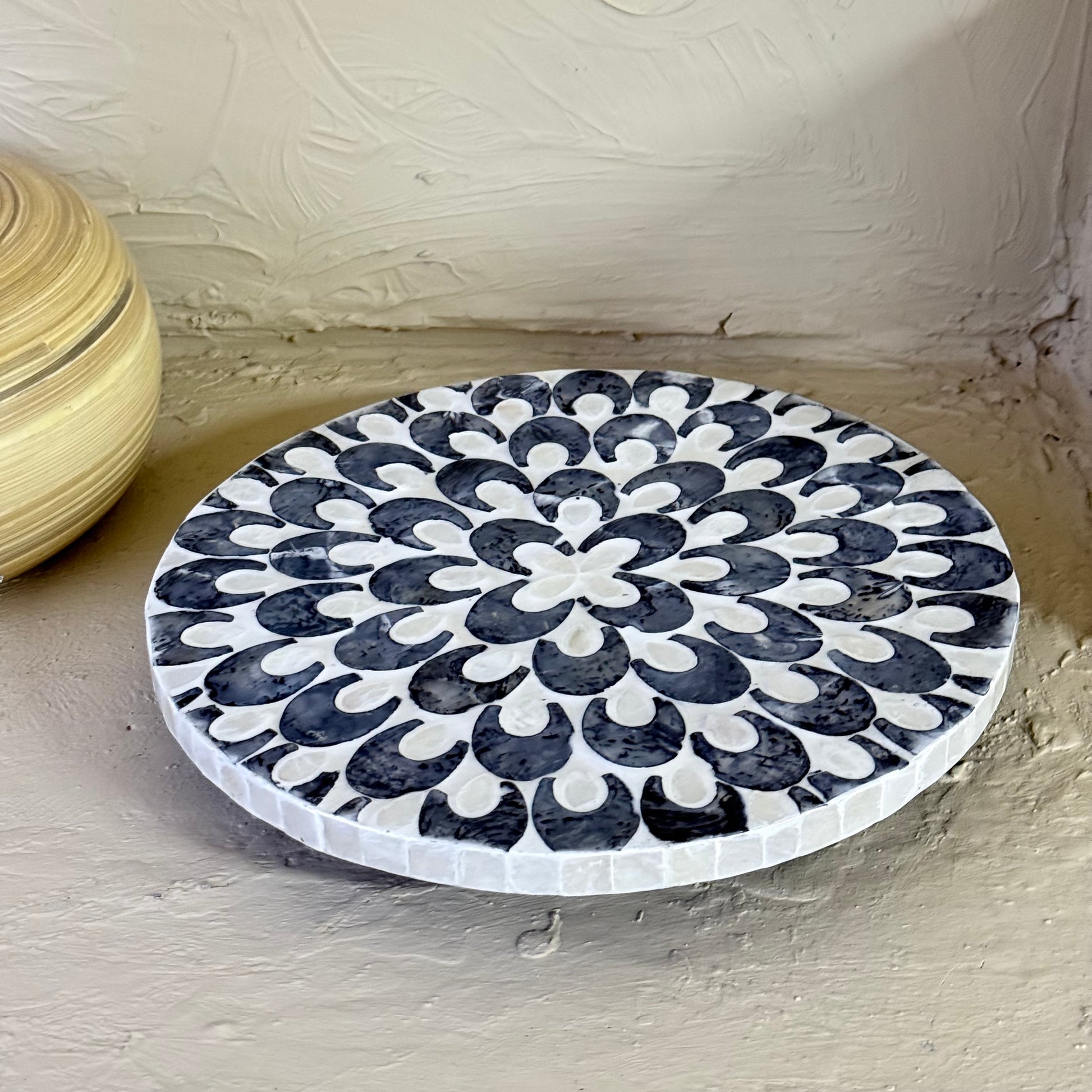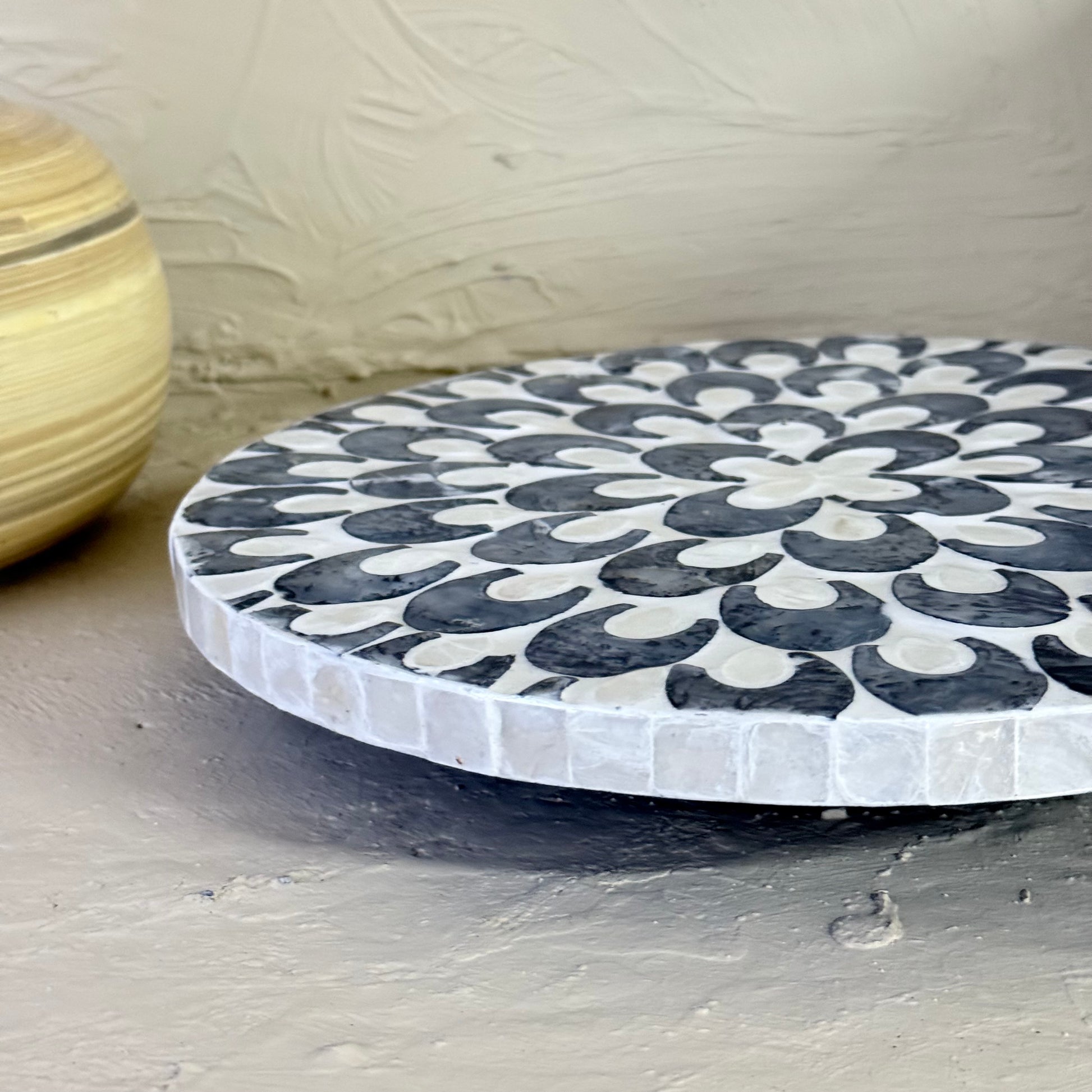 SVR Sedef Dönen Yuvarlak Sunumluk KOD:6183 Siyah-Çiçek