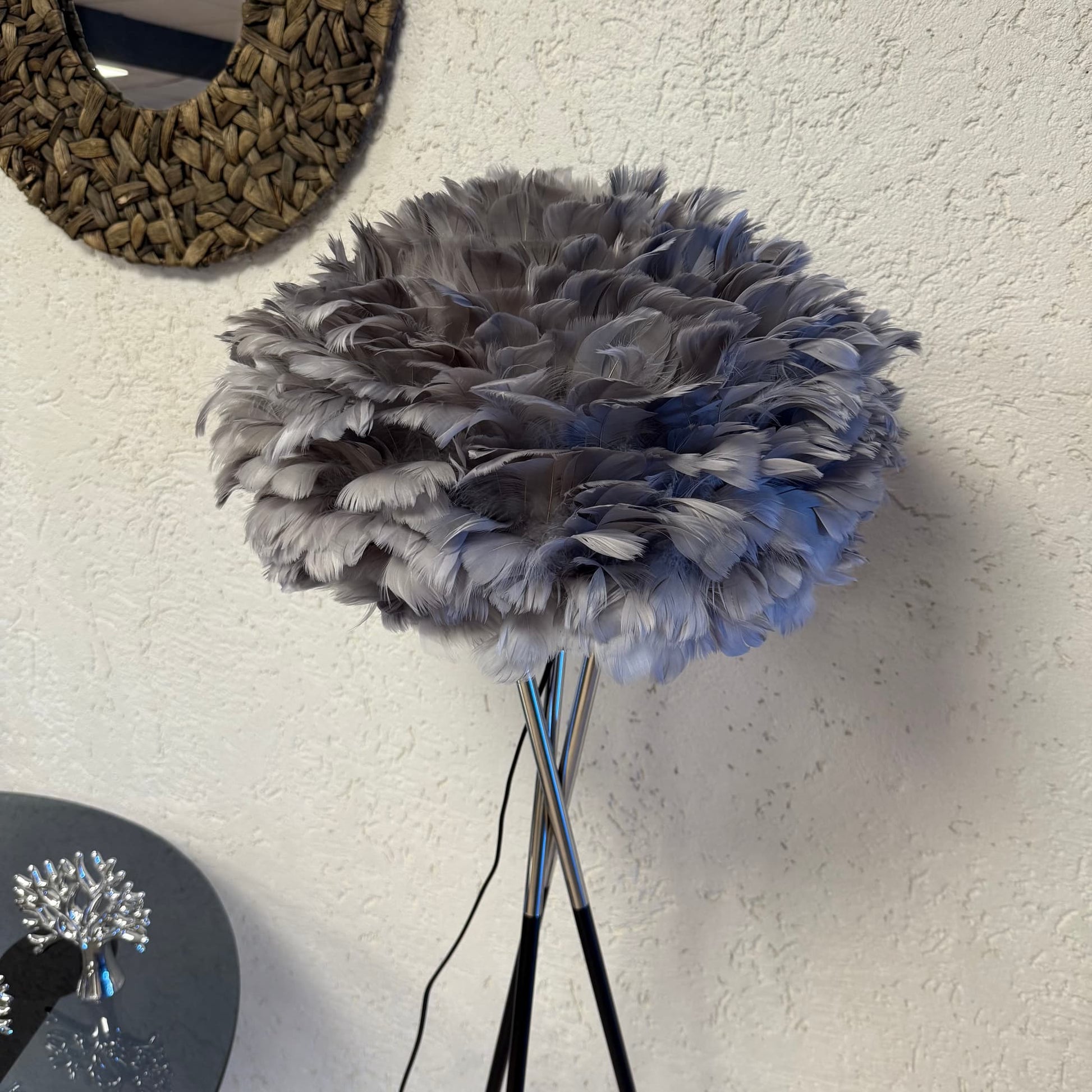 Talia Metal Ayaklı Tüy Lambader Gri-Gümüş 1,55 cm