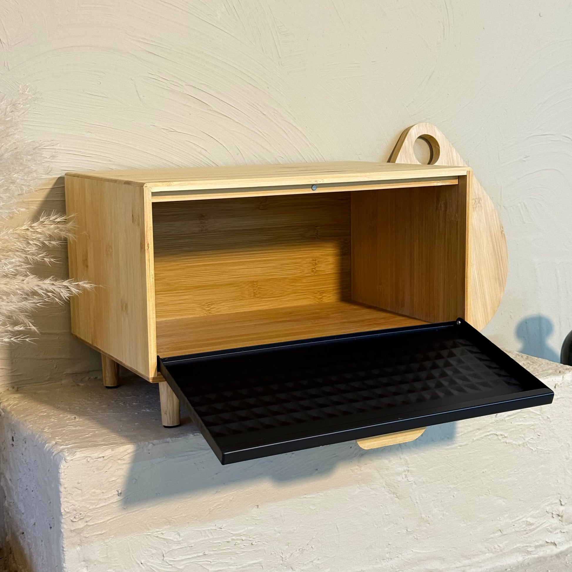 Thalia Bambu Ayaklı Ekmeklik Kutusu Siyah