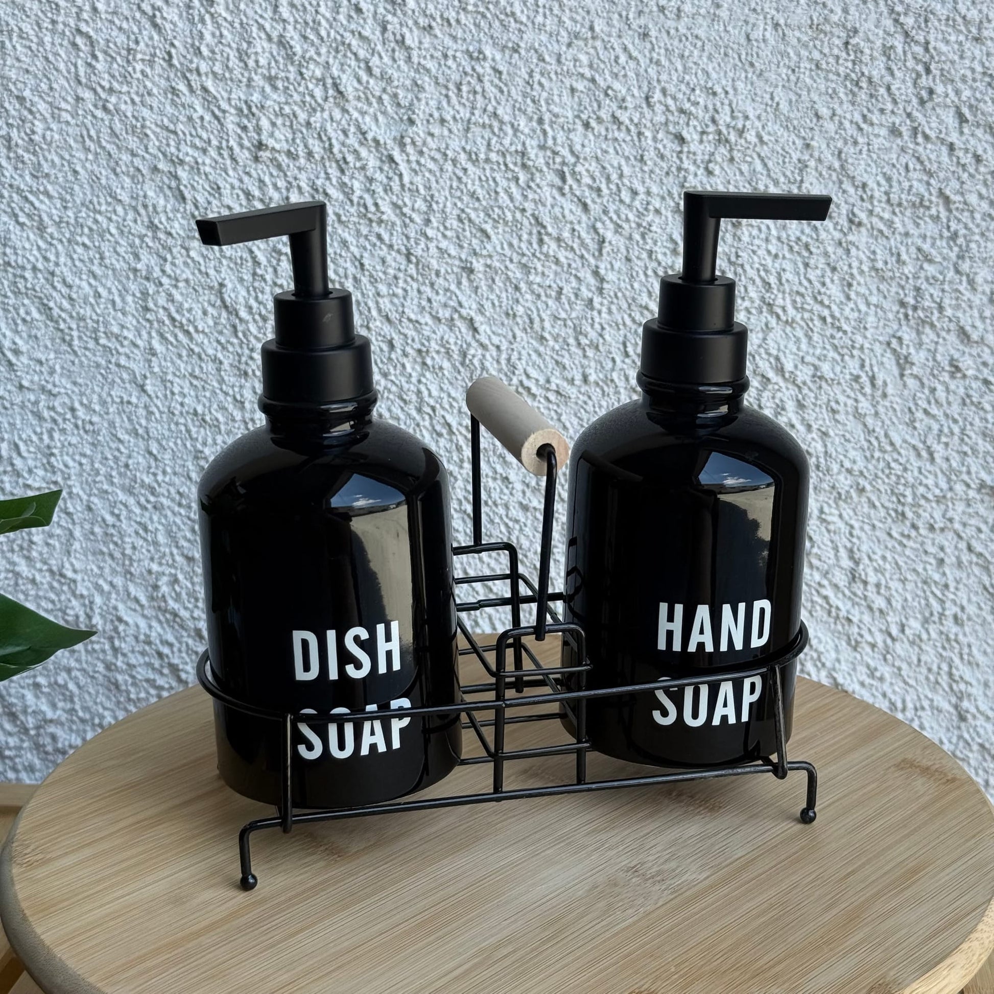 Tonish Metal Standlı Poeselen Sıvı Sabunluk Seti Siyah