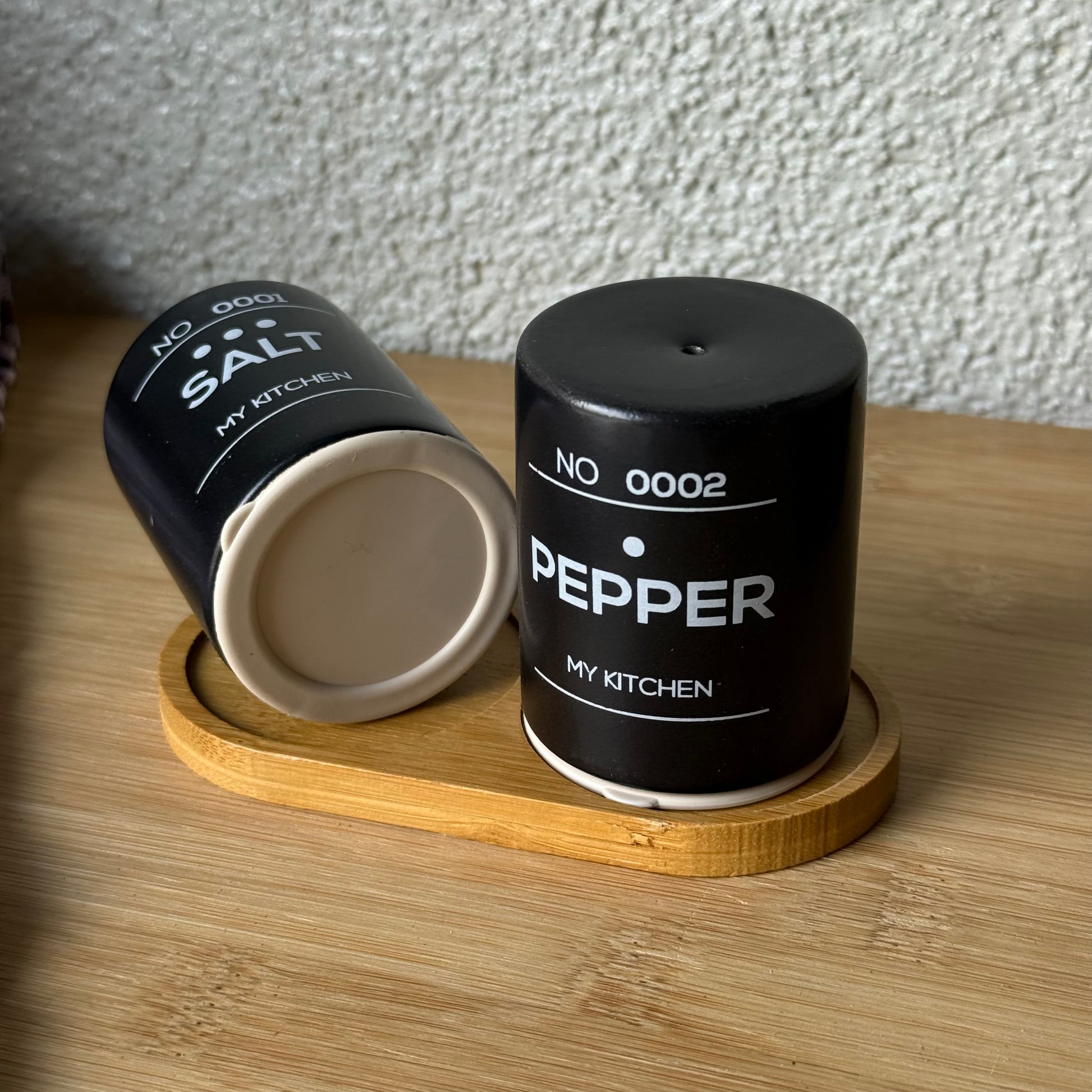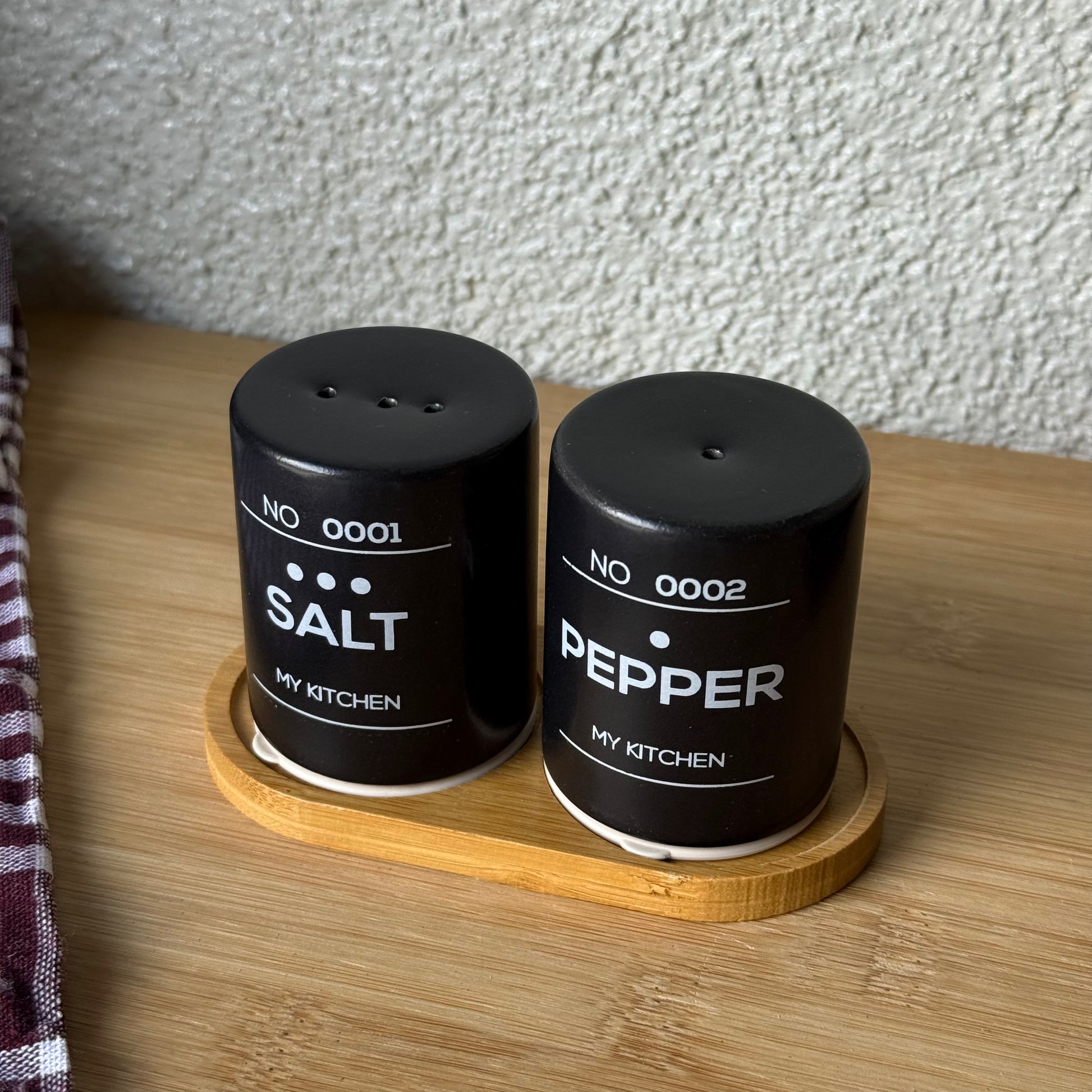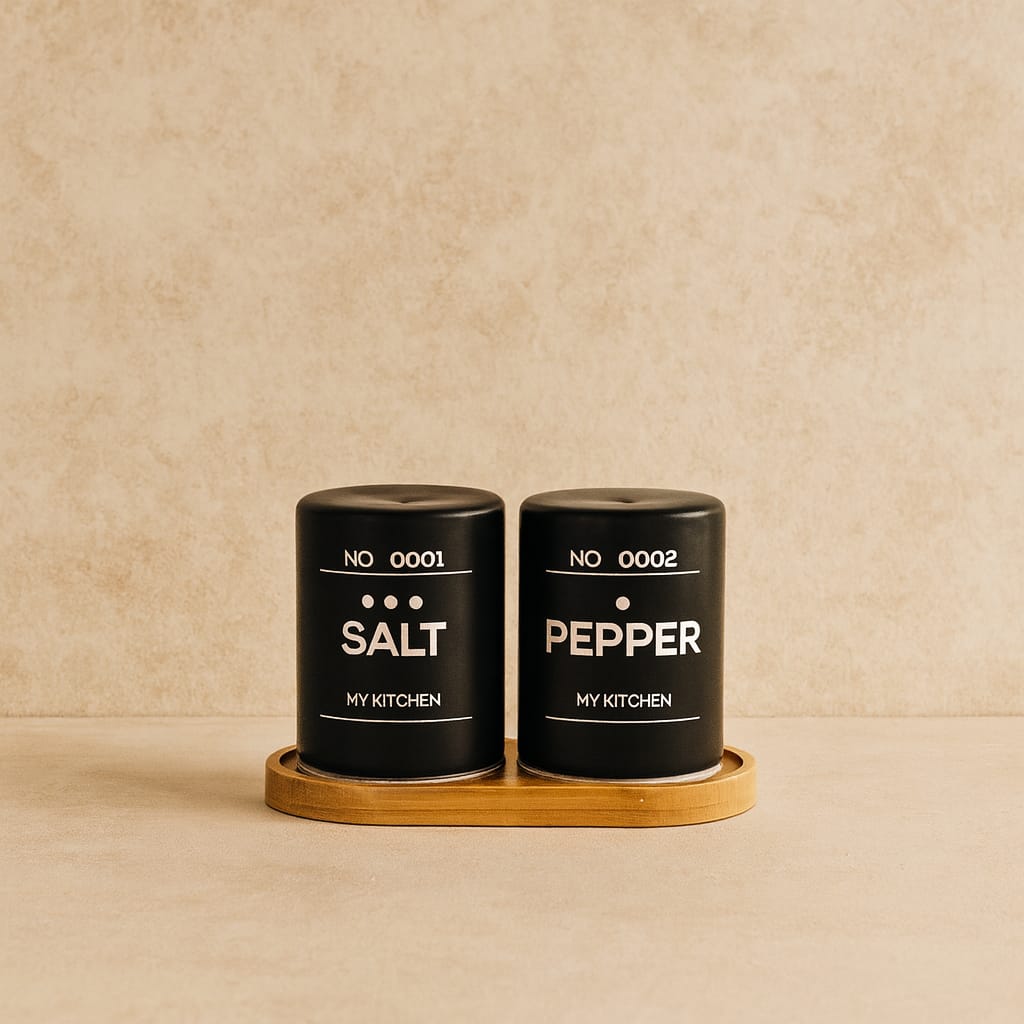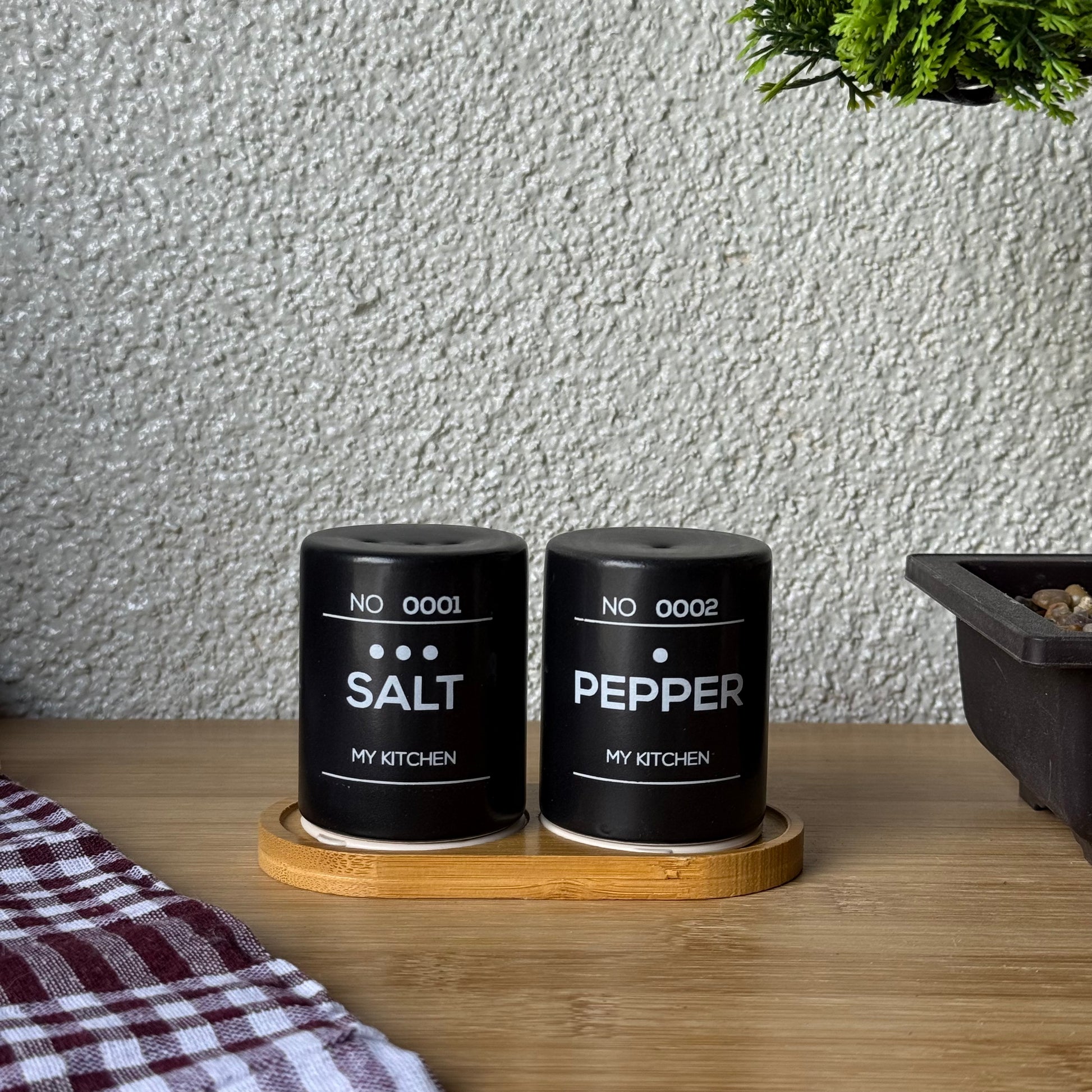 Tutku Bambu Standlı İkili Tuzluk Seti Siyah
