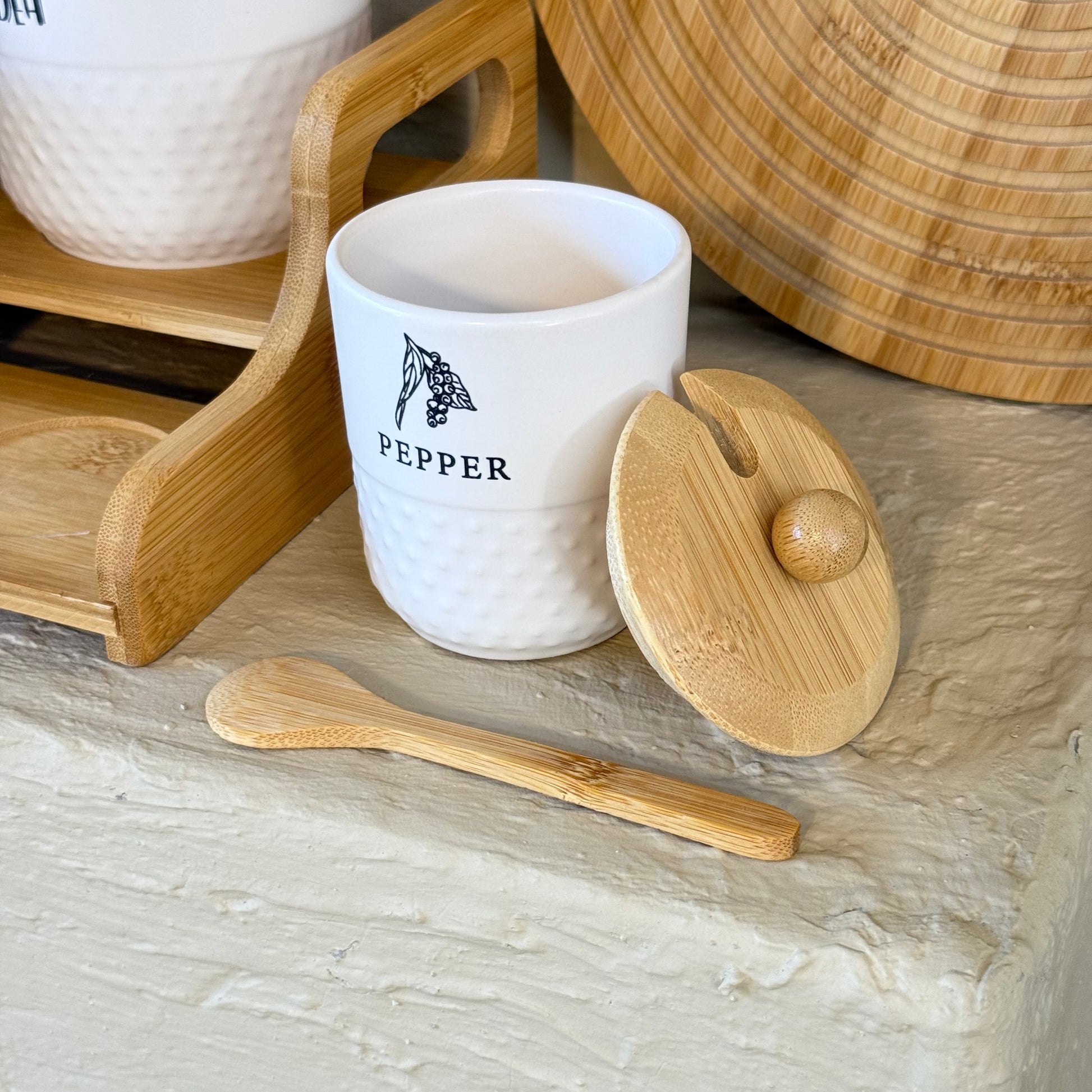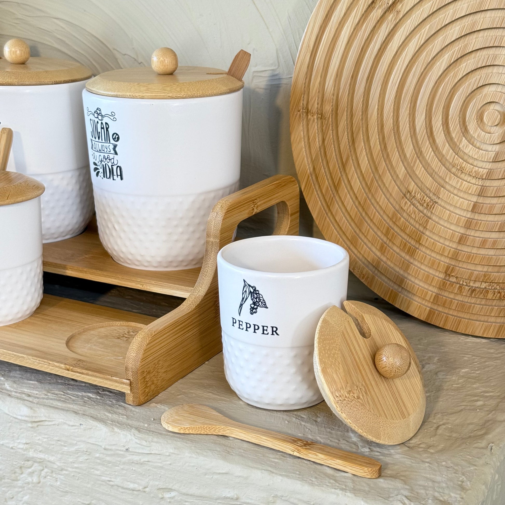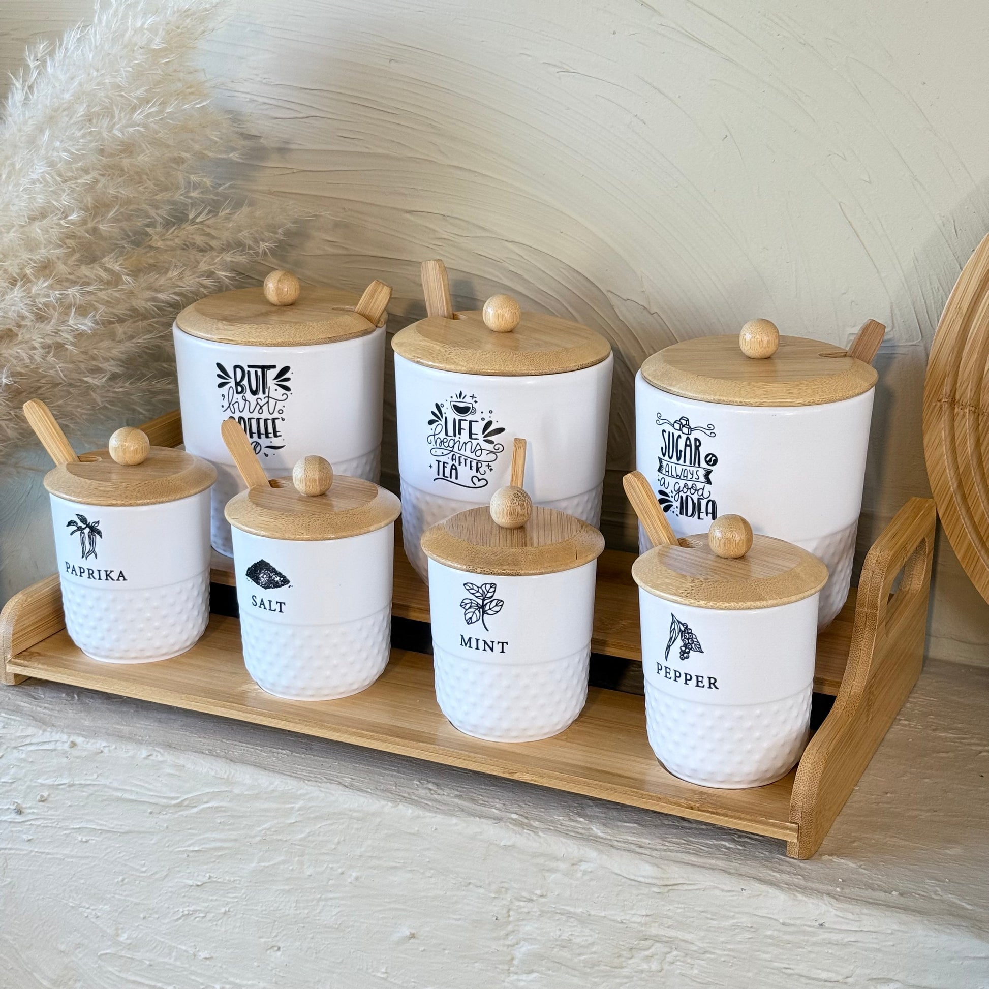 Tutku Bambu Standlı Kaşıklı 7 Li Baharatlık Seti KOD:TT-10