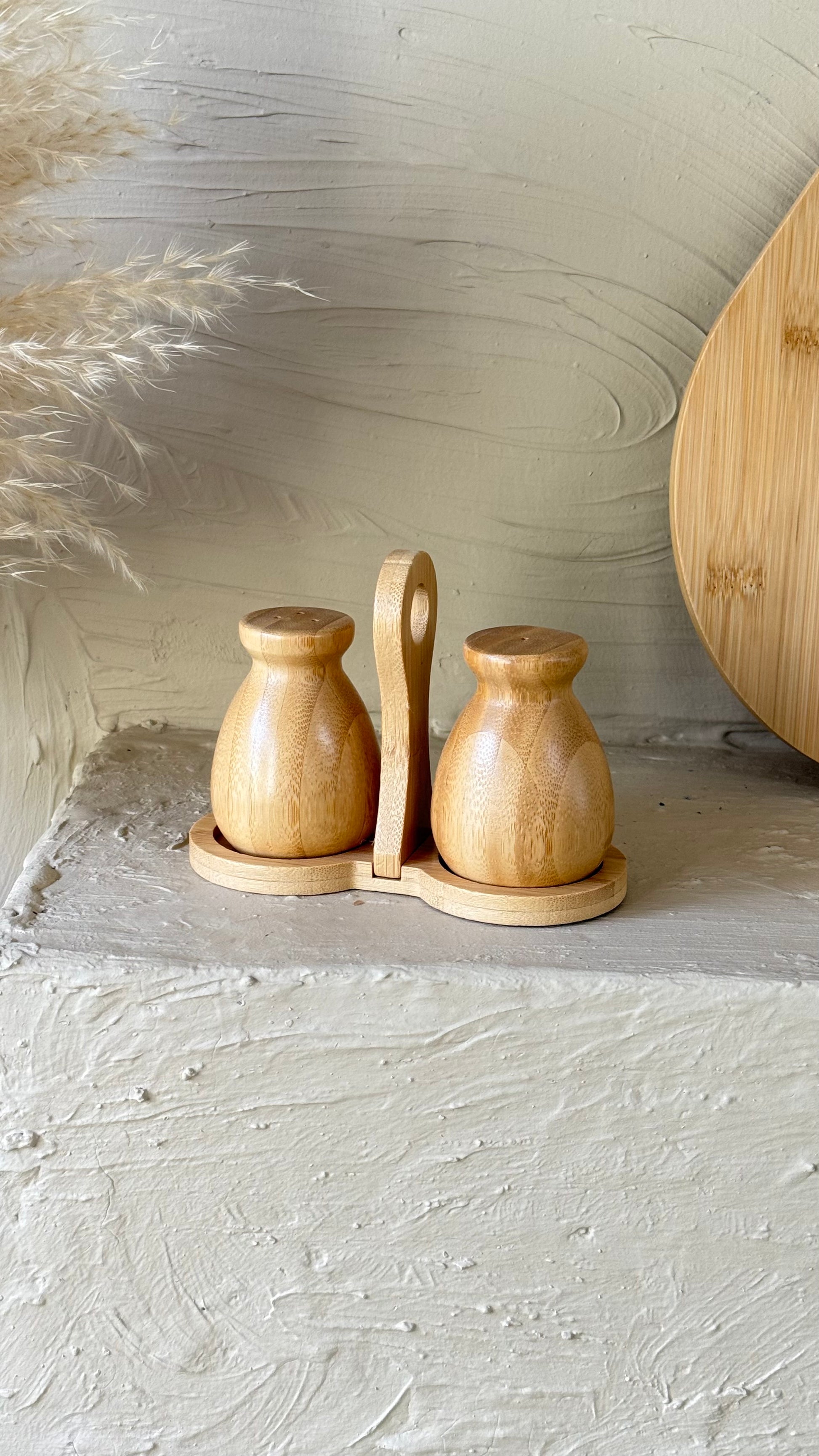 Tutku Bambu Standlı Tuzluk Biberlik Seti İkili