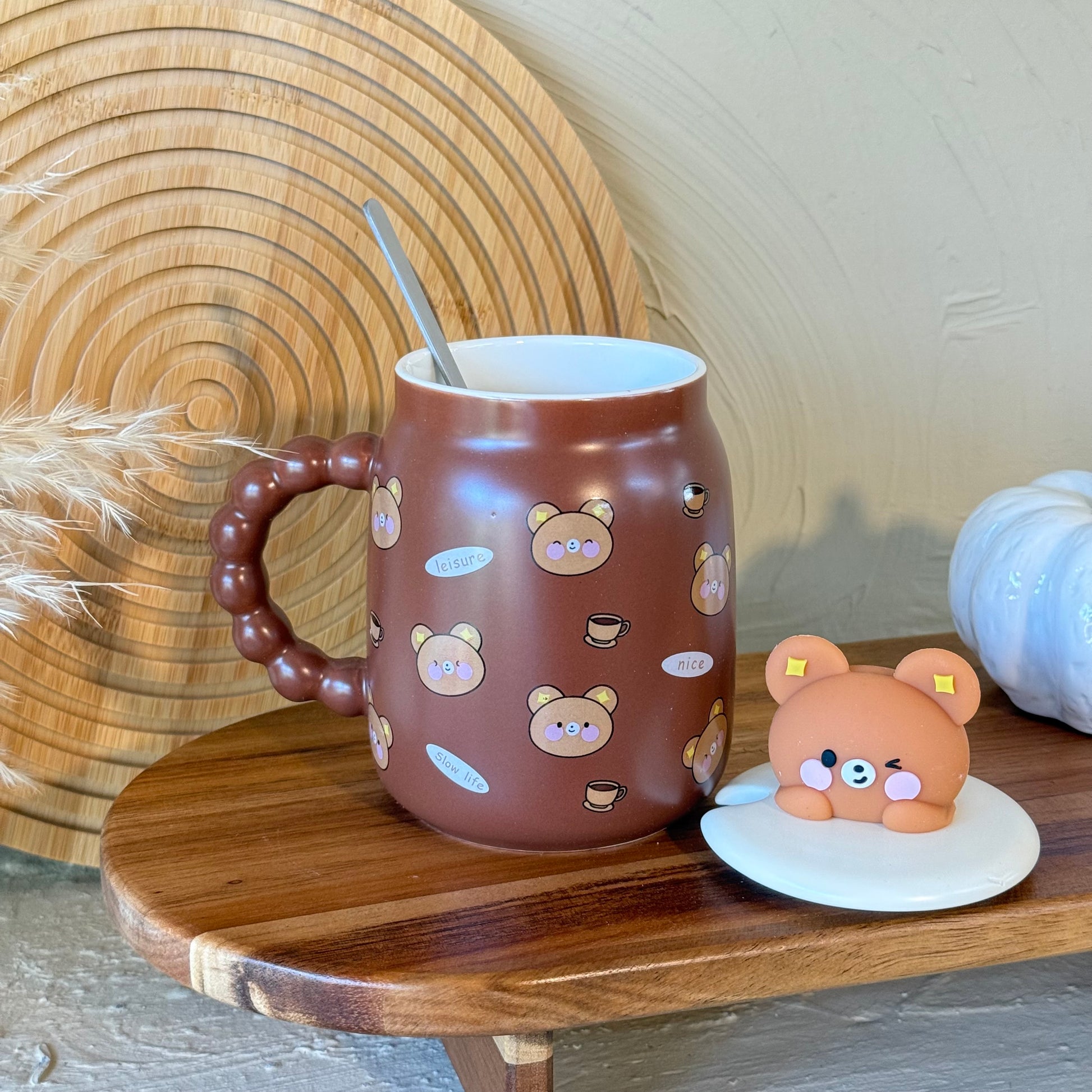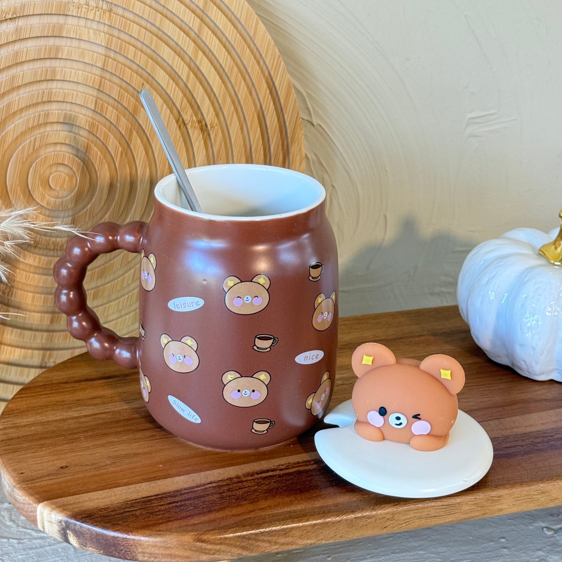 Tutku Bear Kapaklı Porselen Kupa Kahve Rengi