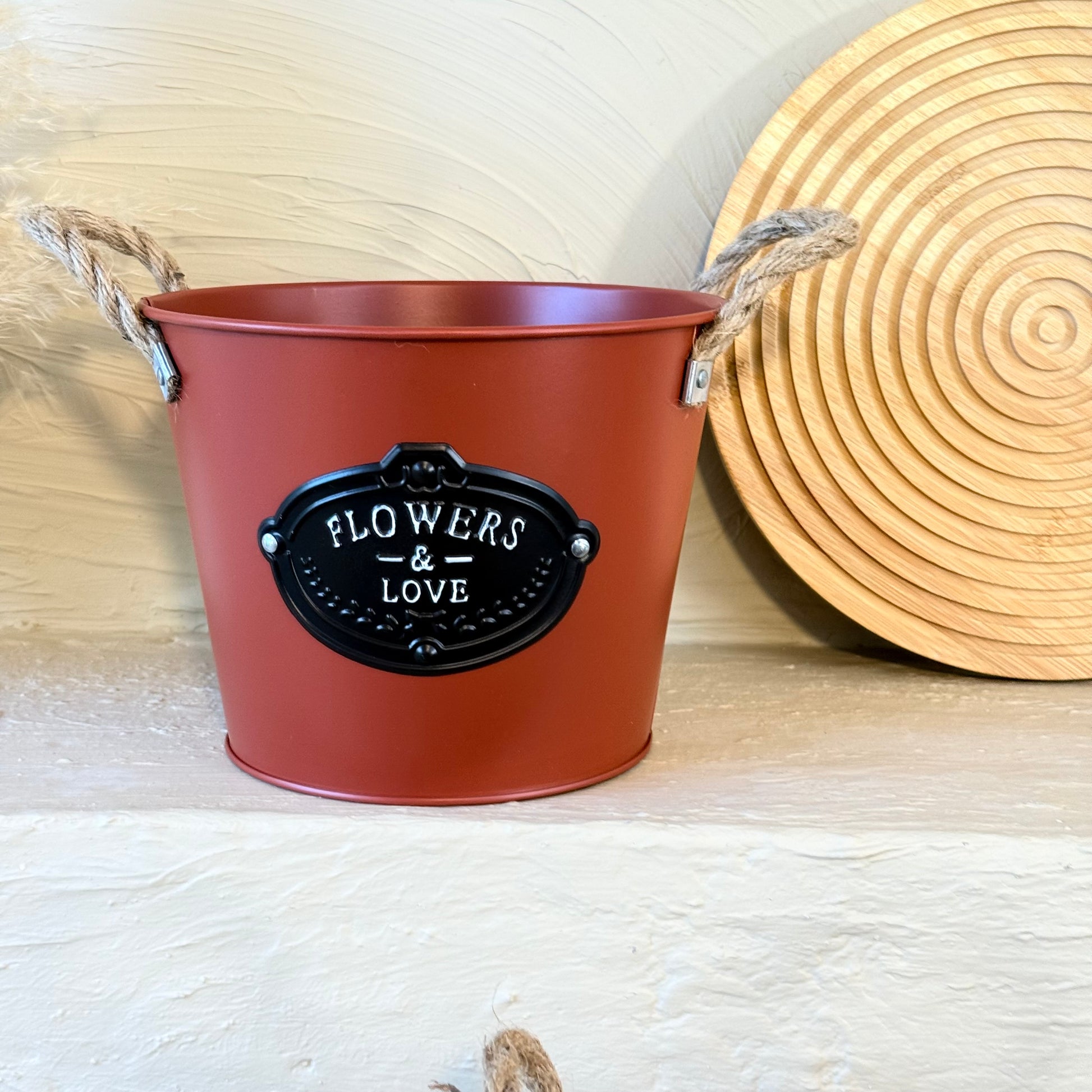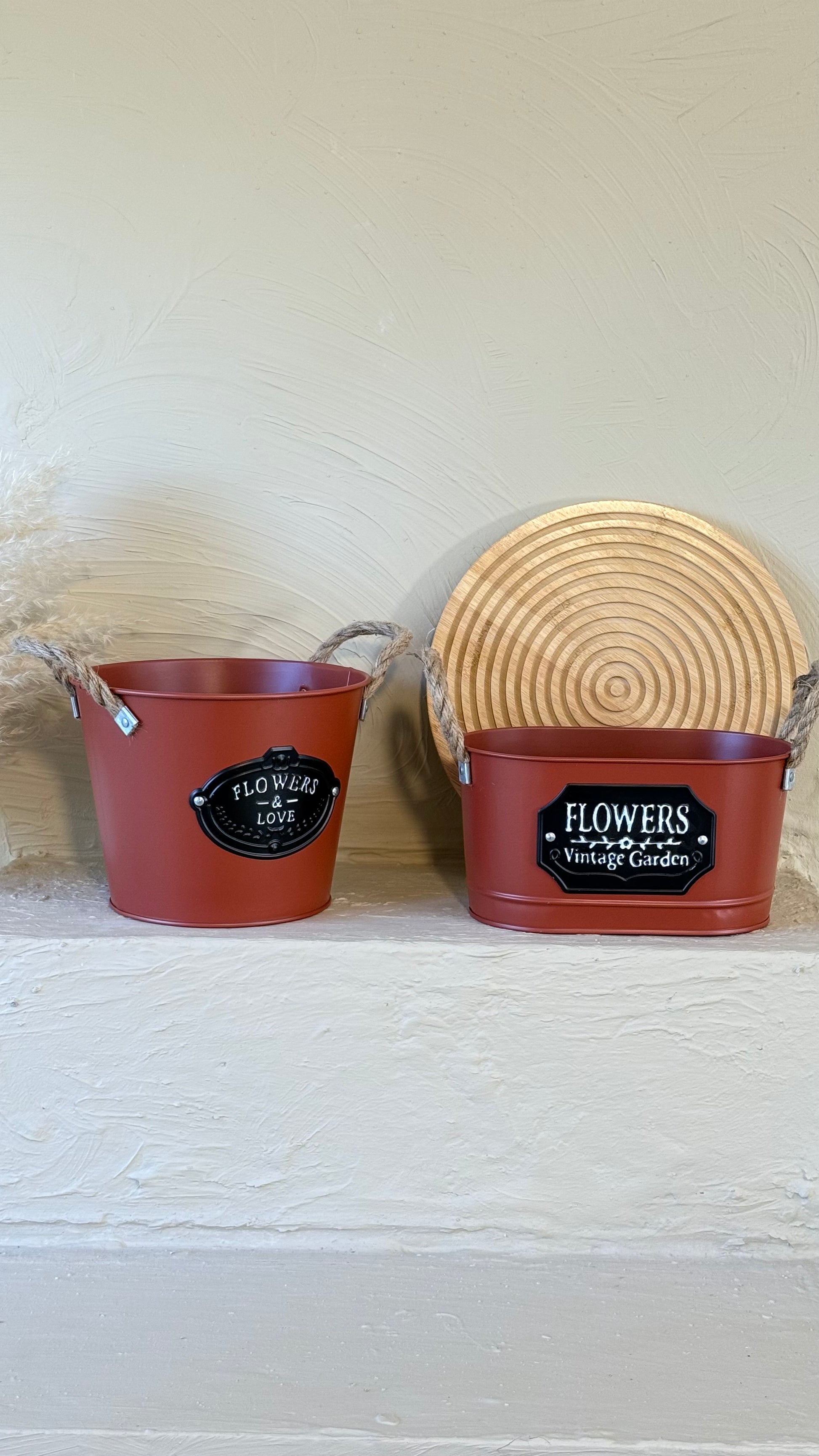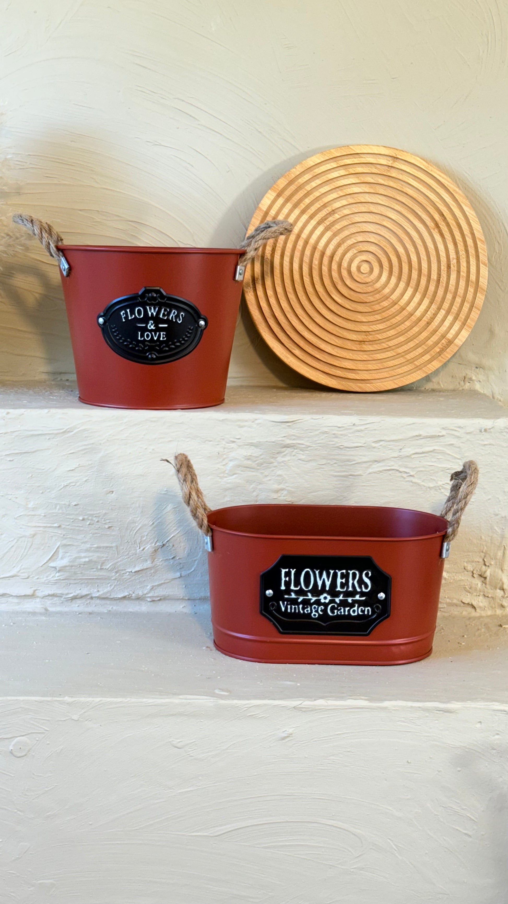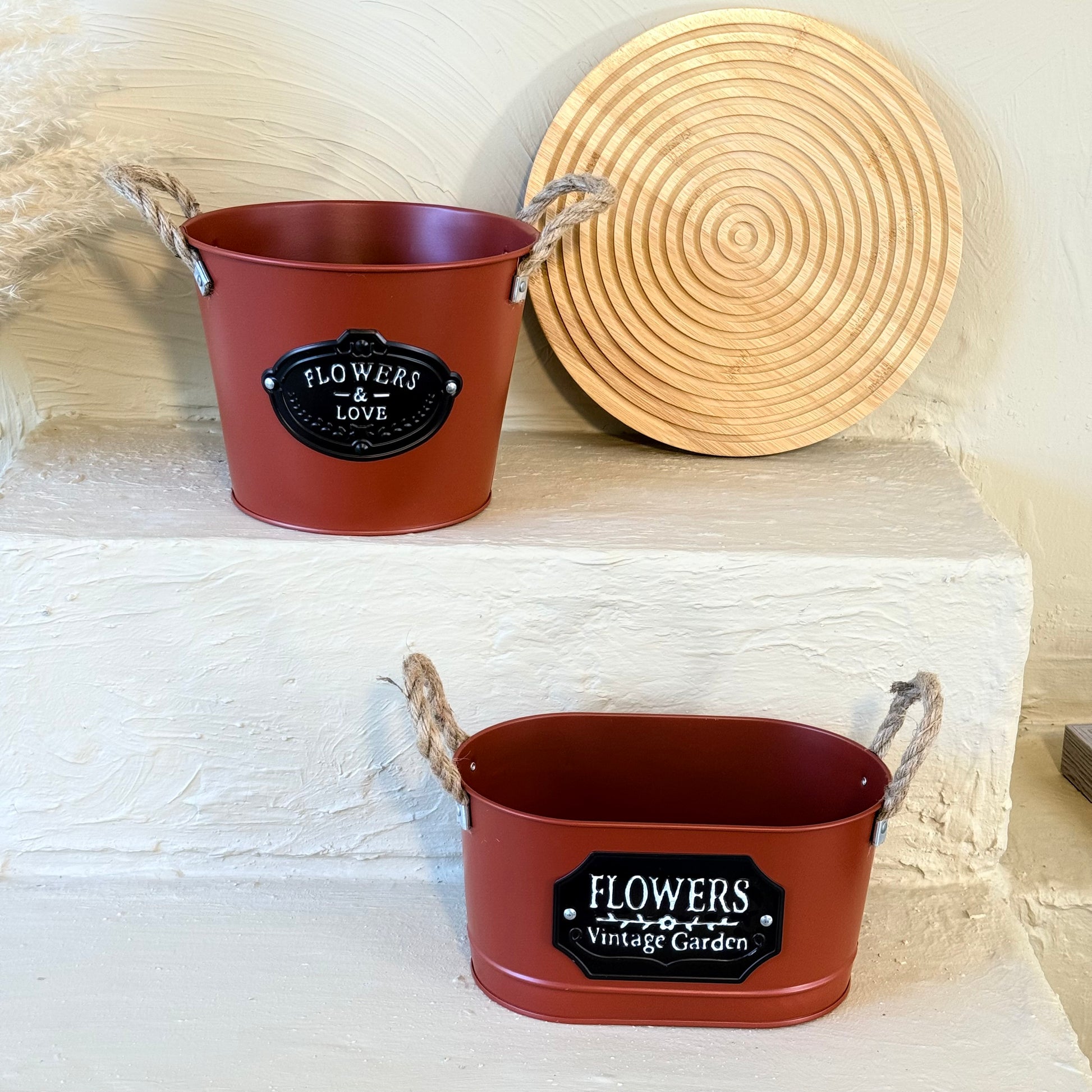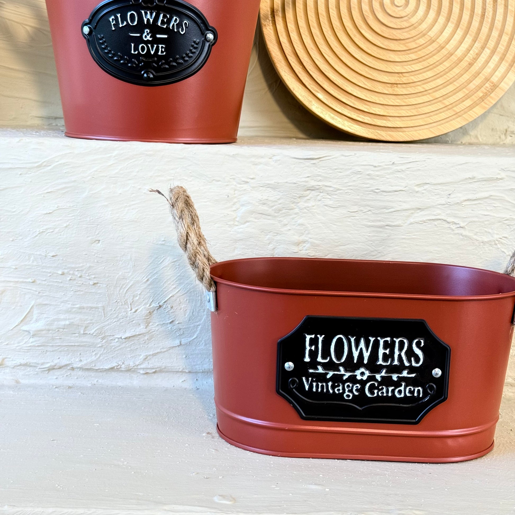 Tutku Halat Kulplu Metal İki Boy Vintage Saksı Bordo KOD:3455-54