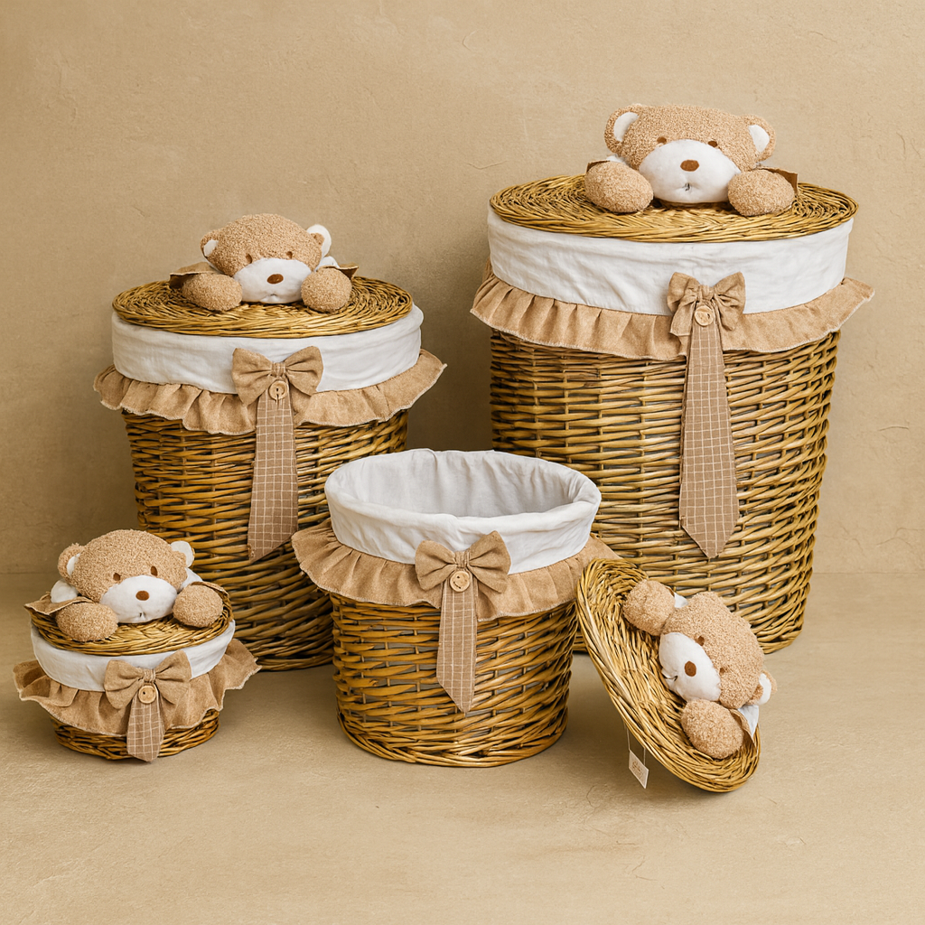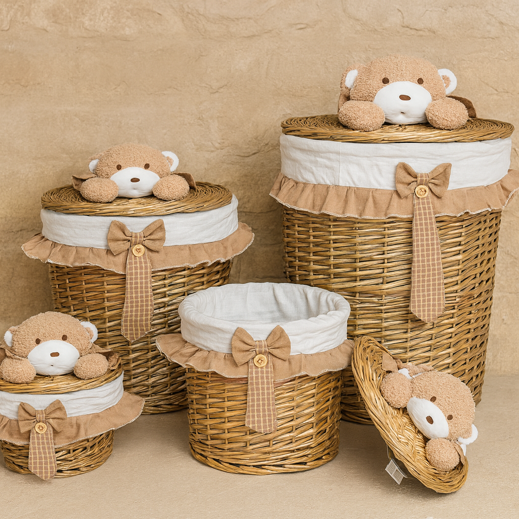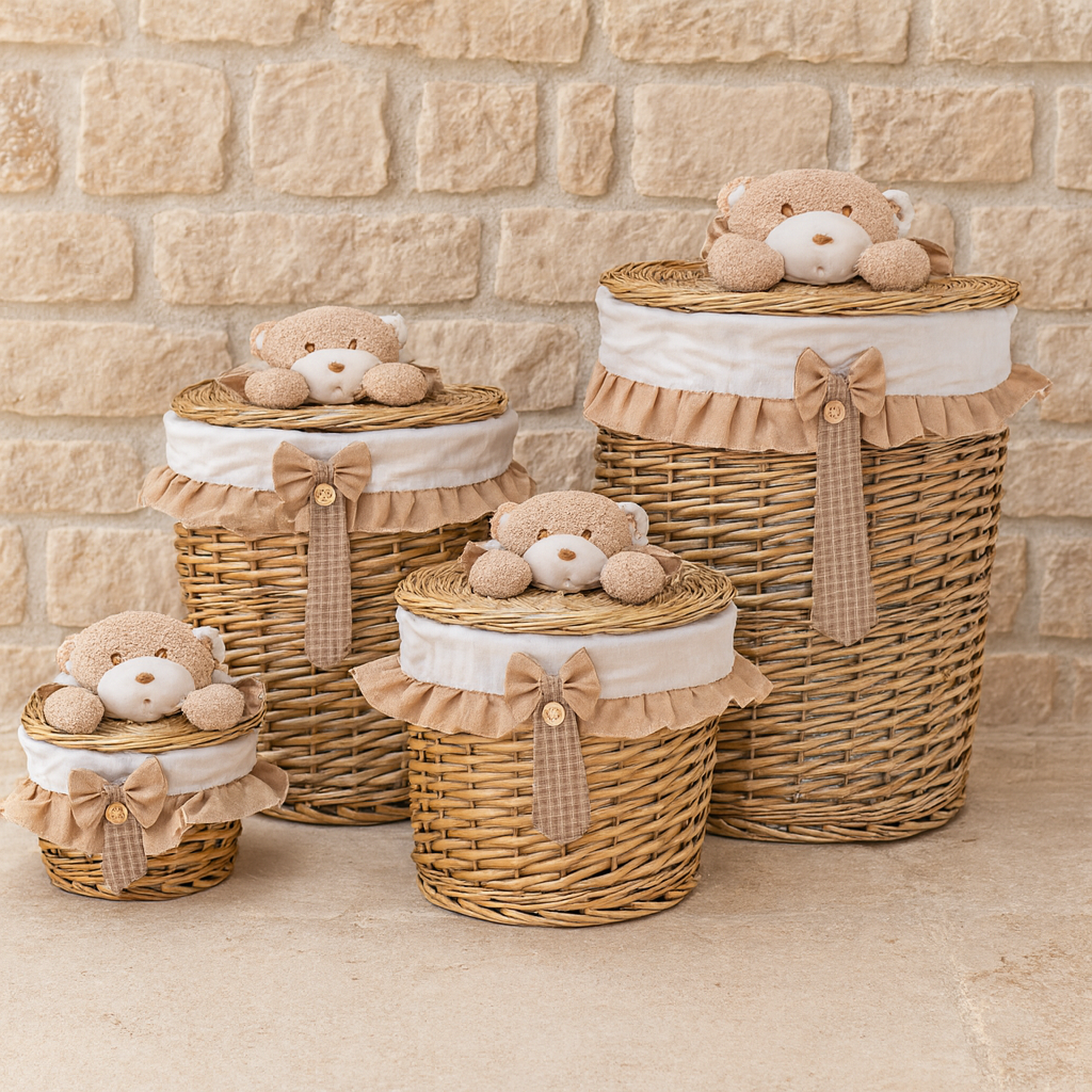 Tutku Hasır Yuvarlak Bezli 4 Boy Kirli Çamaşır Sepet Seri