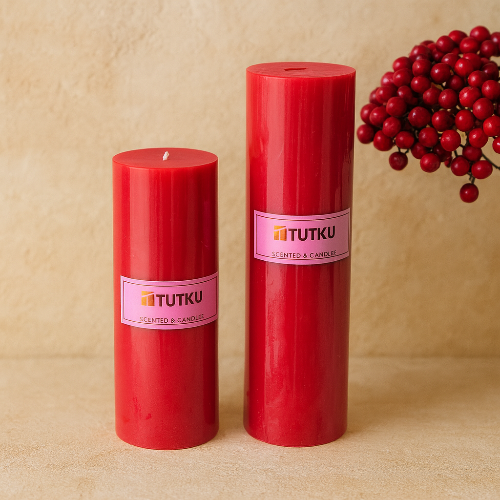 Tutku İki Boy Silindir Mum Seti Kırmızı