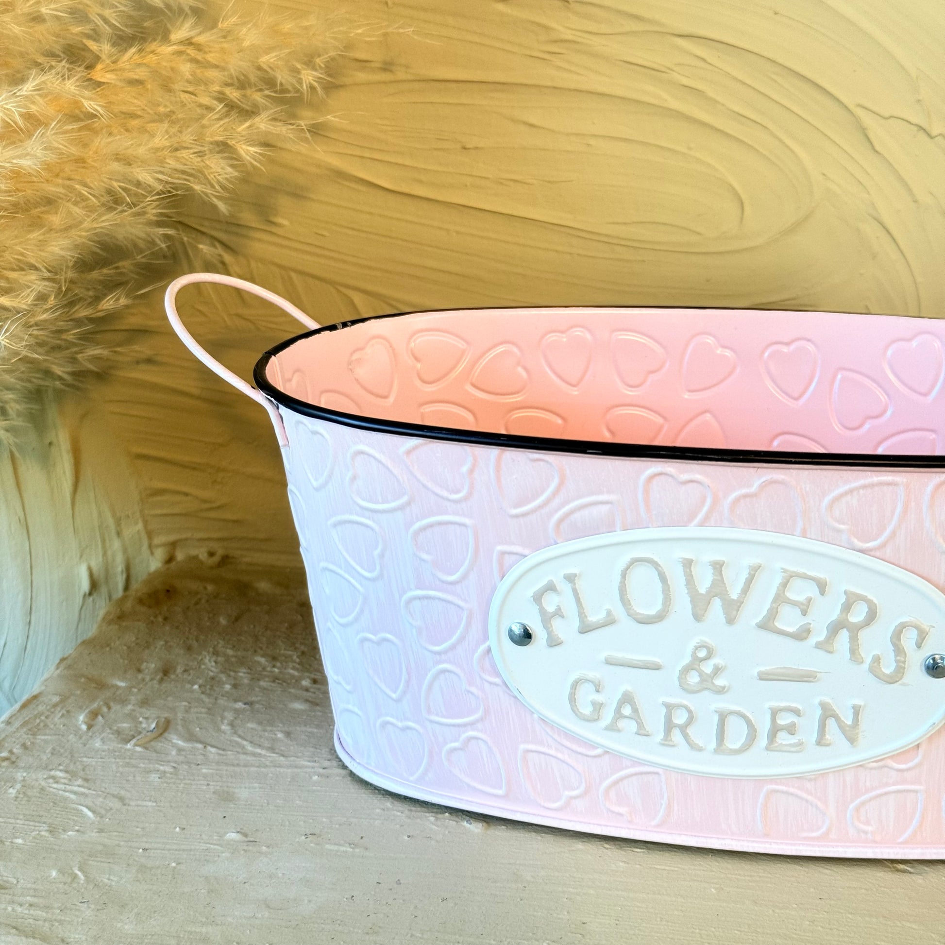 Tutku Vintage Oval Metal Kulplu Saksı Pembe KOD:3458