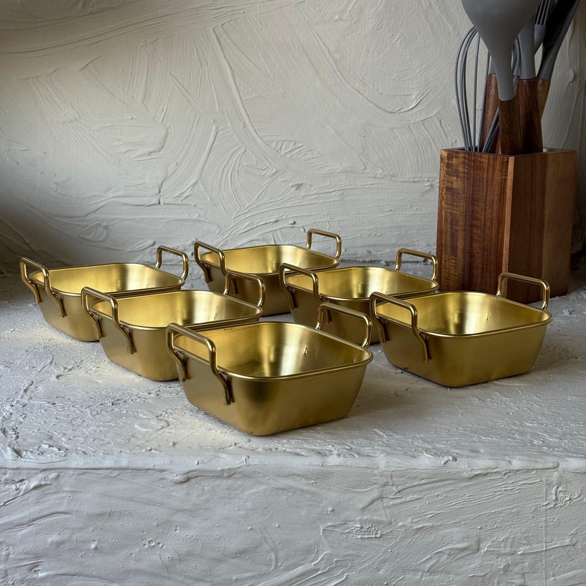 Vadi Metal Kare Tutmalı Gold Kase Seti 6 Adet KOD:8802