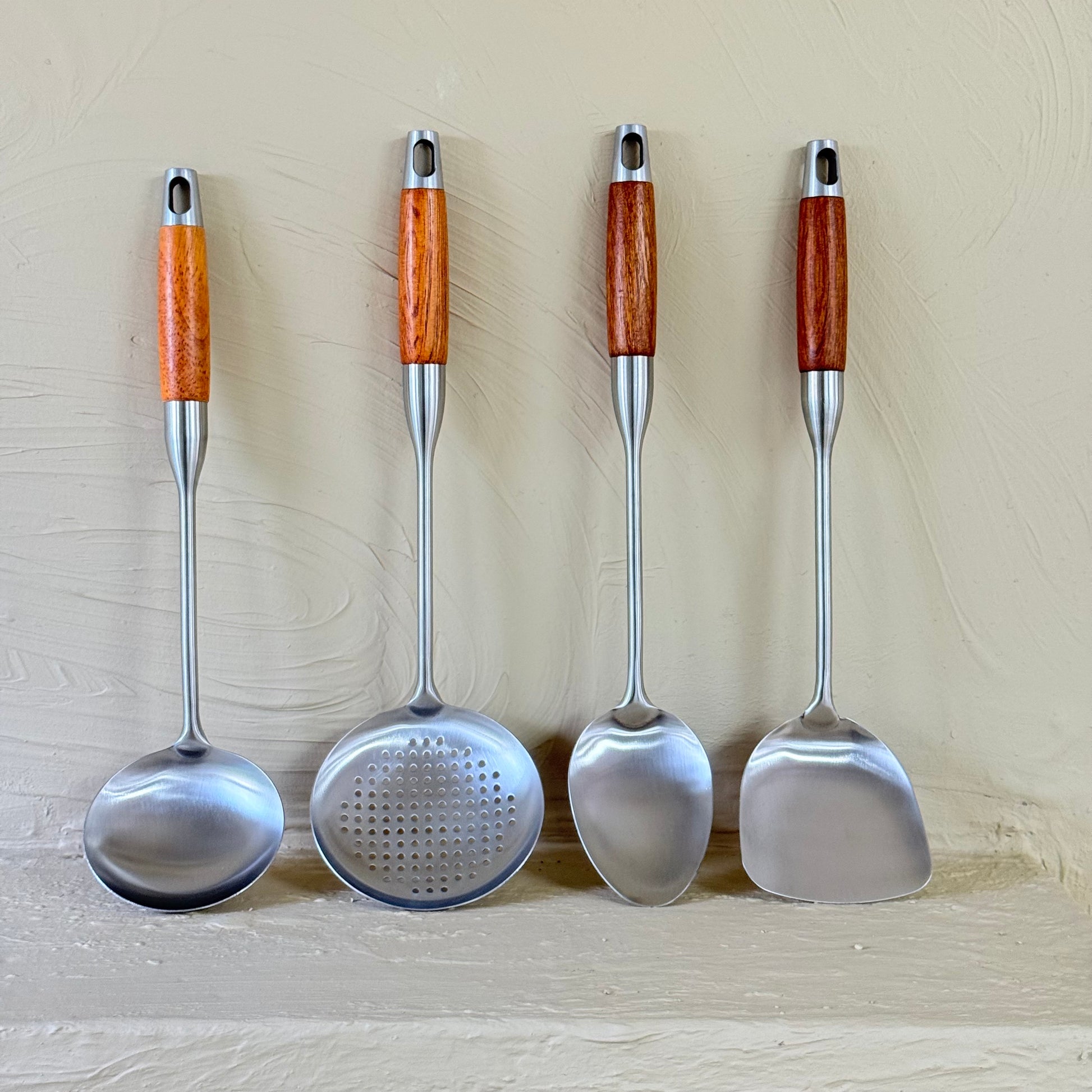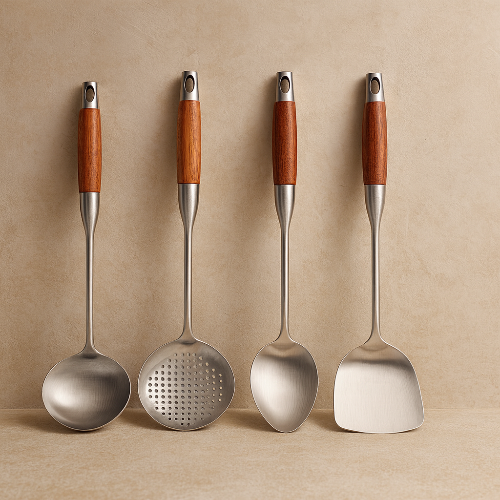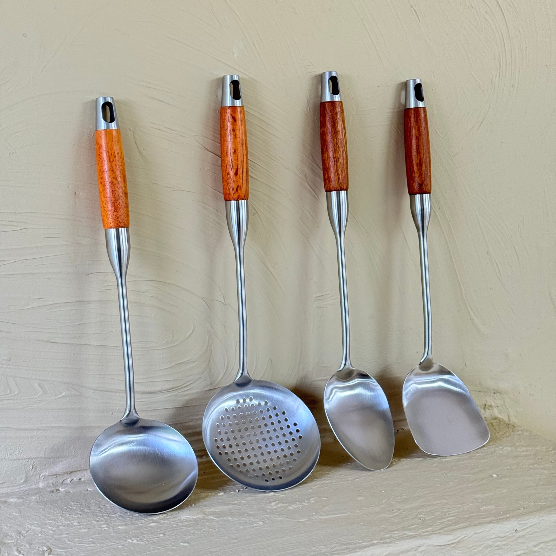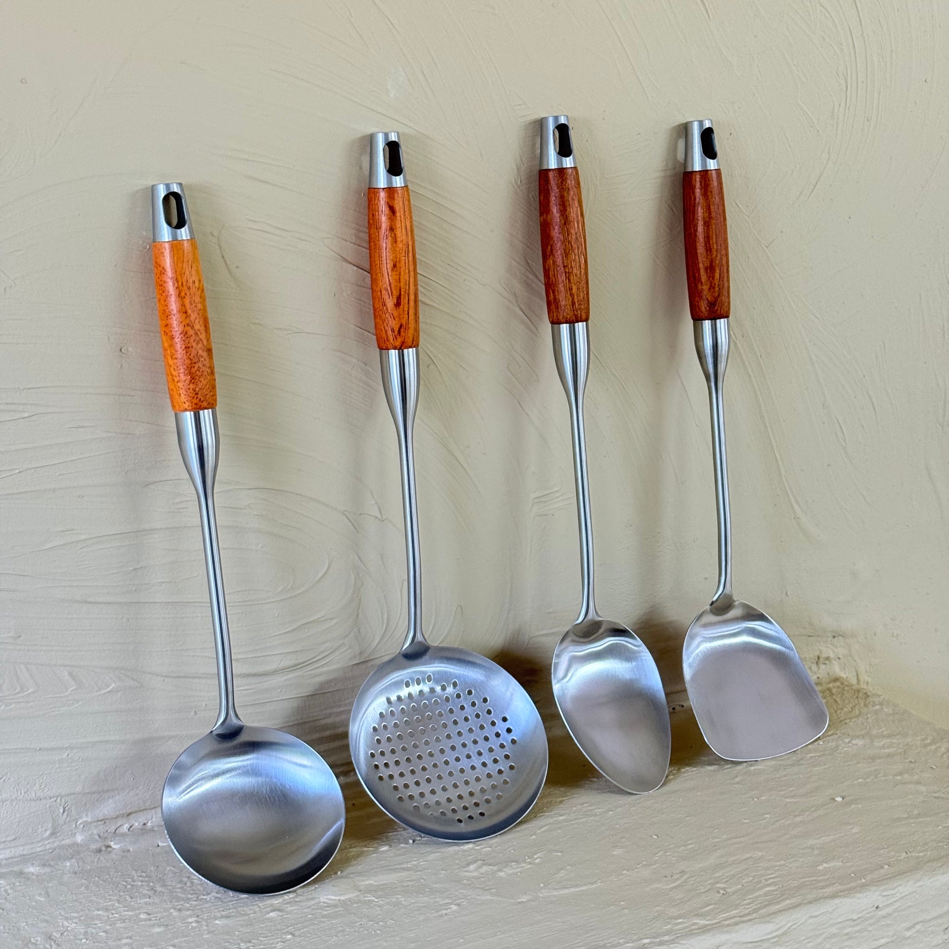 Masterchef 2 Paslanmaz Çelik Akasya Ağacı Tutmalı Mutfak Seti 4 Parça