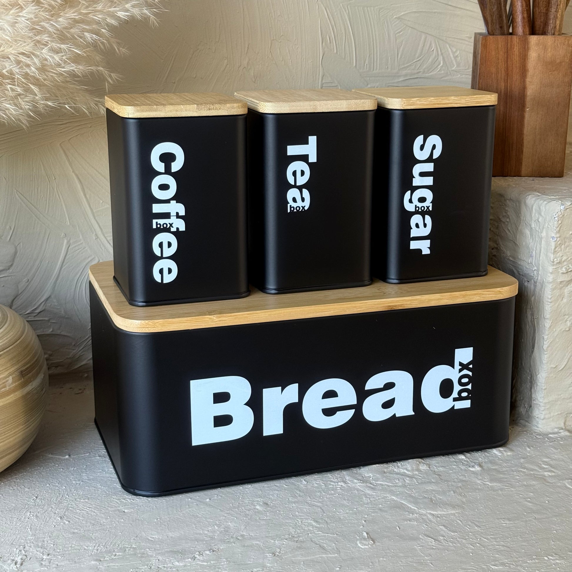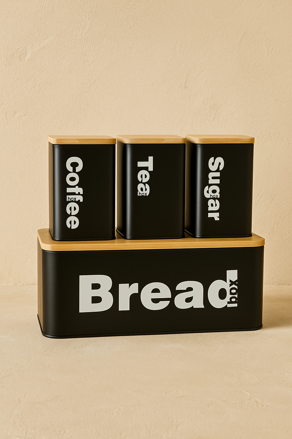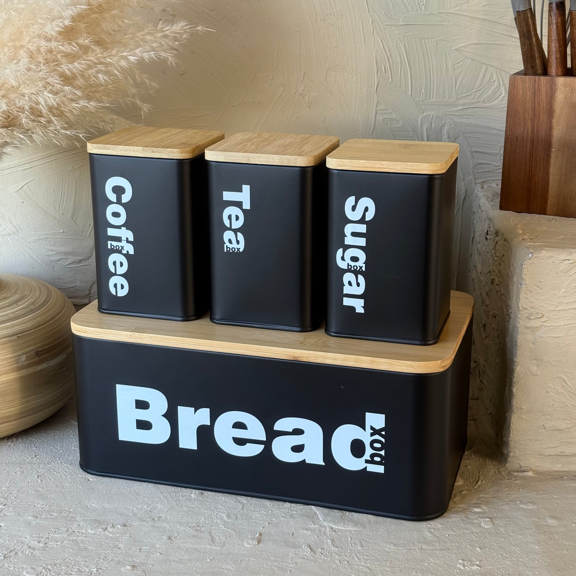 Vintage Bambu Kapaklı Ekmeklik Kavanoz Seti Siyah KOD:345