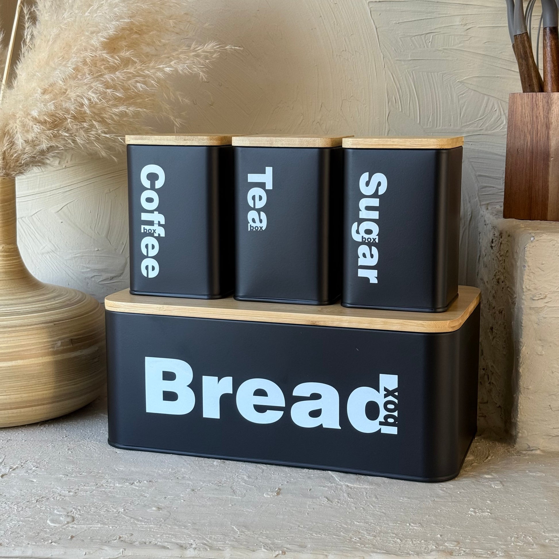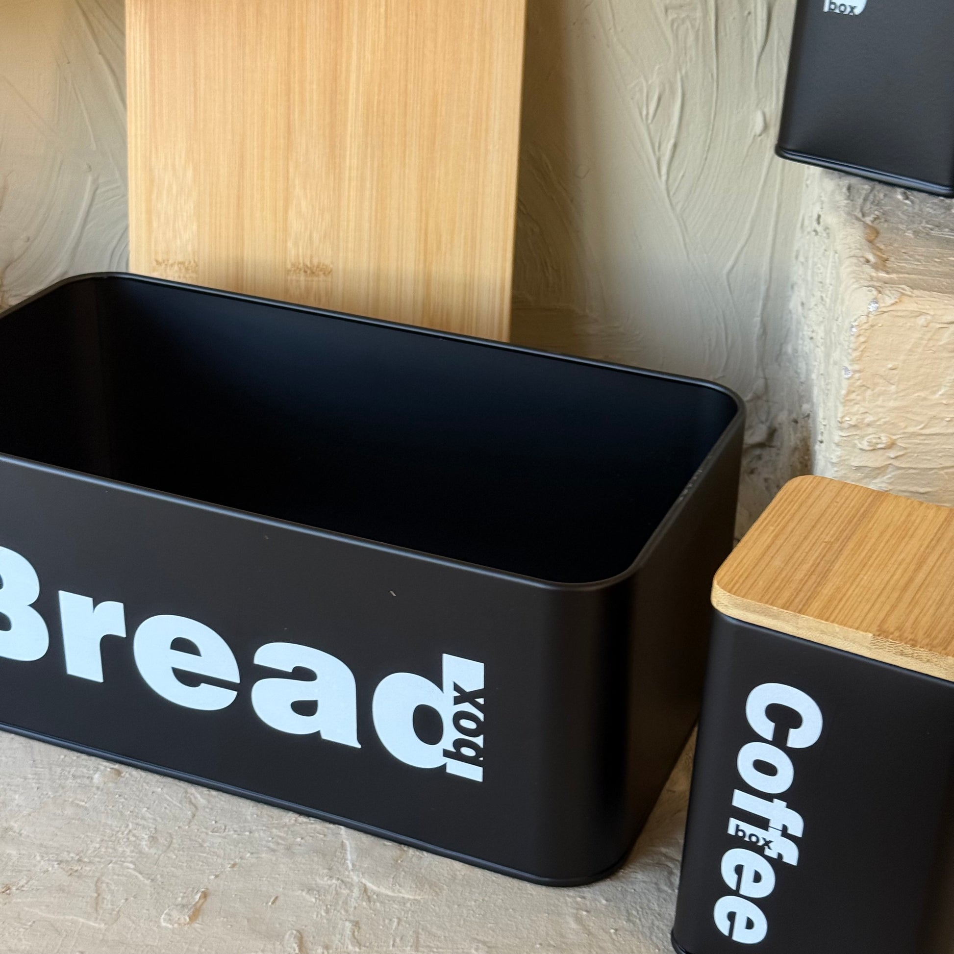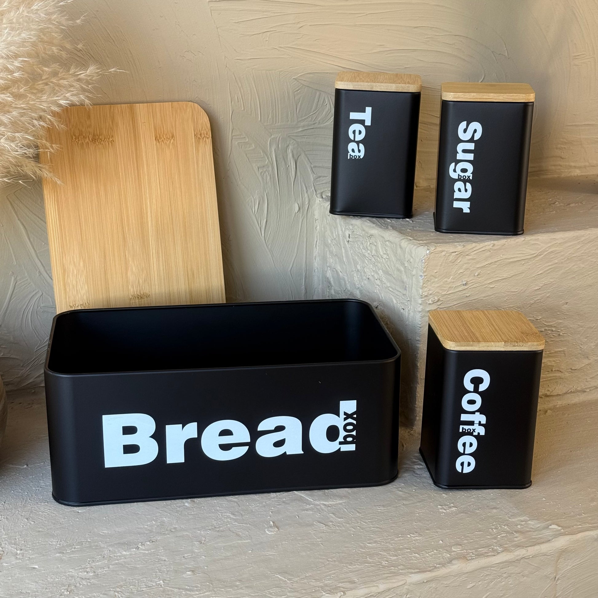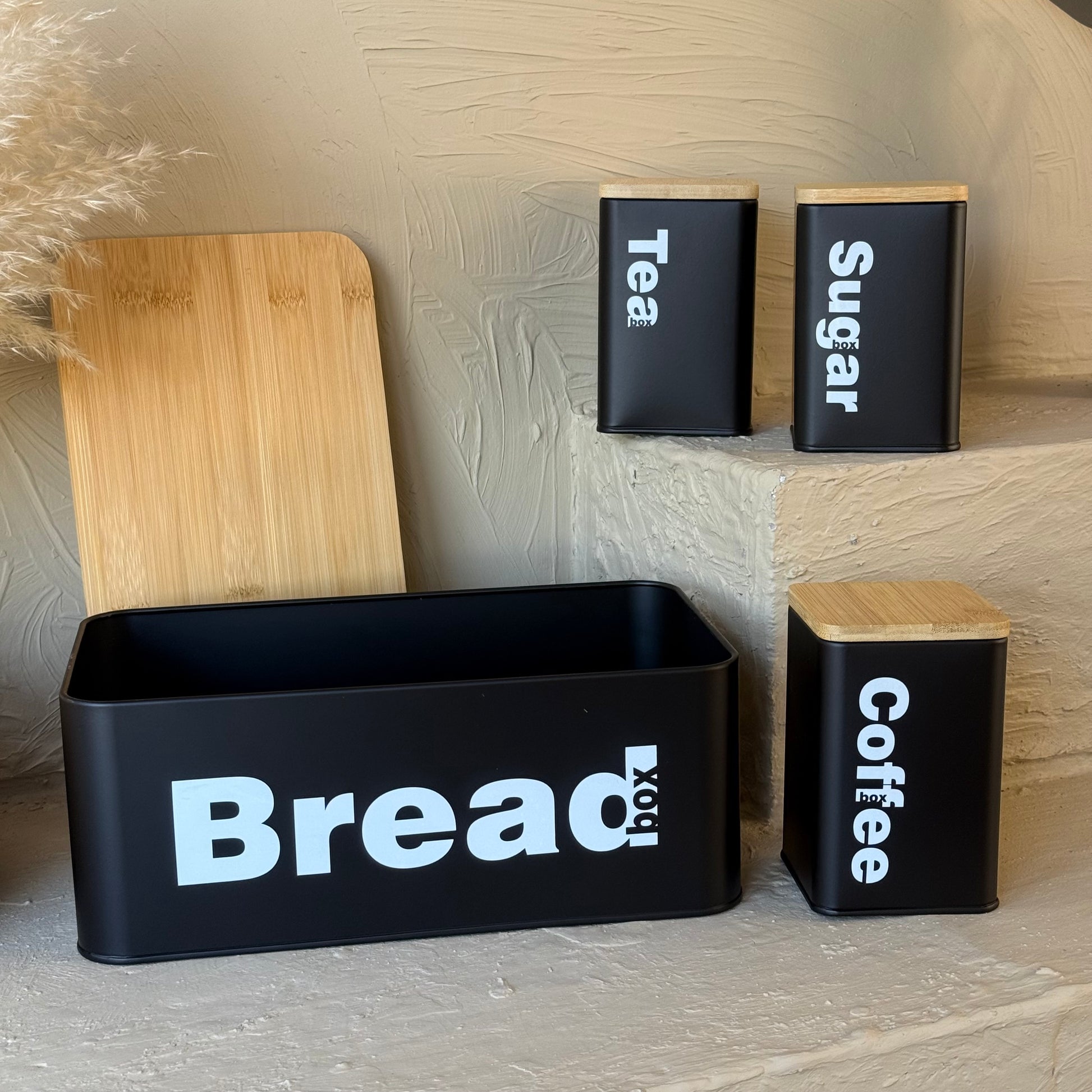 Vintage Bambu Kapaklı Ekmeklik Kavanoz Seti Siyah KOD:345