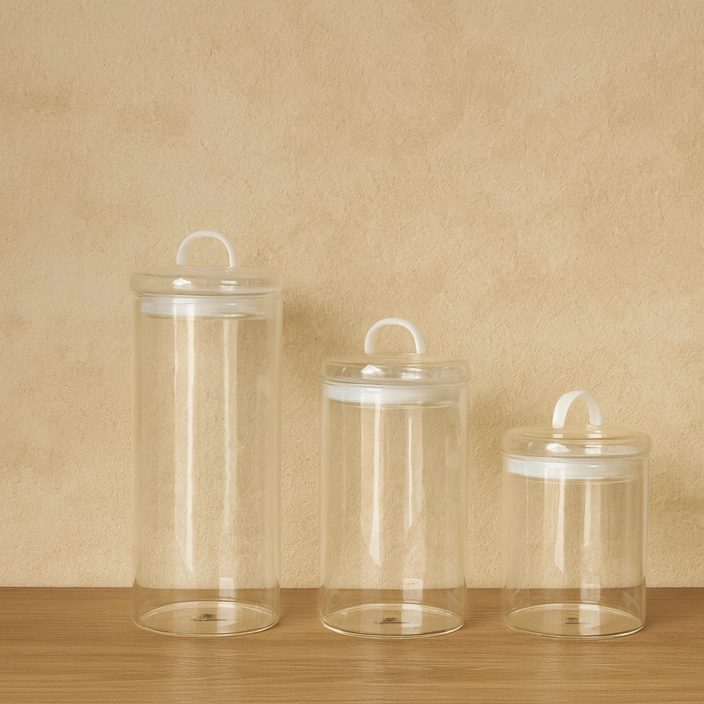 ZBERN 3 Lü Borosilikat Cam Kavanoz Seti Erzak